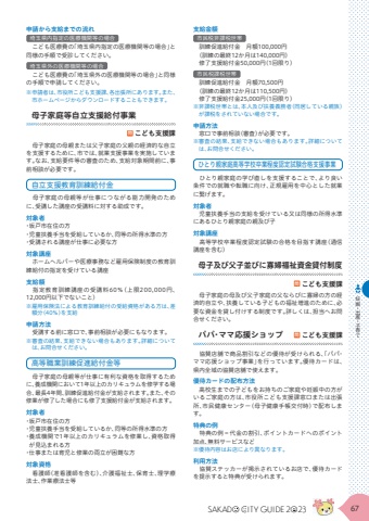 SAKADO C I T Y GU I D E 2O23 67%u598a%u5a20 %u30fb %u51fa%u7523 %u30fb %u5b50%u80b2%u3066%u6bcd%u5b50%u5bb6%u5ead%u7b49%u81ea%u7acb%u652f%u63f4%u7d66%u4ed8%u4e8b%u696d%u554f %u3053%u3069%u3082%u652f%u63f4%u8ab2%u3000%u6bcd%u5b50%u5bb6%u5ead%u306e%u6bcd%u89aa%u307e%u305f%u306f%u7236%u5b50%u5bb6%u5ead%u306e%u7236%u89aa%u306e%u7d4c%u6e08%u7684%u306a%u81ea%u7acb%u3092%u652f%u63f4%u3059%u308b%u305f%u3081%u306b%u3001%u5e02%u3067%u306f%u3001%u5c31%u696d%u652f%u63f4%u4e8b%u696d%u3092%u5b9f%u65bd%u3057%u3066%u3044%u307e%u3059%u3002%u306a%u304a%u3001%u652f%u7d66%u8981%u4ef6%u7b49%u306e%u5be9%u67fb%u306e%u305f%u3081%u3001%u652f%u7d66%u5bfe%u8c61%u671f%u9593%u524d%u306b%u3001%u4e8b%u524d%u76f8%u8ac7%u304c%u5fc5%u8981%u3067%u3059%u3002%u81ea%u7acb%u652f%u63f4%u6559%u80b2%u8a13%u7df4%u7d66%u4ed8%u91d1%u3000%u6bcd%u5b50%u5bb6%u5ead%u306e%u6bcd%u89aa%u7b49%u304c%u4ed5%u4e8b%u306b%u3064%u306a%u304c%u308b%u80fd%u529b%u958b%u767a%u306e%u305f%u3081%u306b%u3001%u53d7%u8b1b%u3057%u305f%u8b1b%u5ea7%u306e%u53d7%u8b1b%u6599%u306b%u5bfe%u3059%u308b%u52a9%u6210%u3067%u3059%u3002%u5bfe%u8c61%u8005%u30fb%u5742%u6238%u5e02%u5728%u4f4f%u306e%u65b9%u30fb%u5150%u7ae5%u6276%u990a%u624b%u5f53%u3092%u53d7%u7d66%u3057%u3066%u3044%u308b%u304b%u3001%u540c%u7b49%u306e%u6240%u5f97%u6c34%u6e96%u306e%u65b9%u30fb%u53d7%u8b1b%u3055%u308c%u308b%u8b1b%u5ea7%u304c%u4ed5%u4e8b%u306b%u5fc5%u8981%u306a%u65b9%u5bfe%u8c61%u8b1b%u5ea7%u3000%u30db%u30fc%u30e0%u30d8%u30eb%u30d1%u30fc%u3084%u533b%u7642%u4e8b%u52d9%u306a%u3069%u96c7%u7528%u4fdd%u967a%u5236%u5ea6%u306e%u6559%u80b2%u8a13%u7df4%u7d66%u4ed8%u306e%u6307%u5b9a%u3092%u53d7%u3051%u3066%u3044%u308b%u8b1b%u5ea7%u652f%u7d66%u984d%u3000%u6307%u5b9a%u6559%u80b2%u8a13%u7df4%u8b1b%u5ea7%u306e%u53d7%u8b1b%u659960%uff05%uff08%u4e0a%u9650200,000%u5186%u300112,000%u5186%u4ee5%u4e0b%u3067%u306a%u3044%u3053%u3068%uff09%u203b %u96c7%u7528%u4fdd%u967a%u6cd5%u306b%u3088%u308b%u6559%u80b2%u8a13%u7df4%u7d66%u4ed8%u306e%u53d7%u7d66%u8cc7%u683c%u304c%u3042%u308b%u65b9%u306f%u3001%u5dee%u984d%u5206%uff0840%uff05%uff09%u3092%u652f%u7d66%u7533%u8acb%u65b9%u6cd5%u3000%u53d7%u8b1b%u3059%u308b%u524d%u306b%u7a93%u53e3%u3067%u3001%u4e8b%u524d%u76f8%u8ac7%u304c%u5fc5%u8981%u306b%u3082%u306a%u308a%u307e%u3059%u3002%u203b %u5be9%u67fb%u306e%u7d50%u679c%u3001%u652f%u7d66%u3067%u304d%u306a%u3044%u5834%u5408%u3082%u3042%u308a%u307e%u3059%u3002%u8a73%u7d30%u306b%u3064%u3044%u3066%u306f%u3001%u304a%u554f%u5408%u305b%u304f%u3060%u3055%u3044%u3002%u9ad8%u7b49%u8077%u696d%u8a13%u7df4%u4fc3%u9032%u7d66%u4ed8%u91d1%u7b49%u6bcd%u5b50%u5bb6%u5ead%u306e%u6bcd%u89aa%u7b49%u304c%u4ed5%u4e8b%u306b%u6709%u5229%u306a%u8cc7%u683c%u3092%u53d6%u5f97%u3059%u308b%u305f%u3081%u306b%u3001%u990a%u6210%u6a5f%u95a2%u306b%u304a%u3044%u30661%u5e74%u4ee5%u4e0a%u306e%u30ab%u30ea%u30ad%u30e5%u30e9%u30e0%u3092%u4fee%u5b66%u3059%u308b%u5834%u5408%u3001%u6700%u95774%u5e74%u9593%u3001%u8a13%u7df4%u4fc3%u9032%u7d66%u4ed8%u91d1%u304c%u652f%u7d66%u3055%u308c%u307e%u3059%u3002%u307e%u305f%u3001%u305d%u306e%u4fee%u696d%u304c%u4fee%u4e86%u3057%u305f%u5834%u5408%u306b%u3082%u4fee%u4e86%u652f%u63f4%u7d66%u4ed8%u91d1%u304c%u652f%u7d66%u3055%u308c%u307e%u3059%u3002%u5bfe%u8c61%u8005%u30fb%u5742%u6238%u5e02%u5728%u4f4f%u306e%u65b9%u30fb%u5150%u7ae5%u6276%u990a%u624b%u5f53%u3092%u53d7%u7d66%u3057%u3066%u3044%u308b%u304b%u3001%u540c%u7b49%u306e%u6240%u5f97%u6c34%u6e96%u306e%u65b9%u30fb %u990a%u6210%u6a5f%u95a2%u30671%u5e74%u4ee5%u4e0a%u306e%u30ab%u30ea%u30ad%u30e5%u30e9%u30e0%u3092%u4fee%u696d%u3057%u3001%u8cc7%u683c%u53d6%u5f97%u304c%u898b%u8fbc%u307e%u308c%u308b%u65b9%u30fb%u4ed5%u4e8b%u307e%u305f%u306f%u80b2%u5150%u3068%u4fee%u696d%u306e%u4e21%u7acb%u304c%u56f0%u96e3%u306a%u65b9%u5bfe%u8c61%u8cc7%u683c%u3000%u770b%u8b77%u5e2b%uff08%u51c6%u770b%u8b77%u5e2b%u3092%u542b%u3080%uff09%u3001%u4ecb%u8b77%u798f%u7949%u58eb%u3001%u4fdd%u80b2%u58eb%u3001%u7406%u5b66%u7642%u6cd5%u58eb%u3001%u4f5c%u696d%u7642%u6cd5%u58eb%u7b49%u7533%u8acb%u304b%u3089%u652f%u7d66%u307e%u3067%u306e%u6d41%u308c%u57fc%u7389%u770c%u5185%u6307%u5b9a%u306e%u533b%u7642%u6a5f%u95a2%u7b49%u306e%u5834%u5408%u3000%u3053%u3069%u3082%u533b%u7642%u8cbb%u306e%u300c%u57fc%u7389%u770c%u5185%u6307%u5b9a%u306e%u533b%u7642%u6a5f%u95a2%u7b49%u306e%u5834%u5408%u300d%u3068%u540c%u69d8%u306e%u624b%u9806%u3067%u53d7%u8a3a%u3057%u3066%u304f%u3060%u3055%u3044%u3002%u57fc%u7389%u770c%u5916%u306e%u533b%u7642%u6a5f%u95a2%u7b49%u306e%u5834%u5408%u3000%u3053%u3069%u3082%u533b%u7642%u8cbb%u306e%u300c%u57fc%u7389%u770c%u5916%u306e%u533b%u7642%u6a5f%u95a2%u7b49%u306e%u5834%u5408%u300d%u3068%u540c%u69d8%u306e%u624b%u9806%u3067%u7533%u8acb%u3057%u3066%u304f%u3060%u3055%u3044%u3002%u203b %u7533%u8acb%u8005%u306f%u3001%u5e02%u5f79%u6240%u3053%u3069%u3082%u652f%u63f4%u8ab2%u3001%u5404%u51fa%u5f35%u6240%u306b%u3042%u308a%u307e%u3059%u3002%u307e%u305f%u3001%u5e02%u30db%u30fc%u30e0%u30da%u30fc%u30b8%u304b%u3089%u30c0%u30a6%u30f3%u30ed%u30fc%u30c9%u3059%u308b%u3053%u3068%u3082%u3067%u304d%u307e%u3059%u3002%u652f%u7d66%u91d1%u984d%u5e02%u6c11%u7a0e%u975e%u8ab2%u7a0e%u4e16%u5e2f%u3000%u8a13%u7df4%u4fc3%u9032%u7d66%u4ed8%u91d1%u3000%u6708%u984d100,000%u5186%u3000%uff08%u8a13%u7df4%u306e%u6700%u7d4212%u304b%u6708%u306f140,000%u5186%uff09%u3000%u4fee%u4e86%u652f%u63f4%u7d66%u4ed8%u91d150,000%u5186%uff081%u56de%u9650%u308a%uff09%u5e02%u6c11%u7a0e%u8ab2%u7a0e%u4e16%u5e2f%u3000%u8a13%u7df4%u4fc3%u9032%u7d66%u4ed8%u91d1%u3000%u6708%u984d70,500%u5186%u3000%uff08%u8a13%u7df4%u306e%u6700%u7d4212%u304b%u6708%u306f110,500%u5186%uff09%u3000%u4fee%u4e86%u652f%u63f4%u7d66%u4ed8%u91d125,000%u5186%uff081%u56de%u9650%u308a%uff09%u203b %u975e%u8ab2%u7a0e%u4e16%u5e2f%u3068%u306f%u3001%u672c%u4eba%u53ca%u3073%u6276%u990a%u7fa9%u52d9%u8005%uff08%u540c%u5c45%u3057%u3066%u3044%u308b%u89aa%u65cf%uff09%u304c%u8ab2%u7a0e%u3092%u3055%u308c%u3066%u3044%u306a%u3044%u5834%u5408%u3067%u3059%u3002%u7533%u8acb%u65b9%u6cd5%u3000%u7a93%u53e3%u3067%u4e8b%u524d%u76f8%u8ac7%uff08%u5be9%u67fb%uff09%u304c%u5fc5%u8981%u3067%u3059%u3002%u203b %u5be9%u67fb%u306e%u7d50%u679c%u3001%