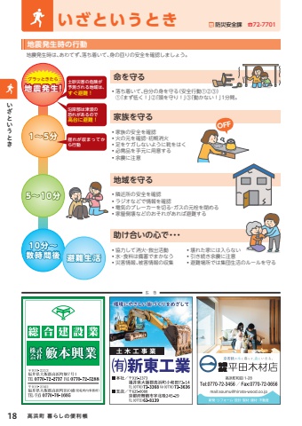 %u3000%u5730%u9707%u767a%u751f%u6642%u306f%u3001%u3042%u308f%u3066%u305a%u3001%u843d%u3061%u7740%u3044%u3066%u3001%u8eab%u306e%u56de%u308a%u306e%u5b89%u5168%u3092%u78ba%u8a8d%u3057%u307e%u3057%u3087%u3046%u3002%u30fb%u843d%u3061%u7740%u3044%u3066%u3001%u81ea%u5206%u306e%u8eab%u3092%u5b88%u308b%uff08%u5b89%u5168%u884c%u52d5%u2460%u2461%u2462%uff09%u3000%u2460%u300c%u307e%u305a%u4f4e%u304f%uff01%u300d%u2461%u300c%u982d%u3092%u5b88%u308a%uff01%u300d%u2462%u300c%u52d5%u304b%u306a%u3044%uff01%u300d1%u5206%u9593%u3002%u547d%u3092%u5b88%u308b%u30fb%u5bb6%u65cf%u306e%u5b89%u5168%u3092%u78ba%u8a8d%u30fb%u706b%u306e%u5143%u3092%u78ba%u8a8d%u30fb%u521d%u671f%u6d88%u706b%u30fb%u8db3%u3092%u30b1%u30ac%u3057%u306a%u3044%u3088%u3046%u306b%u9774%u3092%u306f%u304f%u30fb%u5fc5%u9700%u54c1%u3092%u624b%u5143%u306b%u7528%u610f%u3059%u308b%u30fb%u4f59%u9707%u306b%u6ce8%u610f%u5bb6%u65cf%u3092%u5b88%u308b%u30fb%u96a3%u8fd1%u6240%u306e%u5b89%u5168%u3092%u78ba%u8a8d%u30fb%u30e9%u30b8%u30aa%u306a%u3069%u3067%u60c5%u5831%u3092%u78ba%u8a8d%u30fb%u96fb%u6c17%u306e%u30d6%u30ec%u30fc%u30ab%u30fc%u3092%u5207%u308b%u30fb%u30ac%u30b9%u306e%u5143%u6813%u3092%u9589%u3081%u308b%u30fb%u5bb6%u5c4b%u5012%u58ca%u306a%u3069%u306e%u304a%u305d%u308c%u304c%u3042%u308c%u3070%u907f%u96e3%u3059%u308b%u5730%u57df%u3092%u5b88%u308b%u30fb%u5354%u529b%u3057%u3066%u6d88%u706b%u30fb%u6551%u51fa%u6d3b%u52d5%u0008 %u30fb%u58ca%u308c%u305f%u5bb6%u306b%u306f%u5165%u3089%u306a%u3044%u30fb%u6c34%u30fb%u98df%u6599%u306f%u5099%u84c4%u3067%u307e%u304b%u306a%u3046%u0008 %u30fb%u5f15%u304d%u7d9a%u304d%u4f59%u9707%u306b%u6ce8%u610f%u30fb%u707d%u5bb3%u60c5%u5831%u3001%u88ab%u5bb3%u60c5%u5831%u306e%u53ce%u96c6%u0008 %u30fb%u907f%u96e3%u5834%u6240%u3067%u306f%u96c6%u56e3%u751f%u6d3b%u306e%u30eb%u30fc%u30eb%u3092%u5b88%u308b%u52a9%u3051%u5408%u3044%u306e%u5fc3%u3067%u30fb%u30fb%u30fb1%uff5e5%u52065%uff5e10%u520610%u5206%uff5e%u6570%u6642%u9593%u5f8c %u907f%u96e3%u751f%u6d3b%u30b0%u30e9%u30c3%u3068%u304d%u305f%u3089%u5730%u9707%u767a%u751f!%u63fa%u308c%u304c%u53ce%u307e%u3063%u3066%u304b%u3089%u884c%u52d5%u571f%u7802%u707d%u5bb3%u306e%u5371%u967a%u304c%u4e88%u6e2c%u3055%u308c%u308b%u5730%u57df%u306f%u3001%u3059%u3050%u907f%u96e3%uff01%u6cbf%u5cb8%u90e8%u306f%u6d25%u6ce2%u306e%u6050%u308c%u304c%u3042%u308b%u306e%u3067%u9ad8%u53f0%u306b%u907f%u96e3%uff01 OFF%u3044%u3056%u3068%u3044%u3046%u3068%u304d%u0008 %u554f %u9632%u707d%u5b89%u5168%u8ab2%u3000%u260e72-7701%u5730%u9707%u767a%u751f%u6642%u306e%u884c%u52d5%u000818 %u9ad8%u6d5c%u753a %u66ae%u3089%u3057%u306e%u4fbf%u5229%u5e33%u3044%u3056%u3068%u3044%u3046%u3068%u304d