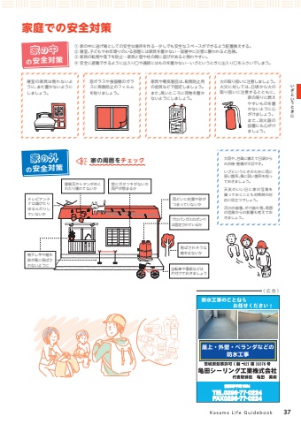 %u5bb6%u5ead%u3067%u306e%u5b89%u5168%u5bfe%u7b56%u2460 %u5bb6%u306e%u4e2d%u306b%u9003%u3052%u5834%u3068%u3057%u3066%u306e%u5b89%u5168%u306a%u5834%u6240%u3092%u4f5c%u308b%u2026%u5c11%u3057%u3067%u3082%u5b89%u5168%u306a%u30b9%u30da%u30fc%u30b9%u304c%u3067%u304d%u308b%u3088%u3046%u914d%u7f6e%u63db%u3048%u3059%u308b%u3002%u2461 %u5bdd%u5ba4%u3001%u5b50%u3069%u3082%u3084%u304a%u5e74%u5bc4%u308a%u306e%u3044%u308b%u90e8%u5c4b%u306b%u306f%u5bb6%u5177%u3092%u7f6e%u304b%u306a%u3044%u2026%u5c31%u5bdd%u4e2d%u306b%u707d%u5bb3%u306b%u8972%u308f%u308c%u308b%u3068%u5371%u967a%u3002%u2462 %u5bb6%u5177%u306e%u8ee2%u5012%u3084%u843d%u4e0b%u3092%u9632%u6b62%u2026%u5bb6%u5177%u3068%u58c1%u3084%u67f1%u306e%u9593%u306b%u904a%u3073%u304c%u3042%u308b%u3068%u5012%u308c%u3084%u3059%u3044%u3002%u2463 %u5b89%u5168%u306b%u907f%u96e3%u3067%u304d%u308b%u3088%u3046%u306b%u51fa%u5165%u308a%u53e3%u3084%u901a%u8def%u306b%u306f%u3082%u306e%u3092%u7f6e%u304b%u306a%u3044%u2026%u3044%u3056%u3068%u3044%u3046%u3068%u304d%u306b%u51fa%u5165%u308a%u53e3%u3092%u3075%u3055%u3044%u3067%u3057%u307e%u3046%u3002%u5bdd%u5ba4%u306e%u5bb6%u5177%u306f%u5012%u308c%u306a%u3044%u3088%u3046%u306b%u3001%u307e%u305f%u7f6e%u304b%u306a%u3044%u3088%u3046%u306b%u3057%u307e%u3057%u3087%u3046%u3002%u5bb6%u5177%u3084%u96fb%u6c17%u88fd%u54c1%u306f%u3001%u8ee2%u5012%u9632%u6b62%u7528%u306e%u91d1%u5177%u306a%u3069%u3067%u56fa%u5b9a%u3057%u307e%u3057%u3087%u3046%u3002%u307e%u305f%u3001%u9ad8%u3044%u3068%u3053%u308d%u306b%u8377%u7269%u3092%u7f6e%u304b%u306a%u3044%u3088%u3046%u306b%u3057%u307e%u3057%u3087%u3046%u3002%u7a93%u30ac%u30e9%u30b9%u3084%u98df%u5668%u68da%u306e%u30ac%u30e9%u30b9%u306b%u98db%u6563%u9632%u6b62%u306e%u30d5%u30a3%u30eb%u30e0%u3092%u8cbc%u308a%u307e%u3057%u3087%u3046%u3002%u706b%u306e%u53d6%u308a%u6271%u3044%u306b%u6ce8%u610f%u3057%u307e%u3057%u3087%u3046%u3002%u706b%u707d%u306b%u5bfe%u3057%u3066%u306f%u3001%u65e5%u9803%u304b%u3089%u706b%u306e%u53d6%u308a%u6271%u3044%u306b%u6ce8%u610f%u3059%u308b%u3068%u3068%u3082%u306b%u3001%u5bb6%u306e%u5468%u308a%u306b%u71c3%u3048%u3084%u3059%u3044%u3082%u306e%u3092%u7f6e%u304b%u306a%u3044%u3088%u3046%u306b%u5fc3%u304c%u3051%u307e%u3057%u3087%u3046%u3002%u307e%u305f%u3001%u6d88%u706b%u5668%u306e%u8a2d%u7f6e%u306b%u3082%u5fc3%u304c%u3051%u307e%u3057%u3087%u3046%u3002%u5927%u96e8%u3084%u3001%u53f0%u98a8%u306b%u5099%u3048%u3066%u65e5%u9803%u304b%u3089%u306e%u70b9%u691c%u30fb%u6574%u5099%u304c%u5927%u5207%u3067%u3059%u3002%u3044%u3056%u3068%u3044%u3046%u3068%u304d%u306e%u305f%u3081%u306b%u96e8%u306b%u5f31%u3044%u7b87%u6240%u3001%u98a8%u306b%u5f31%u3044%u7b87%u6240%u3092%u77e5%u3063%u3066%u304a%u304d%u307e%u3057%u3087%u3046%u3002%u5929%u6c17%u306e%u3044%u3044%u65e5%u306b%u5bb6%u306e%u5199%u771f%u3092%u64ae%u3063%u3066%u304a%u304f%u3053%u3068%u3082%u5bfe%u7b56%u6642%u306e%u5bfe%u5fdc%u306b%u5f79%u7acb%u3064%u3067%u3057%u3087%u3046%u3002%u6cb3%u5ddd%u306e%u5d29%u58ca%u3001%u304c%u3051%u5d29%u308c%u7b49%u3001%u5468%u56f2%u306e%u5371%u967a%u304b%u3089%u306e%u5f71%u97ff%u3082%u8003%u3048%u3066%u304a%u304d%u307e%u3057%u3087%u3046%u3002%u5bb6%u306e%u5916 %u5bb6%u306e%u5468%u56f2%u3092%u30c1%u30a7%u30c3%u30af%u306e%u5b89%u5168%u5bfe%u7b56%u5bb6%u306e%u4e2d%u306e%u5b89%u5168%u5bfe%u7b56%u81ea%u8ee2%u8eca%u3084%u770b%u677f%u306a%u3069%u306f%u7247%u4ed8%u3051%u3066%u304a%u304d%u307e%u3057%u3087%u3046%u30c6%u30ec%u30d3%u30a2%u30f3%u30c6%u30ca%u306f%u9306%u3073%u305f%u308a%u3086%u308b%u3093%u3060%u308a%u3057%u3066%u3044%u306a%u3044%u304b%u5c4b%u6839%u74e6%u3084%u30c8%u30bf%u30f3%u304c%u3081%u304f%u308c%u305f%u308a%u58ca%u308c%u3066%u306a%u3044%u304b%u98db%u3070%u3055%u308c%u305d%u3046%u306a%u690d%u6728%u306f%u306a%u3044%u304b%u96e8%u3069%u3044%u306b%u67af%u8449%u3084%u7802%u304c%u3064%u307e%u3063%u3066%u3044%u306a%u3044%u304b%u30d7%u30ed%u30d1%u30f3%u30ac%u30b9%u306e%u30dc%u30f3%u30d9%u306f%u56fa%u5b9a%u3055%u308c%u3066%u3044%u308b%u304b%u7269%u5e72%u3057%u7aff%u3084%u690d%u6728%u9262%u304c%u98a8%u306b%u98db%u3070%u3055%u308c%u306a%u3044%u3088%u3046%u306b%u7a93%u306b%u30ac%u30bf%u30c4%u30ad%u304c%u306a%u3044%u304b%u96e8%u6238%u304c%u9589%u307e%u308b%u304b37%u3044%u3056%u3068%u3044%u3046%u3068%u304d%u306b%u3008 %u5e83 %u544a %u3009
