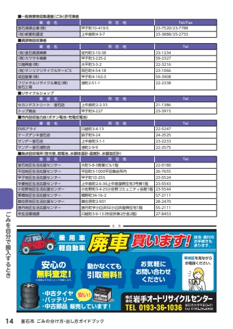 %u25a0%u4e00%u822c%u5ec3%u68c4%u7269%u53ce%u96c6%u904b%u642c%uff08%u3054%u307f%uff09%u8a31%u53ef%u696d%u8005%u696d%u3000%u8005%u3000%u540d %u6240%u3000%u5728%u3000%u5730 Tel/Fax%u91dc%u77f3%u6e05%u6383%u4f01%u696d%uff08%u682a%uff09 %u7532%u5b50%u753a10-419-5 23-7520/23-7788%uff08%u6709%uff09%u65b0%u83f1%u548c%u904b%u9001 %u4e0a%u4e2d%u5cf6%u753a4-3-7 23-3888/25-2733%u25a0%u8cc7%u6e90%u7269%u56de%u53ce%u696d%u8005%u696d%u3000%u8005%u3000%u540d %u6240%u3000%u5728%u3000%u5730 Tel%uff08%u6709%uff09%u91dc%u77f3%u8cc7%u6e90%u5546%u4e8b %u5b9a%u5185%u753a3-10-38 23-1234%uff08%u682a%uff09%u30ab%u30ef%u30b5%u30ad%u5546%u4e8b %u7532%u5b50%u753a3-225-2 59-2327%u4e09%u9678%u8208%u7523%uff08%u682a%uff09 %u5927%u5e73%u753a3-3-2 22-3216%uff08%u6709%uff09%u30b5%u30f3%u30ea%u30af%u30ea%u30b5%u30a4%u30af%u30eb%u30b5%u30fc%u30d3%u30b9 %u4e21%u77f3%u753a4-54-18 23-1066%u6210%u7530%u7523%u696d%uff08%u682a%uff09 %u7532%u5b50%u753a4-163-3 59-3908%u30d5%u30b8%u30e1%u30bf%u30eb%u30ea%u30b5%u30a4%u30af%u30eb%u6771%u5317%uff08%u682a%uff09%u91dc%u77f3%u5de5%u5834%u6e2f%u753a2-51-1 22-2338%u25a0%u30ea%u30b5%u30a4%u30af%u30eb%u30b7%u30e7%u30c3%u30d7%u696d%u3000%u8005%u3000%u540d %u6240%u3000%u5728%u3000%u5730 Tel%u30bb%u30ab%u30f3%u30c9%u30b9%u30c8%u30ea%u30fc%u30c8%u3000%u91dc%u77f3%u5e97 %u4e0a%u4e2d%u5cf6%u753a2-2-33 21-1386%u30c8%u30c3%u30d7%u5546%u4f1a %u7532%u5b50%u753a9-227 23-3915%u25a0%u5e02%u5185%u56de%u53ce%u5354%u529b%u5e97%uff08%u30dc%u30bf%u30f3%u96fb%u6c60%u30fb%u5145%u96fb%u5f0f%u96fb%u6c60%uff09%u3000%u696d%u3000%u8005%u3000%u540d %u6240%u3000%u5728%u3000%u5730 TelEMS%u30a2%u30e9%u30a4 %u53ea%u8d8a%u753a3-4-13 22-5247%u30b1%u30fc%u30ba%u30c7%u30f3%u30ad%u91dc%u77f3%u5e97 %u9234%u5b50%u753a9-24 24-2525%u30b5%u30f3%u30c7%u30fc%u91dc%u77f3%u5e97 %u4e0a%u4e2d%u5cf6%u753a3-1-1 23-2233%u30b5%u30f3%u30c7%u30fc%u91dc%u77f3%u6e2f%u753a%u5e97 %u6e2f%u753a2-9-9 22-2575%u25a0%u62e0%u70b9%u56de%u53ce%u5834%u6240%uff08%u86cd%u5149%u7ba1%u3001%u4e7e%u96fb%u6c60%u3001%u6c34%u9280%u4f53%u6e29%u8a08-%u6e29%u5ea6%u8a08%u3001%u6c34%u9280%u8840%u5727%u8a08%uff09%u3000%u65bd%u3000%u8a2d%u3000%u540d %u6240%u3000%u5728%u3000%u5730 Tel%u91dc%u77f3%u5730%u533a%u751f%u6d3b%u5fdc%u63f4%u30bb%u30f3%u30bf%u30fc %u5927%u753a3-8-3%u9752%u8449%u30d3%u30eb1%u968e 22-0180%u5e73%u7530%u5730%u533a%u751f%u6d3b%u5fdc%u63f4%u30bb%u30f3%u30bf%u30fc %u5e73%u7530%u753a3-1000%u5e73%u7530%u96c6%u4f1a%u6240%u5185 26-7655%u7532%u5b50%u5730%u533a%u751f%u6d3b%u5fdc%u63f4%u30bb%u30f3%u30bf%u30fc %u7532%u5b50%u753a10-255 23-5524%u4e2d%u59bb%u5730%u533a%u751f%u6d3b%u5fdc%u63f4%u30bb%u30f3%u30bf%u30fc %u4e0a%u4e2d%u5cf6%u753a2-6-36%u4e0a%u4e2d%u5cf6%u5fa9%u8208%u4f4f%u5b853%u53f7%u68df1%u968e 23-5543%u5c0f%u4f50%u91ce%u5730%u533a%u751f%u6d3b%u5fdc%u63f4%u30bb%u30f3%u30bf%u30fc %u5c0f%u4f50%u91ce%u753a3-4-25%u5c0f%u4f50%u91ce%u30b3%u30df%u30e5%u30cb%u30c6%u30a3%u4f1a%u99281%u968e 23-5544%u6817%u6a4b%u5730%u533a%u751f%u6d3b%u5fdc%u63f4%u30bb%u30f3%u30bf%u30fc %u6a4b%u91ce%u753a34-16-2 57-2111%u9d5c%u4f4f%u5c45%u5730%u533a%u751f%u6d3b%u5fdc%u63f4%u30bb%u30f3%u30bf%u30fc %u9d5c%u4f4f%u5c45%u753a2-901 28-2470%u5510%u4e39%u5730%u533a%u751f%u6d3b%u5fdc%u63f4%u30bb%u30f3%u30bf%u30fc %u5510%u4e39%u753a%u5b57%u5c0f%u767d%u6d5c50%u5c0f%u767d%u6d5c%u5fa9%u8208%u4f4f%u5b851%u968e 55-2111%u5e02%u751f%u6d3b%u74b0%u5883%u8ab2 %u53ea%u8d8a%u753a3-9-13%uff08%u5e02%u5f79%u6240%u7b2c2%u5e81%u820e2%u968e%uff09 27-845314 %u91dc%u77f3%u5e02 %u3054%u307f%u306e%u5206%u3051%u65b9%u30fb%u51fa%u3057%u65b9%u30ac%u30a4%u30c9%u30d6%u30c3%u30af%u3054%u307f%u3092%u81ea%u5206%u3067%u642c%u5165%u3059%u308b%u3068%u304d