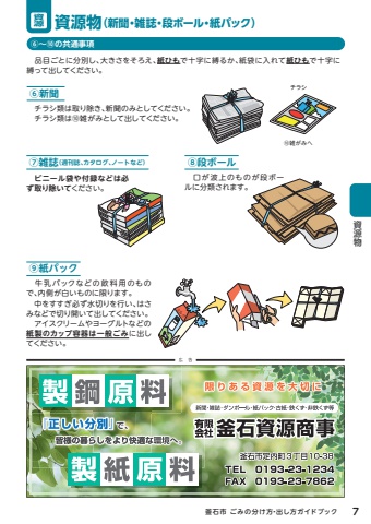 %u2465%u65b0%u805e%u3000%u30c1%u30e9%u30b7%u985e%u306f%u53d6%u308a%u9664%u304d%u3001%u65b0%u805e%u306e%u307f%u3068%u3057%u3066%u304f%u3060%u3055%u3044%u3002%u3000%u30c1%u30e9%u30b7%u985e%u306f%u2469%u96d1%u304c%u307f%u3068%u3057%u3066%u51fa%u3057%u3066%u304f%u3060%u3055%u3044%u3002%u2469%u96d1%u304c%u307f%u3078%u30c1%u30e9%u30b7%u3000%u54c1%u76ee%u3054%u3068%u306b%u5206%u5225%u3057%u3001%u5927%u304d%u3055%u3092%u305d%u308d%u3048%u3001%u7d19%u3072%u3082%u3067%u5341%u5b57%u306b%u7e1b%u308b%u304b%u3001%u7d19%u888b%u306b%u5165%u308c%u3066%u7d19%u3072%u3082%u3067%u5341%u5b57%u306b%u7e1b%u3063%u3066%u51fa%u3057%u3066%u304f%u3060%u3055%u3044%u3002%u2465%uff5e%u2469%u306e%u5171%u901a%u4e8b%u9805%u8cc7%u6e90%u7269%uff08%u65b0%u805e%u30fb%u96d1%u8a8c%u30fb%u6bb5%u30dc%u30fc%u30eb%u30fb%u7d19%u30d1%u30c3%u30af%uff09%u3000%u30d3%u30cb%u30fc%u30eb%u888b%u3084%u4ed8%u9332%u306a%u3069%u306f%u5fc5%u305a%u53d6%u308a%u9664%u3044%u3066%u304f%u3060%u3055%u3044%u3002%u2466%u96d1%u8a8c%uff08%u9031%u520a%u8a8c%u3001%u30ab%u30bf%u30ed%u30b0%u3001%u30ce%u30fc%u30c8%u306a%u3069%uff09 %u2467%u6bb5%u30dc%u30fc%u30eb%u3000%u53e3%u304c%u6ce2%u4e0a%u306e%u3082%u306e%u304c%u6bb5%u30dc%u30fc%u30eb%u306b%u5206%u985e%u3055%u308c%u307e%u3059%u3002%u2468%u7d19%u30d1%u30c3%u30af%u3000%u725b%u4e73%u30d1%u30c3%u30af%u306a%u3069%u306e%u98f2%u6599%u7528%u306e%u3082%u306e%u3067%u3001%u5185%u5074%u304c%u767d%u3044%u3082%u306e%u306b%u9650%u308a%u307e%u3059%u3002%u3000%u4e2d%u3092%u3059%u3059%u304e%u5fc5%u305a%u6c34%u5207%u308a%u3092%u884c%u3044%u3001%u306f%u3055%u307f%u306a%u3069%u3067%u5207%u308a%u958b%u3044%u3066%u51fa%u3057%u3066%u304f%u3060%u3055%u3044%u3002%u3000%u30a2%u30a4%u30b9%u30af%u30ea%u30fc%u30e0%u3084%u30e8%u30fc%u30b0%u30eb%u30c8%u306a%u3069%u306e%u7d19%u88fd%u306e%u30ab%u30c3%u30d7%u5bb9%u5668%u306f%u4e00%u822c%u3054%u307f%u306b%u51fa%u3057%u3066%u304f%u3060%u3055%u3044%u3002%u8cc7%u6e90%u30df%u30eb%u30af%u91dc%u77f3%u5e02 %u3054%u307f%u306e%u5206%u3051%u65b9%u30fb%u51fa%u3057%u65b9%u30ac%u30a4%u30c9%u30d6%u30c3%u30af 7%u8cc7%u6e90%u7269