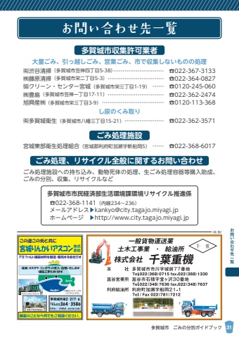 %u0195%u0564%u018f%u04f5%u01da%u01a6%u03af%u0261%u1683%u591a%u8cc0%u57ce%u5e02%u53ce%u96c6%u8a31%u53ef%u696d%u8005%u3232%u6e0b%u8c37%u6e05%u6383%uff08%u591a%u8cc0%u57ce%u5e02%u7b20%u795e%u56db%u4e01%u76ee5-38%uff09%u2026%u2026%u2026%u2026%u2026%u2026%u2026%u2026%u2026 %u260e022-367-3133%u3231%u85e4%u539f%u6e05%u6383%uff08%u591a%u8cc0%u57ce%u5e02%u6804%u4e8c%u4e01%u76ee5-3%uff09 %u2026%u2026%u2026%u2026%u2026%u2026%u2026%u2026%u2026%u2026 %u260e022-364-0827%u323f%u30af%u30ea%u30fc%u30f3%u30fb%u30bb%u30f3%u30bf%u30fc%u5bae%u57ce%uff08%u591a%u8cc0%u57ce%u5e02%u6804%u4e09%u4e01%u76ee1-19%uff09 %u2026%u2026 %u260e0120-245-060%u3231%u8c4a%u5cf6%uff08%u591a%u8cc0%u57ce%u5e02%u7b20%u795e%u4e00%u4e01%u76ee17-11%uff09 %u2026%u2026%u2026%u2026%u2026%u2026%u2026%u2026%u2026%u2026 %u260e022-362-2474%u65ed%u8208%u7523%u3231 %uff08%u591a%u8cc0%u57ce%u5e02%u6804%u4e09%u4e01%u76ee3-9%uff09 %u2026%u2026%u2026%u2026%u2026%u2026%u2026%u2026%u2026%u2026%u2026 %u260e0120-113-368%u3054%u307f%u51e6%u7406%u65bd%u8a2d%u5bae%u57ce%u6771%u90e8%u885b%u751f%u51e6%u7406%u7d44%u5408%uff08%u5bae%u57ce%u90e1%u5229%u5e9c%u753a%u52a0%u702c%u5b57%u65b0%u8239%u5ca15%uff09 %u2026%u2026 %u260e022-368-6017%u3054%u307f%u51e6%u7406%u3001%u30ea%u30b5%u30a4%u30af%u30eb%u5168%u822c%u306b%u95a2%u3059%u308b%u304a%u554f%u3044%u5408%u308f%u305b%u3054%u307f%u51e6%u7406%u65bd%u8a2d%u3078%u306e%u6301%u3061%u8fbc%u307f%u3001%u52d5%u7269%u6b7b%u4f53%u306e%u51e6%u7406%u3001%u751f%u3054%u307f%u51e6%u7406%u5bb9%u5668%u7b49%u8cfc%u5165%u52a9%u6210%u3001%u3054%u307f%u306e%u5206%u5225%u3001%u53ce%u96c6%u3001%u30ea%u30b5%u30a4%u30af%u30eb%u306a%u3069%u591a%u8cc0%u57ce%u5e02%u5e02%u6c11%u7d4c%u6e08%u90e8%u751f%u6d3b%u74b0%u5883%u8ab2%u74b0%u5883%u30ea%u30b5%u30a4%u30af%u30eb%u63a8%u9032%u4fc2%u260e022-368-1141%uff08%u5185%u7dda234%uff5e236%uff09%u30e1%u30fc%u30eb%u30a2%u30c9%u30ec%u30b9%u25b6kankyo@city.tagajo.miyagi.jp%u30db%u30fc%u30e0%u30da%u30fc%u30b8%u3000%u25b6http://www.city.tagajo.miyagi.jp%u5927%u91cf%u3054%u307f%u3001%u5f15%u3063%u8d8a%u3057%u3054%u307f%u3001%u55b6%u696d%u3054%u307f%u3001%u5e02%u3067%u53ce%u96c6%u3057%u306a%u3044%u3082%u306e%u306e%u51e6%u7406%u3232%u591a%u8cc0%u57ce%u885b%u751f%uff08%u591a%u8cc0%u57ce%u5e02%u516b%u5e61%u4e09%u4e01%u76ee15-21%uff09 %u2026%u2026%u2026%u2026%u2026%u2026%u2026 %u260e022-362-3571%u3057%u5c3f%u306e%u304f%u307f%u53d6%u308a%u3008%u5e83 %u544a%u3009%u591a%u8cc0%u57ce%u5e02%u3000%u3054%u307f%u306e%u5206%u5225%u30ac%u30a4%u30c9%u30d6%u30c3%u30af 31%u304a%u554f%u3044%u5408%u308f%u305b%u5148%u4e00%u89a7