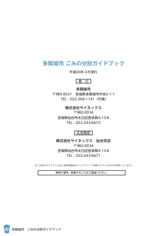 %u203b %u3053%u306e%u518a%u5b50%u306e%u30a4%u30e9%u30b9%u30c8%u306f%u4e3b%u306b%u7d4c%u6e08%u7523%u696d%u7701%u306e%u30a6%u30a7%u30d6%u30b5%u30a4%u30c8%u3067%u516c%u958b%u3055%u308c%u3066%u3044%u308b%u3082%u306e%u3092%u4f7f%u7528%u3057%u3066%u3044%u307e%u3059%u3002%u5e73%u621030%u5e74%uff13%u6708%u767a%u884c%u7121%u65ad%u3067%u8907%u5199%u3001%u8ee2%u8f09%u3059%u308b%u3053%u3068%u306f%u3054%u9060%u616e%u304f%u3060%u3055%u3044%u3002%u682a%u5f0f%u4f1a%u793e%u30b5%u30a4%u30cd%u30c3%u30af%u30b9%u3012982-0034%u5bae%u57ce%u770c%u4ed9%u53f0%u5e02%u592a%u767d%u533a%u897f%u591a%u8cc04-13-8TEL%uff1a022-243-6673%u591a%u8cc0%u57ce%u5e02%u3012985-8531%u3000%u5bae%u57ce%u770c%u591a%u8cc0%u57ce%u5e02%u4e2d%u592e2-1-1TEL%uff1a022-368-1141%uff08%u4ee3%u8868%uff09%u767a%u3000%u884c%u682a%u5f0f%u4f1a%u793e%u30b5%u30a4%u30cd%u30c3%u30af%u30b9%u3000%u4ed9%u53f0%u652f%u5e97%u3012982-0034%u5bae%u57ce%u770c%u4ed9%u53f0%u5e02%u592a%u767d%u533a%u897f%u591a%u8cc04-13-8TEL%uff1a022-243-6671%u5e83%u544a%u8ca9%u58f2%u591a%u8cc0%u57ce%u5e02 %u3054%u307f%u306e%u5206%u5225%u30ac%u30a4%u30c9%u30d6%u30c3%u30af32 %u591a%u8cc0%u57ce%u5e02%u3000%u3054%u307f%u306e%u5206%u5225%u30ac%u30a4%u30c9%u30d6%u30c3%u30af