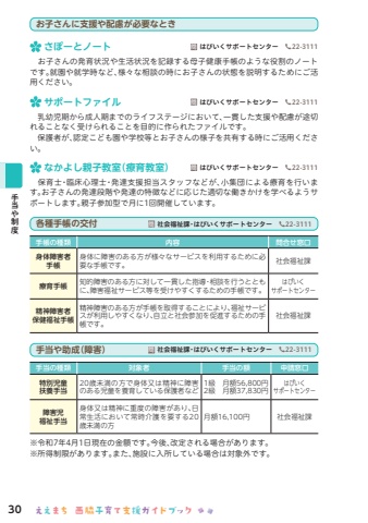 %u3000%u304a%u5b50%u3055%u3093%u306e%u767a%u80b2%u72b6%u6cc1%u3084%u751f%u6d3b%u72b6%u6cc1%u3092%u8a18%u9332%u3059%u308b%u6bcd%u5b50%u5065%u5eb7%u624b%u5e33%u306e%u3088%u3046%u306a%u5f79%u5272%u306e%u30ce%u30fc%u30c8%u3067%u3059%u3002%u5c31%u5712%u3084%u5c31%u5b66%u6642%u306a%u3069%u3001%u69d8%u3005%u306a%u76f8%u8ac7%u306e%u6642%u306b%u304a%u5b50%u3055%u3093%u306e%u72b6%u614b%u3092%u8aac%u660e%u3059%u308b%u305f%u3081%u306b%u3054%u6d3b%u7528%u304f%u3060%u3055%u3044%u3002%u3055%u307d%u30fc%u3068%u30ce%u30fc%u30c8%u554f%u306f%u3074%u3044%u304f%u30b5%u30dd%u30fc%u30c8%u30bb%u30f3%u30bf%u30fc%u3000%u260e%u3000%u4e73%u5e7c%u5150%u671f%u304b%u3089%u6210%u4eba%u671f%u307e%u3067%u306e%u30e9%u30a4%u30d5%u30b9%u30c6%u30fc%u30b8%u306b%u304a%u3044%u3066%u3001%u4e00%u8cab%u3057%u305f%u652f%u63f4%u3084%u914d%u616e%u304c%u9014%u5207%u308c%u308b%u3053%u3068%u306a%u304f%u53d7%u3051%u3089%u308c%u308b%u3053%u3068%u3092%u76ee%u7684%u306b%u4f5c%u3089%u308c%u305f%u30d5%u30a1%u30a4%u30eb%u3067%u3059%u3002%u3000%u4fdd%u8b77%u8005%u304c%u3001%u8a8d%u5b9a%u3053%u3069%u3082%u5712%u3084%u5b66%u6821%u7b49%u3068%u304a%u5b50%u3055%u3093%u306e%u69d8%u5b50%u3092%u5171%u6709%u3059%u308b%u6642%u306b%u3054%u6d3b%u7528%u304f%u3060%u3055%u3044%u3002%u30b5%u30dd%u30fc%u30c8%u30d5%u30a1%u30a4%u30eb%u554f%u306f%u3074%u3044%u304f%u30b5%u30dd%u30fc%u30c8%u30bb%u30f3%u30bf%u30fc%u3000%u260e%u3000%u4fdd%u80b2%u58eb%u30fb%u81e8%u5e8a%u5fc3%u7406%u58eb%u30fb%u767a%u9054%u652f%u63f4%u62c5%u5f53%u30b9%u30bf%u30c3%u30d5%u306a%u3069%u304c%u3001%u5c0f%u96c6%u56e3%u306b%u3088%u308b%u7642%u80b2%u3092%u884c%u3044%u307e%u3059%u3002%u304a%u5b50%u3055%u3093%u306e%u767a%u9054%u6bb5%u968e%u3084%u767a%u9054%u306e%u7279%u5fb4%u306a%u3069%u306b%u5fdc%u3058%u305f%u9069%u5207%u306a%u50cd%u304d%u304b%u3051%u3092%u5b66%u3079%u308b%u3088%u3046%u30b5%u30dd%u30fc%u30c8%u3057%u307e%u3059%u3002%u89aa%u5b50%u53c2%u52a0%u578b%u3067%u6708%u306b1%u56de%u958b%u50ac%u3057%u3066%u3044%u307e%u3059%u3002%u306a%u304b%u3088%u3057%u89aa%u5b50%u6559%u5ba4%uff08%u7642%u80b2%u6559%u5ba4%uff09%u554f%u306f%u3074%u3044%u304f%u30b5%u30dd%u30fc%u30c8%u30bb%u30f3%u30bf%u30fc%u3000%u260e%u624b%u5e33%u306e%u7a2e%u985e%u5185%u5bb9%u554f%u5408%u305b%u7a93%u53e3%u8eab%u4f53%u969c%u5bb3%u8005%u624b%u5e33%u8eab%u4f53%u306b%u969c%u5bb3%u306e%u3042%u308b%u65b9%u304c%u69d8%u3005%u306a%u30b5%u30fc%u30d3%u30b9%u3092%u5229%u7528%u3059%u308b%u305f%u3081%u306b%u5fc5%u8981%u306a%u624b%u5e33%u3067%u3059%u3002%u793e%u4f1a%u798f%u7949%u8ab2%u7642%u80b2%u624b%u5e33%u77e5%u7684%u969c%u5bb3%u306e%u3042%u308b%u65b9%u306b%u5bfe%u3057%u3066%u4e00%u8cab%u3057%u305f%u6307%u5c0e%u30fb%u76f8%u8ac7%u3092%u884c%u3046%u3068%u3068%u3082%u306b%u3001%u969c%u5bb3%u798f%u7949%u30b5%u30fc%u30d3%u30b9%u7b49%u3092%u53d7%u3051%u3084%u3059%u304f%u3059%u308b%u305f%u3081%u306e%u624b%u5e33%u3067%u3059%u3002%u30b5%u30dd%u30fc%u30c8%u30bb%u30f3%u30bf%u30fc%u7cbe%u795e%u969c%u5bb3%u8005%u4fdd%u5065%u798f%u7949%u624b%u5e33%u7cbe%u795e%u969c%u5bb3%u306e%u3042%u308b%u65b9%u304c%u624b%u5e33%u3092%u53d6%u5f97%u3059%u308b%u3053%u3068%u306b%u3088%u308a%u3001%u798f%u7949%u30b5%u30fc%u30d3%u30b9%u304c%u5229%u7528%u3057%u3084%u3059%u304f%u306a%u308a%u3001%u81ea%u7acb%u3068%u793e%u4f1a%u53c2%u52a0%u3092%u4fc3%u9032%u3059%u308b%u305f%u3081%u306e%u624b%u5e33%u3067%u3059%u3002%u793e%u4f1a%u798f%u7949%u8ab2%u5404%u7a2e%u624b%u5e33%u306e%u4ea4%u4ed8%u554f%u793e%u4f1a%u798f%u7949%u8ab2%u30fb%u306f%u3074%u3044%u304f%u30b5%u30dd%u30fc%u30c8%u30bb%u30f3%u30bf%u30fc%u3000%u260e22-3111%u203b%u4ee4%u548c7%u5e744%u67081%u65e5%u73fe%u5728%u306e%u91d1%u984d%u3067%u3059%u3002%u4eca%u5f8c%u3001%u6539%u5b9a%u3055%u308c%u308b%u5834%u5408%u304c%u3042%u308a%u307e%u3059%u3002%u203b%u6240%u5f97%u5236%u9650%u304c%u3042%u308a%u307e%u3059%u3002%u307e%u305f%u3001%u65bd%u8a2d%u306b%u5165%u6240%u3057%u3066%u3044%u308b%u5834%u5408%u306f%u5bfe%u8c61%u5916%u3067%u3059%u3002%u624b%u5f53%u306e%u7a2e%u985e%u5bfe%u8c61%u8005%u624b%u5f53%u306e%u984d%u7533%u8acb%u7a93%u53e3%u7279%u5225%u5150%u7ae5%u6276%u990a%u624b%u5f5320%u6b73%u672a%u6e80%u306e%u65b9%u3067%u8eab%u4f53%u53c8%u306f%u7cbe%u795e%u306b%u969c%u5bb3%u306e%u3042%u308b%u5150%u7ae5%u3092%u990a%u80b2%u3057%u3066%u3044%u308b%u4fdd%u8b77%u8005%u306a%u30691%u7d1a%u3000%u6708%u984d56,800%u51862%u7d1a%u3000%u6708%u984d37,830%u5186%u306f%u3074%u3044%u304f%u30b5%u30dd%u30fc%u30c8%u30bb%u30f3%u30bf%u30fc%u969c%u5bb3%u5150%u798f%u7949%u624b%u5f53%u8eab%u4f53%u53c8%u306f%u7cbe%u795e%u306b%u91cd%u5ea6%u306e%u969c%u5bb3%u304c%u3042%u308a%u3001%u65e5%u5e38%u751f%u6d3b%u306b%u304a%u3044%u3066%u5e38%u6642%u4ecb%u8b77%u3092%u8981%u3059%u308b20%u6b73%u672a%u6e80%u306e%u65b9%u6708%u984d16,100%u5186%u793e%u4f1a%u798f%u7949%u8ab2%u624b%u5f53%u3084%u52a9%u6210%uff08%u969c%u5bb3%uff09%u554f%u793e%u4f1a%u798f%u7949%u8ab2%u30fb%u306f%u3074%u3044%u304f%u30b5%u30dd%u30fc%u30c8%u30bb%u30f3%u30bf%u30fc%u3000%u260e%u624b%u5f53%u3084%u5236%u5ea630%u3048%u3048%u307e%u3061%u897f%u8107%u5b50%u80b2%u3066%u652f%u63f4%u30ac%u30a4%u30c9%u30d6%u30c3%u30af