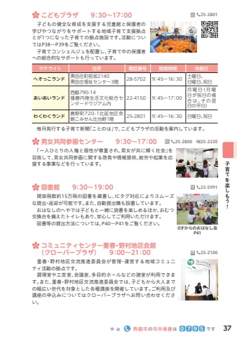 %u3000%u5b50%u3069%u3082%u306e%u5065%u5168%u306a%u80b2%u6210%u3092%u652f%u63f4%u3059%u308b%u5150%u7ae5%u9928%u3068%u4fdd%u8b77%u8005%u306e%u5b66%u3073%u3084%u3064%u306a%u304c%u308a%u3092%u30b5%u30dd%u30fc%u30c8%u3059%u308b%u5730%u57df%u5b50%u80b2%u3066%u652f%u63f4%u62e0%u70b9%u3068%u304c1%u3064%u306b%u306a%u3063%u305f%u5b50%u80b2%u3066%u306e%u62e0%u70b9%u65bd%u8a2d%u3067%u3059%u3002%u6d3b%u52d5%u306b%u3064%u3044%u3066%u306fP38%uff5eP39%u3092%u3054%u89a7%u304f%u3060%u3055%u3044%u3002%u3000%u5b50%u80b2%u3066%u30b3%u30f3%u30b7%u30a7%u30eb%u30b8%u30e5%u3092%u914d%u7f6e%u3057%u3001%u5b50%u80b2%u3066%u4e2d%u306e%u4fdd%u8b77%u8005%u3078%u306e%u7dcf%u5408%u7684%u306a%u30b5%u30dd%u30fc%u30c8%u3082%u884c%u3063%u3066%u3044%u307e%u3059%u3002%u30b5%u30c6%u30e9%u30a4%u30c8%u4f4f%u6240%u96fb%u8a71%u756a%u53f7%u958b%u9928%u6642%u9593%u4f11%u9928%u65e5%u3078%u305d%u3063%u3053%u30e9%u30f3%u30c9%u9ed2%u7530%u5e84%u753a%u524d%u57422140%u9ed2%u7530%u5e84%u798f%u7949%u30bb%u30f3%u30bf%u30fc3%u968e28-57029%uff1a45%uff5e16%uff1a30%u571f%u66dc%u65e5%u3001%u65e5%u66dc%u65e5%u3001%u795d%u65e5%u3042%u3044%u3042%u3044%u30e9%u30f3%u30c9%u897f%u8107790-14%u64ad%u78e8%u5185%u9678%u751f%u6d3b%u6587%u5316%u7dcf%u5408%u30bb%u30f3%u30bf%u30fc%u30c9%u30a6%u30b8%u30a2%u30e0%u518522-41509%uff1a45%uff5e17%uff1a00%u6708 %u66dc %u65e5%uff08 %u6708 %u66dc%u65e5%u304c%u795d%u65e5%u306e%u5834%u5408 %u306f %u3001%u305d %u306e %u7fcc%u65e5%u306e%u5e73%u65e5%uff09%u308f%u304f%u308f%u304f%u30e9%u30f3%u30c9%u9e7f%u91ce%u753a720-1%u6bd4%u5ef6%u5730%u533a%u4f1a%u9928%u3053%u307f%u305b%u3093%u6bd4%u4e5f%u91ce1%u968e25-28019%uff1a45%uff5e16%uff1a30%u65e5%u66dc%u65e5%u3001%u795d%u65e5%u3000%u6bce%u6708%u767a%u884c%u3059%u308b%u5b50%u80b2%u3066%u65b0%u805e%u300c%u3053%u3068%u306e%u306f%u300d%u3067%u3001%u3053%u3069%u3082%u30d7%u30e9%u30b6%u306e%u6d3b%u52d5%u3092%u6848%u5185%u3057%u3066%u3044%u307e%u3059%u3002%u3000%u300c%u4e00%u4eba%u3072%u3068%u308a%u306e%u4eba%u6a29%u3068%u500b%u6027%u304c%u5c0a%u91cd%u3055%u308c%u3001%u7537%u5973%u304c%u5171%u306b%u8f1d%u304f%u793e%u4f1a%u300d%u3092%u76ee%u6307%u3057%u3066%u3001%u7537%u5973%u5171%u540c%u53c2%u753b%u306b%u95a2%u3059%u308b%u5553%u767a%u3084%u60c5%u5831%u63d0%u4f9b%u3001%u5c31%u52b4%u3084%u8d77%u696d%u3092%u5fdc%u63f4%u3059%u308b%u4e8b%u696d%u306a%u3069%u3092%u884c%u3063%u3066%u3044%u307e%u3059%u3002%u7537%u5973%u5171%u540c%u53c2%u753b%u30bb%u30f3%u30bf%u30fc%u3000%u30009%uff1a30%uff5e17%uff1a00%u554f%u260e25-2800%u3000%uff26%uff21%uff3825-2220%u3000%u91cd%u6625%u30fb%u91ce%u6751%u5730%u533a%u4ea4%u6d41%u63a8%u9032%u59d4%u54e1%u4f1a%u304c%u7ba1%u7406%u30fb%u904b%u55b6%u3059%u308b%u5730%u57df%u30b3%u30df%u30e5%u30cb%u30c6%u30a3%u6d3b%u52d5%u306e%u62e0%u70b9%u3067%u3059%u3002%u3000%u8abf%u7406%u5ba4%u3084%u5de5%u82b8%u5ba4%u3001%u4f1a%u8b70%u5ba4%u3001%u591a%u76ee%u7684%u30db%u30fc%u30eb%u306a%u3069%u306e%u8af8%u5ba4%u304c%u5229%u7528%u3067%u304d%u307e%u3059%u3002%u307e%u305f%u3001%u91cd%u6625%u30fb%u91ce%u6751%u5730%u533a%u4ea4%u6d41%u63a8%u9032%u59d4%u54e1%u4f1a%u3067%u306f%u3001%u5b50%u3069%u3082%u304b%u3089%u5927%u4eba%u307e%u3067%u306e%u5e45%u5e83%u3044%u4e16%u4ee3%u3092%u5bfe%u8c61%u3068%u3057%u305f%u5404%u7a2e%u8b1b%u5ea7%u3092%u958b%u50ac%u3057%u3066%u3044%u307e%u3059%u3002%u3054%u5229%u7528%u53ca%u3073%u8b1b%u5ea7%u306e%u7533%u8fbc%u307f%u306b%u3064%u3044%u3066%u306f%u30af%u30ed%u30fc%u30d0%u30fc%u30d7%u30e9%u30b6%u3078%u304a%u554f%u3044%u5408%u308f%u305b%u304f%u3060%u3055%u3044%u3002%u30b3%u30df%u30e5%u30cb%u30c6%u30a3%u30bb%u30f3%u30bf%u30fc%u91cd%u6625%u30fb%u91ce%u6751%u5730%u533a%u4f1a%u9928%uff08%u30af%u30ed%u30fc%u30d0%u30fc%u30d7%u30e9%u30b6%uff09%u3000%u30009%uff1a00%uff5e21%uff1a00%u554f25-2100%u3000%u958b%u67b6%u518a%u6570%u7d0415%u4e07%u518a%u306e%u56f3%u66f8%u3092%u8535%u66f8%u3057%u3001IC%u30bf%u30b0%u5bfe%u5fdc%u306b%u3088%u308a%u30b9%u30e0%u30fc%u30ba%u306a%u8cb8%u51fa%u30fb%u8fd4%u5374%u304c%u53ef%u80fd%u3067%u3059%u3002%u307e%u305f%u3001%u81ea%u52d5%u8cb8%u51fa%u6a5f%u3082%u8a2d%u7f6e%u3057%u3066%u3044%u307e%u3059%u3002%u3000%u304a%u306f%u306a%u3057%u306e%u3078%u3084%u3067%u306f%u5b50%u3069%u3082%u3068%u4e00%u7dd2%u306b%u8aad%u66f8%u3092%u697d%u3057%u3081%u308b%u307b%u304b%u3001%u304a%u3080%u3064%u4ea4%u63db%u53f0%u3092%u5099%u3048%u305f%u30c8%u30a4%u30ec%u3082%u3042%u308a%u3001%u5b89%u5fc3%u3057%u3066%u3054%u5229%u7528%u3044%u305f%u3060%u3051%u307e%u3059%u3002%u3000%u56f3%u66f8%u7b49%u306e%u8cb8%u51fa%u65b9%u6cd5%u306b%u3064%u3044%u3066%u306f%u3001P40%uff5eP41%u3092%u3054%u89a7%u304f%u3060%u3055%u3044%u3002%u56f3%u66f8%u9928%u3000%u30009%uff1a30%uff5e19%uff1a0023-59910%u624d%u304b%u3089%u306e%u304a%u306f%u306a%u3057%u4f1aP41%u897f%u8107%u5e02%u306e%u5e02%u5916%u5c40%u756a%u306f0795%u3067%u3059