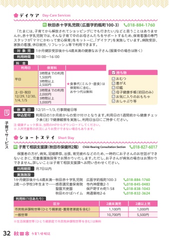 %u3000%u300c%u305f%u307e%u306b%u306f%u3001%u5b50%u80b2%u3066%u304b%u3089%u89e3%u653e%u3055%u308c%u3066%u30b7%u30e7%u30c3%u30d4%u30f3%u30b0%u306b%u3067%u3082%u884c%u304d%u305f%u3044%u300d%u306a%u3069%u3068%u601d%u3046%u3053%u3068%u306f%u3042%u308a%u307e%u305b%u3093%u304b%u3002%u8d64%u5341%u5b57%u4e73%u5150%u9662%u3067%u306f%u3001%u305d%u3093%u306a%u5b50%u80b2%u3066%u4e2d%u306e%u304a%u6bcd%u3055%u3093%u305f%u3061%u3092%u30b5%u30dd%u30fc%u30c8%u3059%u308b%u305f%u3081%u3001%u4fdd%u80b2%u770b%u8b77%u306e%u5c02%u9580%u30b9%u30bf%u30c3%u30d5%u304c%u300c%u30de%u30de%u306b%u304b%u308f%u3063%u3066%u5b89%u5fc3%u4fdd%u80b2%u300d%u3092%u30e2%u30c3%u30c8%u30fc%u306b%u3001%u300c%u30c7%u30a4%u30b1%u30a2%u300d%u3092%u5b9f%u65bd%u3057%u3066%u3044%u307e%u3059%u3002%u75c5%u9662%u53d7%u8a3a%u3001%u5bb6%u65cf%u306e%u770b%u8b77%u3001%u4f11%u65e5%u5c31%u52b4%u3001%u30ea%u30d5%u30ec%u30c3%u30b7%u30e5%u7b49%u3067%u5229%u7528%u3067%u304d%u307e%u3059%u3002%u5bfe%u2002%u8c61%u2002%u5150%u00071%u304b%u6708%u5065%u8a3a%u53d7%u8a3a%u5f8c%u304b%u30894%u6b73%u672a%u6e80%u306e%u5065%u5eb7%u306a%u304a%u5b50%u3055%u3093%uff08%u670d%u85ac%u4e2d%u306e%u5834%u5408%u306f%u9664%u304f%uff09%u5229%u7528%u6642%u9593%u000710%uff1a00%u301c16%uff1a00%u4f11%u2002%u696d%u2002%u65e5%u000712/31%uff5e1/3%u3001%u884c%u4e8b%u958b%u50ac%u65e5%u7b49%u7533%u8fbc%u53d7%u4ed8%u0007%u5229%u7528%u65e5%u306e1%u304b%u6708%u524d%u304b%u3089%u306e%u53d7%u3051%u4ed8%u3051%u3068%u306a%u308a%u307e%u3059%u3002%u5229%u7528%u65e5%u306e1%u9031%u9593%u524d%u304b%u3089%u5065%u5eb7%u30c1%u30a7%u30c3%u30af%u8868%uff08%u6ce8%uff09%u3067%u5065%u5eb7%u89b3%u5bdf%u3092%u5b9f%u65bd%u3057%u3001%u5229%u7528%u65e5%u5f53%u65e5%u306b%u3054%u6301%u53c2%u304f%u3060%u3055%u3044%u3002%u6ce8%u5065%u5eb7%u30c1%u30a7%u30c3%u30af%u8868%u306f%u3001%u5f53%u9662%u306eHP%u304b%u3089%u30c0%u30a6%u30f3%u30ed%u30fc%u30c9%u3057%u3066%u304f%u3060%u3055%u3044%u3002%u203b%u5165%u6240%u5150%u7ae5%u7b49%u306e%u72b6%u6cc1%u306b%u3088%u308a%u304a%u53d7%u3051%u3067%u304d%u306a%u3044%u5834%u5408%u3082%u3042%u308a%u307e%u3059%u3002%u554f%u79cb%u7530%u8d64%u5341%u5b57%u4e73%u5150%u9662%uff08%u5e83%u9762%u5b57%u91e3%u74f6%u753a100-3%uff09%u3000%u260e018-884-1760%u6599%u3000%u91d1%u5229%u7528%u65e5%u4fdd%u80b2%u6599%u5e73%u65e53%u6642%u9593%u307e%u3067%u306e%u5229%u75281,500%u51863%u6642%u9593%u4ee5%u4e0a2,500%u5186%u2605%u0007%u98df%u4e8b%u4ee3%uff08%u30df%u30eb%u30af%u30fb%u663c%u98df%uff09%u306f%u4fdd%u80b2%u6599%u306b%u542b%u3080%u3002%u571f%u30fb%u65e5%u30fb%u795d%u65e5%u3000%u304a%u3084%u3064%u4ee3%u306f%u7121%u659912/29%u300112/30%u30011/4%u30011/53%u6642%u9593%u307e%u3067%u306e%u5229%u75282,000%u51863%u6642%u9593%u4ee5%u4e0a3,000%u5186%u6301%u3061%u7269%u304a%u3080%u3064%u7740%u304c%u3048%u5370%u9451%u6bcd%u5b50%u5065%u5eb7%u624b%u5e33%uff08%u521d%u56de%u306e%u307f%uff09%u304a%u6c17%u306b%u5165%u308a%u306e%u304a%u3082%u3061%u3083%u304a%u3057%u3083%u3076%u308a%u7b49%u3000%u4fdd%u8b77%u8005%u306e%u65b9%u304c%u3001%u75c5%u6c17%u3001%u51a0%u5a5a%u846c%u796d%u3001%u51fa%u5f35%u3001%u80b2%u5150%u75b2%u308c%u306a%u3069%u306e%u305f%u3081%u3001%u4e00%u6642%u7684%u306b%u304a%u5b50%u3055%u3093%u306e%u304a%u4e16%u8a71%u304c%u3067%u304d%u306a%u3044%u3068%u304d%u306b%u3001%u5150%u7ae5%u990a%u8b77%u65bd%u8a2d%u7b49%u3067%u304a%u9810%u304b%u308a%u3044%u305f%u3057%u307e%u3059%u3002%u305f%u3060%u3057%u3001%u304a%u5b50%u3055%u3093%u304c%u75c5%u6c17%u306e%u5834%u5408%u306f%u304a%u9810%u304b%u308a%u3067%u304d%u307e%u305b%u3093%u3002%u8a73%u3057%u3044%u3053%u3068%u306f%u5b50%u80b2%u3066%u76f8%u8ac7%u652f%u63f4%u8ab2%u3078%u304a%u554f%u3044%u5408%u308f%u305b%u304f%u3060%u3055%u3044%u3002%u5229%u7528%u671f%u9593%u0007%u67087%u65e5%u4ee5%u5185%u5b9f%u65bd%u65bd%u8a2d1%u304b%u6708%u5065%u8a3a%u5f8c%u304b%u30894%u6b73%u672a%u6e80%u2026%u79cb%u7530%u8d64%u5341%u5b57%u4e73%u5150%u9662%u3000%u5e83%u9762%u5b57%u91e3%u74f6%u753a100-3%u3000%u3000%u260e018-884-17602%u6b73%uff5e%u5c0f%u5b66%u68213%u5e74%u751f%u307e%u3067%u2026%u2026%u611f%u6069%u8b1b%u5150%u7ae5%u4fdd%u80b2%u9662%u3000%u5bfa%u5185%u795e%u5c4b%u65772-1%u3000%u3000%u3000%u260e018-845-0483%u8056%u5712%u5929%u4f7f%u5712%u3000%u3000%u3000%u3000%u4fdd%u6238%u91ce%u3059%u308f%u753a1-58%u3000%u3000%u260e018-838-1043%u79cb%u7530%u308f%u304b%u3070%u30cf%u30a4%u30e0%u3000%u5357%u901a%u7bc9%u57302-6%u3000%u3000%u3000%u3000%u260e018-832-3624%u554f%u5b50%u80b2%u3066%u76f8%u8ac7%u652f%u63f4%u8ab2%uff08%u79cb%u7530%u5e02%u4fdd%u5065%u62402%u968e%uff09%u3000Child-Rearing Consultation Section%u260e018-827-6017%u203b%u751f%u6d3b%u4fdd%u8b77%u4e16%u5e2f%uff08%u3072%u3068%u308a%u89aa%u5bb6%u5ead%u3067%u5e02%u6c11%u7a0e%u975e%u8ab2%u7a0e%u4e16%u5e2f%u3092%u542b%u3080%uff09%u306f%u7121%u6599%u5229%u7528%u6599%uff081%u65e5%u3042%u305f%u308a%uff09%u533a%u52062%u6b73%u672a%u6e80%u51502%u6b73%u4ee5%u4e0a%u5150%u5e02%u6c11%u7a0e%u975e%u8ab2%u7a0e%u4e16%u5e2f%uff08%u3072%u3068%u308a%u89aa%u5bb6%u5ead%u30fb%u990a%u80b2%u8005%u5bb6%u5ead%u3092%u542b%u3080%uff091,100%u51861,000%u5186%u4e00%u822c%u4e16%u5e2f10,700%u51865,500%u5186%u30b7%u30e7%u30fc%u30c8%u30b9%u30c6%u30a4Short Stay%u5b50%u80b2%u3066%u30b5%u30fc%u30d3%u30b932