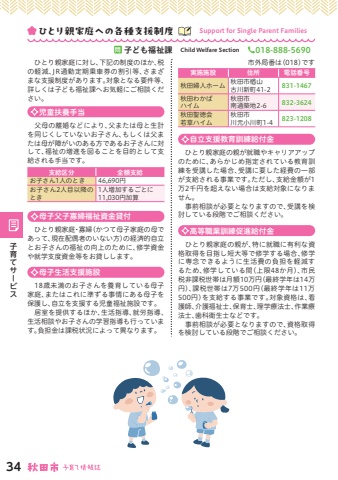 %u5b9f%u65bd%u65bd%u8a2d%u4f4f%u6240%u96fb%u8a71%u756a%u53f7%u79cb%u7530%u5a66%u4eba%u30db%u30fc%u30e0%u79cb%u7530%u5e02%u6962%u5c71%u53e4%u5ddd%u65b0%u753a41-2831-1467%u79cb%u7530%u308f%u304b%u3070%u30cf%u30a4%u30e0%u79cb%u7530%u5e02%u5357%u901a%u7bc9%u57302-6832-3624%u79cb%u7530%u8056%u5fb3%u4f1a%u82e5%u8349%u30cf%u30a4%u30e0%u79cb%u7530%u5e02%u5ddd%u5143%u5c0f%u5ddd%u753a1-4823-1208%u3000%u3072%u3068%u308a%u89aa%u5bb6%u5ead%u306b%u5bfe%u3057%u3001%u4e0b%u8a18%u306e%u5236%u5ea6%u306e%u307b%u304b%u3001%u7a0e%u306e%u8efd%u6e1b%u3001JR%u901a%u52e4%u5b9a%u671f%u4e57%u8eca%u5238%u306e%u5272%u5f15%u7b49%u3001%u3055%u307e%u3056%u307e%u306a%u652f%u63f4%u5236%u5ea6%u304c%u3042%u308a%u307e%u3059%u3002%u5bfe%u8c61%u3068%u306a%u308b%u8981%u4ef6%u7b49%u3001%u8a73%u3057%u304f%u306f%u5b50%u3069%u3082%u798f%u7949%u8ab2%u3078%u304a%u6c17%u8efd%u306b%u3054%u76f8%u8ac7%u304f%u3060%u3055%u3044%u3002%u554f%u5b50%u3069%u3082%u798f%u7949%u8ab2%u3000Child Welfare Section%u260e018-888-5690%u3000%u7236%u6bcd%u306e%u96e2%u5a5a%u306a%u3069%u306b%u3088%u308a%u3001%u7236%u307e%u305f%u306f%u6bcd%u3068%u751f%u8a08%u3092%u540c%u3058%u304f%u3057%u3066%u3044%u306a%u3044%u304a%u5b50%u3055%u3093%u3001%u3082%u3057%u304f%u306f%u7236%u307e%u305f%u306f%u6bcd%u304c%u969c%u304c%u3044%u306e%u3042%u308b%u65b9%u3067%u3042%u308b%u304a%u5b50%u3055%u3093%u306b%u5bfe%u3057%u3066%u3001%u798f%u7949%u306e%u5897%u9032%u3092%u56f3%u308b%u3053%u3068%u3092%u76ee%u7684%u3068%u3057%u3066%u652f%u7d66%u3055%u308c%u308b%u624b%u5f53%u3067%u3059%u3002%u3000%u3072%u3068%u308a%u89aa%u5bb6%u5ead%u306e%u89aa%u304c%u5c31%u8077%u3084%u30ad%u30e3%u30ea%u30a2%u30a2%u30c3%u30d7%u306e%u305f%u3081%u306b%u3001%u3042%u3089%u304b%u3058%u3081%u6307%u5b9a%u3055%u308c%u3066%u3044%u308b%u6559%u80b2%u8a13%u7df4%u3092%u53d7%u8b1b%u3057%u305f%u5834%u5408%u3001%u53d7%u8b1b%u306b%u8981%u3057%u305f%u7d4c%u8cbb%u306e%u4e00%u90e8%u304c%u652f%u7d66%u3055%u308c%u308b%u4e8b%u696d%u3067%u3059%u3002%u305f%u3060%u3057%u3001%u652f%u7d66%u91d1%u984d%u304c1%u4e072%u5343%u5186%u3092%u8d85%u3048%u306a%u3044%u5834%u5408%u306f%u652f%u7d66%u5bfe%u8c61%u306b%u306a%u308a%u307e%u305b%u3093%u3002%u3000%u4e8b%u524d%u76f8%u8ac7%u304c%u5fc5%u8981%u3068%u306a%u308a%u307e%u3059%u306e%u3067%u3001%u53d7%u8b1b%u3092%u691c%u8a0e%u3057%u3066%u3044%u308b%u6bb5%u968e%u3067%u3054%u76f8%u8ac7%u304f%u3060%u3055%u3044%u3002%u3000%u3072%u3068%u308a%u89aa%u5bb6%u5ead%u306e%u89aa%u304c%u3001%u7279%u306b%u5c31%u8077%u306b%u6709%u5229%u306a%u8cc7%u683c%u53d6%u5f97%u3092%u76ee%u6307%u3057%u77ed%u5927%u7b49%u3067%u4fee%u5b66%u3059%u308b%u5834%u5408%u3001%u4fee%u5b66%u306b%u5c02%u5ff5%u3067%u304d%u308b%u3088%u3046%u306b%u751f%u6d3b%u8cbb%u306e%u8ca0%u62c5%u3092%u8efd%u6e1b%u3059%u308b%u305f%u3081%u3001%u4fee%u5b66%u3057%u3066%u3044%u308b%u9593%uff08%u4e0a%u965048%u304b%u6708%uff09%u3001%u5e02%u6c11%u7a0e%u975e%u8ab2%u7a0e%u4e16%u5e2f%u306f%u6708%u984d10%u4e07%u5186%uff08%u6700%u7d42%u5b66%u5e74%u306f14%u4e07%u5186%uff09%u3001%u8ab2%u7a0e%u4e16%u5e2f%u306f7%u4e07500%u5186%uff08%u6700%u7d42%u5b66%u5e74%u306f11%u4e07500%u5186%uff09%u3092%u652f%u7d66%u3059%u308b%u4e8b%u696d%u3067%u3059%u3002%u5bfe%u8c61%u8cc7%u683c%u306f%u3001%u770b%u8b77%u5e2b%u3001%u4ecb%u8b77%u798f%u7949%u58eb%u3001%u4fdd%u80b2%u58eb%u3001%u7406%u5b66%u7642%u6cd5%u58eb%u3001%u4f5c%u696d%u7642%u6cd5%u58eb%u3001%u6b6f%u79d1%u885b%u751f%u58eb%u306a%u3069%u3067%u3059%u3002%u3000%u4e8b%u524d%u76f8%u8ac7%u304c%u5fc5%u8981%u3068%u306a%u308a%u307e%u3059%u306e%u3067%u3001%u8cc7%u683c%u53d6%u5f97%u3092%u691c%u8a0e%u3057%u3066%u3044%u308b%u6bb5%u968e%u3067%u3054%u76f8%u8ac7%u304f%u3060%u3055%u3044%u3002%u300018%u6b73%u672a%u6e80%u306e%u304a%u5b50%u3055%u3093%u3092%u990a%u80b2%u3057%u3066%u3044%u308b%u6bcd%u5b50%u5bb6%u5ead%u3001%u307e%u305f%u306f%u3053%u308c%u306b%u6e96%u305a%u308b%u4e8b%u60c5%u306b%u3042%u308b%u6bcd%u5b50%u3092%u4fdd%u8b77%u3057%u3001%u81ea%u7acb%u3092%u652f%u63f4%u3059%u308b%u5150%u7ae5%u798f%u7949%u65bd%u8a2d%u3067%u3059%u3002%u3000%u5c45%u5ba4%u3092%u63d0%u4f9b%u3059%u308b%u307b%u304b%u3001%u751f%u6d3b%u6307%u5c0e%u3001%u5c31%u52b4%u6307%u5c0e%u3001%u751f%u6d3b%u76f8%u8ac7%u3084%u304a%u5b50%u3055%u3093%u306e%u5b66%u7fd2%u6307%u5c0e%u3082%u884c%u3063%u3066%u3044%u307e%u3059%u3002%u8ca0%u62c5%u91d1%u306f%u8ab2%u7a0e%u72b6%u6cc1%u306b%u3088%u3063%u3066%u7570%u306a%u308a%u307e%u3059%u3002%u3000%u3072%u3068%u308a%u89aa%u5bb6%u5ead%u30fb%u5be1%u5a66%uff08%u304b%u3064%u3066%u6bcd%u5b50%u5bb6%u5ead%u306e%u6bcd%u3067%u3042%u3063%u3066%u3001%u73fe%u5728%u914d%u5076%u8005%u306e%u3044%u306a%u3044%u65b9%uff09%u306e%u7d4c%u6e08%u7684%u81ea%u7acb%u3068%u304a%u5b50%u3055%u3093%u306e%u798f%u7949%u306e%u5411%u4e0a%u306e%u305f%u3081%u306b%u3001%u4fee%u5b66%u8cc7%u91d1%u3084%u5c31%u5b66%u652f%u5ea6%u8cc7%u91d1%u7b49%u3092%u304a%u8cb8%u3057%u3057%u307e%u3059%u3002%u652f%u7d66%u533a%u5206%u5168%u984d%u652f%u7d66%u304a%u5b50%u3055%u30931%u4eba%u306e%u3068%u304d46,690%u5186%u304a%u5b50%u3055%u30932%u4eba%u76ee%u4ee5%u964d%u306e%u3068%u304d1%u4eba%u5897%u52a0%u3059%u308b%u3054%u3068%u306b11,030%u5186%u52a0%u7b97%u5150%u7ae5%u6276%u990a%u624b%u5f53%u6bcd%u5b50%u7236%u5b50%u5be1%u5a66%u798f%u7949%u8cc7%u91d1%u8cb8%u4ed8%u81ea%u7acb%u652f%u63f4%u6559%u80b2%u8a13%u7df4%u7d66%u4ed8%u91d1%u6bcd%u5b50%u751f%u6d3b%u652f%u63f4%u65bd%u8a2d%u9ad8%u7b49%u8077%u696d%u8a13%u7df4%u4fc3%u9032%u7d66%u4ed8%u91d1%u5e02%u5916%u5c40%u756a%u306f%uff08018%uff09%u3067%u3059%u5b50%u80b2%u3066%u30b5%u30fc%u30d3%u30b934