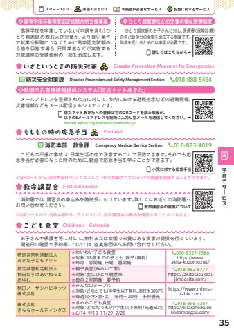 %u3000%u9ad8%u7b49%u5b66%u6821%u3092%u5352%u696d%u3057%u3066%u3044%u306a%u3044%uff08%u4e2d%u9000%u3092%u542b%u3080%uff09%u3072%u3068%u308a%u89aa%u5bb6%u5ead%u306e%u89aa%u304a%u3088%u3073%u5150%u7ae5%u304c%u3001%u3088%u308a%u826f%u3044%u6761%u4ef6%u3067%u5c31%u696d%u3084%u8ee2%u8077%u306b%u3064%u306a%u3050%u305f%u3081%u306b%u9ad8%u5352%u8a8d%u5b9a%u8a66%u9a13%u306e%u5408%u683c%u3092%u76ee%u6307%u3059%u5834%u5408%u3001%u6c11%u9593%u696d%u8005%u306a%u3069%u304c%u5b9f%u65bd%u3059%u308b%u5bfe%u8c61%u8b1b%u5ea7%u306e%u53d7%u8b1b%u8cbb%u7528%u306e%u4e00%u90e8%u3092%u52a9%u6210%u3057%u307e%u3059%u3002%u3072%u3068%u308a%u89aa%u5bb6%u5ead%u306e%u304a%u5b50%u3055%u3093%u306b%u5bfe%u3057%u3001%u533b%u7642%u8cbb%uff08%u4fdd%u967a%u8a3a%u7642%uff09%u306e%u81ea%u5df1%u8ca0%u62c5%u5206%u306e%u5168%u984d%u3092%u52a9%u6210%u3059%u308b%u5236%u5ea6%u3067%u3059%u3002%u52a9%u6210%u3092%u53d7%u3051%u308b%u305f%u3081%u306b%u306f%u7533%u8acb%u304c%u5fc5%u8981%u3067%u3059%u3002%u8a73%u3057%u304f%u306f%u3053%u3061%u3089%u304b%u3089%u27a1%u554f%u9632%u707d%u5b89%u5168%u5bfe%u7b56%u8ab2%u3000Disaster Prevention and Safety Management Section%u260e018-888-5434%u3000%u30e1%u30fc%u30eb%u30a2%u30c9%u30ec%u30b9%u3092%u767b%u9332%u3055%u308c%u305f%u65b9%u306b%u5bfe%u3057%u3066%u3001%u5e02%u5185%u306b%u304a%u3051%u308b%u907f%u96e3%u6307%u793a%u306a%u3069%u306e%u907f%u96e3%u60c5%u5831%u3001%u707d%u5bb3%u60c5%u5831%u306a%u3069%u3092%u30e1%u30fc%u30eb%u914d%u4fe1%u3059%u308b%u30b7%u30b9%u30c6%u30e0%u3067%u3059%u3002%u9632%u707d%u30cd%u30c3%u30c8%u3042%u304d%u305f%u3078%u306e%u767b%u9332%u306f%u53f3%u306eQR%u30b3%u30fc%u30c9%u3092%u8aad%u307f%u53d6%u308b%u304b%u3001%u4ee5%u4e0b%u306eE%u30e1%u30fc%u30eb%u30a2%u30c9%u30ec%u30b9%u3092%u5b9b%u5148%u306b%u5165%u529b%u3057%u7a7a%u30e1%u30fc%u30eb%u3092%u9001%u4fe1%u3057%u3066%u304f%u3060%u3055%u3044%u3002%u27a1bousai.akita-city@raiden2.ktaiwork.jp%u554f%u6d88%u9632%u672c%u90e8%u3000%u6551%u6025%u8ab2%u3000Emergency Medical Service Section%u260e018-823-4019%u3000%u3053%u3069%u3082%u306e%u4e0d%u616e%u306e%u4e8b%u6545%u306f%u3001%u65e5%u5e38%u751f%u6d3b%u306e%u4e2d%u3067%u6ce8%u610f%u3059%u308b%u3053%u3068%u3067%u4e88%u9632%u3067%u304d%u307e%u3059%u3002%u305d%u308c%u3067%u3082%u5fdc%u6025%u624b%u5f53%u304c%u5fc5%u8981%u306b%u306a%u3063%u305f%u6642%u306e%u305f%u3081%u306b%u3001%u52d5%u753b%u3067%u5fdc%u6025%u624b%u5f53%u3092%u5b66%u3076%u3053%u3068%u304c%u3067%u304d%u307e%u3059%u3002%u203b%u0007QR%u30b3%u30fc%u30c9%u304b%u3089%u3001%u6d88%u9632%u672c%u90e8HP%u306b%u30a2%u30af%u30bb%u30b9%u3057%u3066%u3001HP%u306b%u63b2%u8f09%u3055%u308c%u3066%u3044%u308b5%u3064%u306e%u52d5%u753b%u3092%u8996%u8074%u3059%u308b%u3053%u3068%u304c%u3067%u304d%u307e%u3059%u3002%u5c0f%u5150%u306b%u5bfe%u3059%u308b%u5fdc%u6025%u624b%u5f53%u3000%u6d88%u9632%u7f72%u3067%u306f%u3001%u8b1b%u7fd2%u4f1a%u306e%u7533%u8fbc%u307f%u3092%u968f%u6642%u53d7%u3051%u4ed8%u3051%u3066%u3044%u307e%u3059%u3002%u8a73%u3057%u304f%u306f%u304a%u8fd1%u304f%u306e%u6d88%u9632%u7f72%u3078%u304a%u554f%u3044%u5408%u308f%u305b%u304f%u3060%u3055%u3044%u3002%u3044%u3056%u3068%u3044%u3046%u3068%u304d%u306e%u9632%u707d%u5bfe%u7b56 Disaster Prevention Measures for Emergencies%u3082%u3057%u3082%u306e%u6642%u306e%u5fdc%u6025%u624b%u5f53 First Aid%u79cb%u7530%u5e02%u707d%u5bb3%u6642%u60c5%u5831%u63d0%u4f9b%u30b7%u30b9%u30c6%u30e0%u300c%u9632%u707d%u30cd%u30c3%u30c8%u3042%u304d%u305f%u300d%u203b%u0007QR%u30b3%u30fc%u30c9%u304b%u3089%u3001%u6d88%u9632%u672c%u90e8HP%u306b%u30a2%u30af%u30bb%u30b9%u3057%u3066%u3001%u6551%u547d%u8b1b%u7fd2%u4f1a%u306e%u6848%u5185%u3092%u78ba%u8a8d%u3059%u308b%u3053%u3068%u304c%u3067%u304d%u307e%u3059%u3002%u3000%u304a%u5b50%u3055%u3093%u3084%u4fdd%u8b77%u8005%u7b49%u306b%u5bfe%u3057%u3066%u3001%u7121%u6599%u307e%u305f%u306f%u5b89%u4fa1%u3067%u6804%u990a%u306e%u3042%u308b%u98df%u4e8b%u306e%u63d0%u4f9b%u3092%u884c%u3063%u3066%u3044%u307e%u3059%u3002%u3000%u958b%u50ac%u65e5%u306e%u78ba%u8a8d%u3084%u4e88%u7d04%u7b49%u306b%u3064%u3044%u3066%u306f%u3001%u5404%u5b9f%u65bd%u56e3%u4f53%u3078%u304a%u554f%u3044%u5408%u308f%u305b%u304f%u3060%u3055%u3044%u3002%u7279%u5b9a%u975e%u55b6%u5229%u6d3b%u52d5%u6cd5%u4eba%u3000%u3042%u304d%u305f%u5b50%u3069%u3082%u30cd%u30c3%u30c8%u2605%u308f%u3044%u308f%u3044%u5b50%u3069%u3082%u98df%u5802%u2605%u5bfe%u8c61%uff1a18%u6b73%u307e%u3067%u306e%u5b50%u3069%u3082%u3001%u89aa%u5b50%uff08%u7121%u6599%uff09%u2605%u6bce%u6708%uff11%u56de%u958b%u50ac%u3001%u65e5%u66dc%u3000%u663c%u958b%u50ac%u260e070-5327-1386https://www.akita-kodomo.net/%u7279%u5b9a%u975e%u55b6%u5229%u6d3b%u52d5%u6cd5%u4eba%u79cb%u7530%u305f%u3059%u3051%u3042%u3044%u306d%u3063%u3068%u3042%u3086%u3080%u2605%u89aa%u5b50%u98df%u5802%uff08%u307f%u3089%u3044%u5de5%u623f%uff09%u2605%u5bfe%u8c61%uff1a%u4e3b%u306b%u3072%u3068%u308a%u89aa%u4e16%u5e2f%u2605%u6bce%u6708%uff12%u56de%u958b%u50ac%u3000%u8981%u4e88%u7d04%u260e018-862-6777https://akitatasukeai.jimdosite.com/%u79cb%u7530%u30ce%u30fc%u30b6%u30f3%u30cf%u30d4%u30cd%u30c3%u30c4%u682a%u5f0f%u4f1a%u793e%u2605%u307f%u3093%u306a%u306e%u30c6%u30fc%u30d6%u30eb%u2605%u5bfe%u8c61%uff1a%u3069%u306a%u305f%u3067%u3082%uff08%u4e2d%u5b66%u751f%u4ee5%u4e0b%u7121%u6599%u3001%u9ad8%u6821%u751f300%u5186%uff09%u2605%u6bce%u9031%u706b%u30fb%u6c34%u30fb%u91d1%u30fb%u571f%u300016%u6642%uff5e20%u6642%u3000%u4e88%u7d04%u512a%u5148https://www.minnatable.com%u682a%u5f0f%u4f1a%u793e%u304d%u3089%u3089%u30db%u30fc%u30eb%u30c7%u30a3%u30f3%u30b0%u30b9%u2605%u304d%u3089%u3089%u3053%u3069%u3082%u98df%u5802%u2605%u5bfe%u8c61%uff1a%u3069%u306a%u305f%u3067%u3082%uff08%u4e2d%u5b66%u751f%u4ee5%u4e0b%u7121%u6599%uff09%u5148%u774050%u540d%u26056/14%u30fb9/13%u30fb11/29%u30fb2/28%u260e018-895-7267https://kirarahoikuenkodomoegao.com/%u6551%u547d%u8b1b%u7fd2%u4f1a%u306e%u5b9f%u65bd%u306b%u3064%u3044%u3066%u3053%u3069%u3082%u98df%u5802Children's%u3000Cafeteria