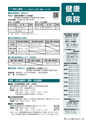 %u5065%u5eb7%u30fb%u75c5%u9662(%u99c5%u5357%u5e81%u820e%uff08%u9ce5%u53d6%u5e02%u4fdd%u5065%u6240%u4e88%u9632%u63a5%u7a2e %u4fdd%u5065%u533b%u7642%u8ab2%u30fb86403008573962-20-0857%u5065%u5eb7%u3065%u304f%u308a%u63a8%u9032%u8ab2%u30fb3964200857%u304c%u3093%u691c%u8a3a%u306a%u3069%u30fb%u5065%u8a3a%u30000320-20-0857%u3053%u3069%u3082%u5bb6%u5ead%u30bb%u30f3%u30bf%u30fc(%u99c5%u5357%u5e81%u820e%uff08%u4e73%u5e7c%u5150%u5065%u5eb7%u8a3a%u67fb%u306a%u3069%u3000%u30008587-30-0857%u5b50%u80b2%u3066%u76f8%u8ac7%u30c0%u30a4%u30e4%u30eb%u3000%u300005053608570144-20-0857%u5404%u7dcf%u5408%u652f%u6240%u5e02%u6c11%u798f%u7949%u8ab28654-30-0857%u56fd%u5e9c%u753a3064-27-08578664300857%u798f%u90e8%u753a3714-74-08571724710858%u6cb3%u539f%u753a0672-85-08581894710858%u7528%u702c%u753a2270-87-08581914710858%u4f50%u6cbb%u753a1552-89-08588674300857%u6c17%u9ad8%u753a1067-82-08578684300857%u9e7f%u91ce%u753a25988408578694300857%u9752%u8c37%u753a1049850857%u9ce5%u53d6%u6771%u4fdd%u5065%u30bb%u30f3%u30bf%u30fc(%u56fd%u5e9c%u753a%u7dcf%u5408%u652f%u6240%uff08%u5065%u8a3a%u306a%u3069%u30fb%u4e88%u9632%u63a5%u7a2e%u3000%u30008659-30-08575023-25-0857 %u9ce5%u53d6%u5e02%u4e2d%u592e%u5305%u62ec%u652f%u63f4%u30bb%u30f3%u30bf%u30fc3457-20-08573906200857 (%u8981%u7533%u8fbc%u307f%uff08%u96e2%u4e73%u98df%u8b1b%u7fd2%u4f1a%u25a0%u99c5%u5357%u5e81%u820e%u5065%u5eb7%u3065%u304f%u308a%u63a8%u9032%u8ab2%u3000%u7533%u8fbc%u307f3964-20-0857 8582-30-0857 %u301c 30:8%uff09%u6c34%uff08%u65e5 1 %u6708 10%u3000%u7533%u8fbc%u307f%u958b%u59cb%u30ab%u6708%u5150 12%uff5e%uff19%u25b6%u30ab%u6708%u5150 6 %u301c 5%u25b6 %u5b9a%u54e1%u5834%u3000%u4f1a%uff0911%u6708%uff08%u65e5%u306b%u3061%u5b9a%u54e1%u5834%u3000%u4f1a%uff0911%u6708%uff08%u65e5%u306b%u3061%u4eba 20%u5e02%u5f79%u6240%u99c5%u5357%u5e81%u820e%uff09%u91d1%uff08%u65e5 28%u4eba 20%u5e02%u5f79%u6240%u99c5%u5357%u5e81%u820e%uff09%u91d1%uff08%u65e5 7%u4eba 10%u7528%u702c%u4fdd%u5065%u30bb%u30f3%u30bf%u30fc%uff09%u6728%uff08%u65e5 20(%u301c15:13 %u53d7%u4ed8%uff0800:15%u301c30:13%u3000%u304d%u3000%u3068%u5bfe%u8c61%u5150 %u4e73%u5e7c%u5150%u5065%u5eb7%u8a3a%u67fb%u25a0%u9752%u8c37%u5730%u57df%u30fb%u9e7f%u91ce%u30fb%u6c17%u9ad8%u4f50%u6cbb%u5730%u57df%u30fb%u7528%u702c%u30fb%u6cb3%u539f%u798f%u90e8%u5730%u57df%u30fb%u56fd%u5e9c%u30fb%u9ce5%u53d6%u5206%u3000%u533a%u6708%u751f 4%u30fb3 %u5e74 7 %u4ee4%u548c%u6708%u751f4%u5e74 7 %u4ee4%u548c6%u30ab%u6708%u5150%u5e741%u67084%u65e5 6 %u4ee4%u548c%u6708%u751f2%u5e74 6 %u4ee4%u548c1%u6b736%u30ab%u6708%u5150%u67085%u65e5%u751f 3%uff5e %u6708%u751f 10 %uff5e 9 %u5e74 4 %u4ee4%u548c%u6708%u751f10%u5e74 4 %u4ee4%u548c3%u6b73%u51502%u6b73%u5150%u6b6f%u79d1%u5065%u8a3a%u304a%u3088%u3073%u30d5%u30c3%u5316%u7269%u5857%u5e03%u25a0%u9752%u8c37%u5730%u57df%u30fb%u9e7f%u91ce%u30fb%u6c17%u9ad8%u4f50%u6cbb%u5730%u57df%u30fb%u7528%u702c%u30fb%u6cb3%u539f%u798f%u90e8%u5730%u57df%u30fb%u56fd%u5e9c%u30fb%u9ce5%u53d6%u6708%u751f 9%u30fb8 %u5e74 5 %u4ee4%u548c%u6708%u751f 8 %u5e74 5 %u4ee4%u548c%u99c5%u5357%u5e81%u820e%u3053%u3069%u3082%u5bb6%u5ead%u30bb%u30f3%u30bf%u30fc%u554f%uff09%u8981%u7533%u8fbc%u307f%uff08%u767a%u9054%u76f8%u8ac7%u25a00144-20-0857 8587-30-0857 %u6b73%u5150%u767a%u9054%u76f8%u8ac7 5%u3001%u5e74%u5c11%u5150%u306e%u767a%u9054%u76f8%u8ac7%u3001%u968f%u6642%u76f8%u8ac7%u3000%u76f8%u8ac7%u5185%u5bb9%u5e02%u5f79%u6240%u99c5%u5357%u5e81%u820e%u3000%u5834%u3000%u3000%u4f1a%u6708%u53f7%u306b%u63b2%u8f09%u3057%u3066%u3044%u307e%u30599%u6708%u5206%u306f10%u203b%u6708%u306e%u3054%u6848%u518511WEB%u4e88%u7d04%u3010%u5c0f%u5150%u79d1%u3001%u5185%u79d1%u3010%u4f11%u65e5%u6025%u60a3%u8a3a%u7642%u6240%u30fb%u591c%u9593%u25a0(%u5bcc%u5b89%u4e00%u4e01%u76ee%u6771%u90e8%u533b%u5e2b%u4f1a%u9928%u524d%uff08%u6025%u60a3%u8a3a%u7642%u6240 %u6771%u90e8%u533b%u5e2b%u4f1a %u554f(%u8a3a%u7642%u6642%u9593%u5185%u306e%u307f%uff082782-22-0857 00:22 %u301c00:19%uff09%u6bce%u65e5%uff08%u591c%u9593%u3011%u8a3a%u5bdf%u301000:17%u301c00:14%u300100:12 %u301c00:9%u795d%u65e5%u30fb%u65e5%u66dc%u5206%u524d%u307e%u3067 15 %u8a3a%u5bdf%u53d7%u4ed8%u306f%u8a3a%u5bdf%u7d42%u4e86%u6642%u9593%u306e%u203b%u4f11%u65e5%u6025%u60a3%u6b6f%u79d1%u8a3a%u7642%u6240%u25a03197-23-0857%uff09 %u6b6f%u79d1%u6280%u5de5%u5c02%u9580%u5b66%u6821%u5185 %u5bcc%u5b89%u4e8c%u4e01%u76ee%uff08%u6771%u90e8%u6b6f%u79d1%u533b%u5e2b%u4f1a %u554f00:16%u301c00:10 %u795d%u4f11%u65e5%u30fb%u65e5%u66dc%u3011%u8a3a%u5bdf%u3010%u4f11%u65e5%u958b%u5c40%u85ac%u5c40%u30fb%u591c%u9593%u25a01583500857%u9ce5%u53d6%u770c%u85ac%u5264%u5e2b%u4f1a%u4f11%u65e5%u591c%u9593%u85ac%u5c40%u554f00:22 %u301c00:19%uff09%u6bce%u65e5%uff08%u591c%u9593%u3011%u958b%u5c40%u301000:17%u301c00:14%u300100:12 %u301c00:9%u795d%u65e5%u30fb%u65e5%u66dc%u3002%u9ce5%u53d6%u770c%u85ac%u5264%u5e2b%u4f1a%u4f11%u65e5%u591c%u9593%u85ac%u5c40%u307e%u3067%u304a%u554f%u3044%u5408%u308f%u305b%u304f%u3060%u3055%u3044%u3001%u8a73%u3057%u304f%u306f%u203b%u3002%u9ce5%u53d6%u770c%u85ac%u5264%u5e2b%u4f1a%u30a6%u30a7%u30d6%u30b5%u30a4%u30c8%u3092%u3054%u89a7%u304f%u3060%u3055%u3044%u3001%u795d%u65e5%u958b%u5c40%u306e%u85ac%u5c40%u306f%u30fb%u4f11%u65e5%u4f11%u65e5%u85ac%u5c40%u30fb%u591c%u9593%uff0f%u4f11%u65e5%u8a3a%u7642%u6240%u30fb%u591c%u95931010.2025 %u3068%u3063%u3068%u308a%u5e02%u5831