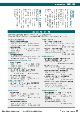 %u3002%u5404%u554f%u5408%u305b%u5148%u3067%u3054%u78ba%u8a8d%u304f%u3060%u3055%u3044%u3001%u672c%u5e02%u516c%u5f0f%u30a6%u30a7%u30d6%u30b5%u30a4%u30c8%u304b%u3001%u6700%u65b0%u306e%u60c5%u5831%u306f%u796d %u5316 %u6587 %u6c11 %u5e02%u3068%u308a%u304e%u3093%u6587%u5316%u4f1a%u9928%u5c55%u793a%u5ba4%u25a0%u5468%u5e74%u8a18%u5ff5%u7fa4%u9752%u7d75%u753b%u5c55 60 %u7d50%u6210%u25b700:17 %uff5e 00:9%uff09%u6c34%uff08%u65e5 15%uff09%uff5e %u6728%uff08%u65e5 9 %u6708 109868-28-0857%uff09 %u91d1%u5bae%uff08%u5e02%u6c11%u30a2%u30c8%u30ea%u30a8%u7fa4%u9752%u5f69%u697d%u4f1a%u58a8%u5f69%u753b%u5c55%u3000%u25b700:17 %uff5e 00:9%uff09%u65e5%uff08%u65e5 26%uff09%uff5e %u6728%uff08%u65e5 23 %u6708 103574-22-0857%uff09 %u666f%u5c71%uff08%u5f69%u697d%u4f1a%u5b9d%u6797%u5802%u30ae%u30e3%u30e9%u30ea%u30fc%u25a0%u9ce5%u53d6%u66f8%u9053%u5973%u6d41%u9078%u629c%u5c55%u25b700:17%uff5e00:10%uff09%u795d%u30fb%u6708%uff0813%u65e5%uff09%uff5e%u571f%uff0810%u670811%u65e52533-24-0857%uff09%u677e%u672c%uff08%u9ce5%u53d6%u66f8%u9053%u9023%u76df%u9ce5%u53d6%u5e02%u6587%u5316%u30bb%u30f3%u30bf%u30fc%u6587%u5316%u6d3b%u52d5%u3072%u308d%u3070%u25a0%u5149%u5199%u771f%u5c55%uff09%u5199%u56e3%u25b7%uff0800:17 %uff5e 00:9%uff09%u6c34%uff08%u65e5 15%uff09%uff5e %u571f%uff08%u65e5 11 %u6708 103398-28-0857%uff09 %u5869%u8c37%uff08%u5149%uff09%u793e%u56e3%uff08%u3068%u308a%u304e%u3093%u6587%u5316%u4f1a%u9928%u5c0f%u30db%u30fc%u30eb%u25a0%u30d4%u30a2%u30ce%u767a%u8868%u4f1a%u300d%uff06%u30b4%u30fc%u30b7%u30e5%u306e%u4f1a%u300c%u30c1%u30a7%u30ed%u25b700:16 %uff5e 00:14%uff09%u65e5%uff08%u65e5 12 %u6708 105008-22-0857%uff09 %u677e%u6d66%uff08%u30b4%u30fc%u30b7%u30e5%u306e%u4f1a%u79cb 2025 %u30c0%u30f3%u30b9%u30dd%u30b1%u30c3%u30c8%u25b730:16 %uff5e 00:15%uff09%u65e5%uff08%u65e5 2 %u6708 116447-28-0857%uff09 %u4f50%u5206%u5229%uff08%u30c0%u30f3%u30b9%u30b3%u30f3%u30b0%u770c%u6c11%u3075%u308c%u3042%u3044%u4f1a%u9928%u30db%u30fc%u30eb%u25a0%u30aa%u30fc%u30b1%u30b9%u30c8%u30e9%u5b9a%u671f%u6f14%u594f%u4f1a%u30fb%u30b8%u30e3%u30ba%u30fb%u30af%u30a4%u30f3%u30d3%u30fc%u25b7~ 00:14%uff09%u795d%u30fb%u6708%uff08%u65e5 13 %u6708 10(%u5965%u8c37%uff08%u30aa%u30fc%u30b1%u30b9%u30c8%u30e9%u30fb%u30b8%u30e3%u30ba%u30fb%u30af%u30a4%u30f3%u30d3%u30fc1702-2297-090 %u30ae%u30e3%u30e9%u30ea%u30fc%u96c6%u25a0%u706b%u306e%u9ce5%u4f5c%u54c1%u5c55%u25b700:17 %uff5e 00:10%uff09%u571f%uff08%u65e525%uff09%uff5e %u6728%uff08%u65e516 %u6708 10(%u4eca%u5d8b%u300d%uff08%u706b%u306e%u9ce5%u300c%u7d75%u753b%u30b0%u30eb%u30fc%u30d71825-2294-090 %u3068%u308a%u304e%u3093%u6587%u5316%u4f1a%u9928%u68a8%u82b1%u30db%u30fc%u30eb%u25a0%u9ce5%u53d6%u5e02%u4ea4%u97ff%u697d%u56e3%u5b9a%u671f%u6f14%u594f%u4f1a%u25b700:16 %uff5e 00:14%uff09%u65e5%uff08%u65e5 19 %u6708 101339-4807-090%uff09 %u4e95%u4e0a%uff08%u9ce5%u53d6%u5e02%u4ea4%u97ff%u697d%u56e3%u4e2d%u96fb%u3075%u308c%u3042%u3044%u30db%u30fc%u30eb%u25a0~%u548c%u7d19%u3061%u304e%u308a%u7d75 %uff5e%u30b5%u30fc%u30af%u30eb%u5c55%u25b700:17 %uff5e 00:10%uff09%u6708%uff08%u65e5 20%uff09%uff5e %u91d1%uff08%u65e5 17 %u6708 10(%u68ee%uff08%u9ce5%u53d6%u548c%u7d19%u3061%u304e%u308a%u7d75%u30b5%u30fc%u30af%u30eb17253170090 %u6d0b%u753b%u30b0%u30eb%u30fc%u30d7%u3055%u308f%u3084%u304b%u306e%u675c%u5c55%u25b700:17 %uff5e 00:10%uff09%u6708%uff08%u65e5 20%uff09%uff5e %u91d1%uff08%u65e5 17 %u6708 10(%u7c73%u6fa4%uff08%u6d0b%u753b%u30b0%u30eb%u30fc%u30d7%u3055%u308f%u3084%u304b%u306e%u675c61001331090 %u9ce5%u53d6%u5e02%u6587%u5316%u30db%u30fc%u30eb%u25a0%u793e%u4f1a%u798f%u7949%u306e%u305f%u3081%u306e%u89aa%u7766%u3068%u53cb%u611b%u306e%u30c1%u30e3%u30ea%u30c6%u30a3%u25b7%u65e5%u672c%u6d77%u30ab%u30e9%u30aa%u30b1%u82b8%u80fd%u30c1%u30e3%u30ea%u30c6%u30a3%u30fc%u30b7%u30e7%u30fc%u3000%u300000:17 %uff5e 30:12%uff09%u65e5%uff08%u65e5 19 %u6708 10(%u9ce5%u53d6%u5e02%u6587%u5316%u56e3%u4f53%u5354%u8b70%u4f1a%uff08%u30b3%u30f3%u30b5%u30fc%u30c8%u2606%u30ad%u30e9%u30ad%u30e9%u25b700:16 %uff5e 00:14%uff09%u65e5%uff08%u65e5 26 %u6708 10(%u9ce5%u53d6%u5e02%u6587%u5316%u56e3%u4f53%u5354%u8b70%u4f1a%uff08%u9752%u5e74%u5287%u5834%u516c%u6f14%u300d%u661f%u3092%u304b%u3059%u3081%u308b%u98a8%u300c%u4f8b%u4f1a%u25b750:20 %uff5e 30:18%uff09%u6c34%uff08%u65e5 29 %u6708 106486230857 %u9ce5%u53d6%u6f14%u5287%u9451%u8cde%u4f1a%u4e00%u97f3%u4f1a%u30a2%u30f3%u30b5%u30f3%u30d6%u30eb%u30da%u30a2%u30fc%u30ba%u5b9a%u671f%u6f14%u594f%u4f1a%u25b730:15 %uff5e 00:14%uff09%u65e5%uff08%u65e5 2 %u6708 114271-1903-080%uff09 %u68ee%u672c%uff08%u4e00%u97f3%u4f1aIkezawa15%u5468%u5e74%u8a18%u5ff5 Shio %u30b9%u30af%u30fc%u30eb%u30fb%u30d0%u30ec%u30a8%u25b7%u30d0%u30ec%u30a8%u30b8%u30e7%u30a4%u30f3%u30c8%u30b3%u30f3%u30b5%u30fc%u30c8%u3000%u300030:17 %uff5e 00:15%uff09%u795d%u30fb%u6708%uff08%u65e5 3 %u6708 11Ikezawa Shio %u30b9%u30af%u30fc%u30eb%u30fb%u30d0%u30ec%u30a84902-24-0857 %u9ce5%u53d6%u5e02%u6c11%u4f1a%u9928%u5927%u30db%u30fc%u30eb%u25a0%u30d0%u30ec%u30a8 de %u30cf%u30ed%u30a6%u30a3%u30f3 !! %u8ab0%u3067%u3082%u53c2%u52a0%u3067%u304d%u308b%u25b700:16 %uff5e 00:11%uff09%u571f%uff08%u65e5 25 %u6708 107773-30-0857 %u9ce5%u53d6%u30b7%u30c6%u30a3%u30d0%u30ec%u30a8%u90a6%u697d%u6f14%u594f%u4f1a%u25b700:16 %uff5e 00:13%uff09%u65e5%uff08%u65e5 26 %u6708 10(%u6728%u539f%uff08%u90fd%u5c71%u6d41%u9ce5%u53d6%u770c%u652f%u90e8%u6771%u90e8%u90e8%u4f1a2878-84-0858 (%u65e5%u66dc%u65e5%u306f%u9664%u304f%u30fb%u571f%u30fb%u6728%uff080515-20-0857 %u9ce5%u53d6%u5e02%u6587%u5316%u56e3%u4f53%u5354%u8b70%u4f1a%u554f%u3002%u5206%u306f%u524d%u6708%u53f7%u3092%u3054%u89a7%u304f%u3060%u3055%u3044%uff097%u65e5%u307e%u3067%uff08%u5f53%u6708%u3002%u5206%u306e%u60c5%u5831%u3092%u63b2%u8f09%uff097%u65e5%u307e%u3067%uff08%u5206%u3068%u7fcc%u6708%uff098%u65e5%u4ee5%u964d%uff08%u5f53%u6708%u203b%uff10%uff18%uff15%uff17%uff09%u6708%u66dc%u65e5%u4f11%u9928 %uff08%u554f%u56fd%u969b%u4ea4%u6d41%u30d7%u30e9%u30b6%u30fb%u4e2d%u56fd%u6599%u7406%u6559%u5ba4%u3075%u308f%u3075%u308f%u8089%u307e%u3093%u3092%u4f5c%u308d%u3046%uff13%uff12%uff15%uff1331jp.lg.tottori.city@plaza%u664211%u6708)15%u65e5%u571f(00:10~00:13:%
