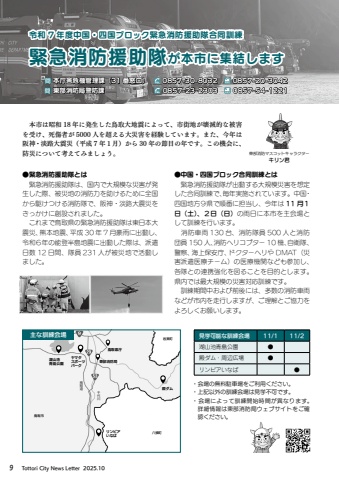 3042-20-0857%u3000 8032-30-0857%uff09 %u3000 %u756a%u7a93%u53e3 31%uff08%u672c%u5e81%u820e%u5371%u6a5f%u7ba1%u7406%u8ab2 %u554f1221-54-0857%u3000 2303-23-0857 %u3000 %u3000%u3000%u3000%u3000%u3000%u3000 %u6771%u90e8%u6d88%u9632%u5c40%u8b66%u9632%u8ab2 %u554f%u7dca%u6025%u6d88%u9632%u63f4%u52a9%u968a%u3068%u306f%u25cf%u56fd%u5185%u3067%u5927%u898f%u6a21%u306a%u707d%u5bb3%u304c%u767a%u3001%u7dca%u6025%u6d88%u9632%u63f4%u52a9%u968a%u306f%u3000%u88ab%u707d%u5730%u306e%u6d88%u9632%u529b%u3092%u52a9%u3051%u308b%u305f%u3081%u306b%u5168%u56fd%u3001%u751f%u3057%u305f%u969b%u6de1%u8def%u5927%u9707%u707d%u3092%u30fb%u962a%u795e%u3001%u304b%u3089%u99c6%u3051%u3064%u3051%u308b%u6d88%u9632%u968a%u3067%u3002%u304d%u3063%u304b%u3051%u306b%u5275%u8a2d%u3055%u308c%u307e%u3057%u305f%u3053%u308c%u307e%u3067%u9ce5%u53d6%u770c%u306e%u7dca%u6025%u6d88%u9632%u63f4%u52a9%u968a%u306f%u6771%u65e5%u672c%u5927%u3000%u3001%u6708%u8c6a%u96e8%u306b%u51fa%u52d5%u3057 7 %u5e74 30 %u5e73%u6210%u3001%u718a%u672c%u5730%u9707%u3001%u9707%u707d%u6d3e%u9063%u3001%u4ee4%u548c%uff16%u5e74%u306e%u80fd%u767b%u534a%u5cf6%u5730%u9707%u306b%u51fa%u52d5%u3057%u305f%u969b%u306f%u4eba%u304c%u88ab%u707d%u5730%u3067%u6d3b%u52d5%u3057 231 %u968a%u54e1%u3001%u65e5%u9593 12 %u65e5%u6570%u3002%u307e%u3057%u305f%u56db%u56fd%u30d6%u30ed%u30c3%u30af%u5408%u540c%u8a13%u7df4%u3068%u306f%u30fb%u4e2d%u56fd%u25cf%u7dca%u6025%u6d88%u9632%u63f4%u52a9%u968a%u304c%u51fa%u52d5%u3059%u308b%u5927%u898f%u6a21%u707d%u5bb3%u3092%u60f3%u5b9a%u3000%u30fb%u4e2d%u56fd%u3002%u6bce%u5e74%u5b9f%u65bd%u3055%u308c%u3066%u3044%u307e%u3059%u3001%u3057%u305f%u5408%u540c%u8a13%u7df4%u3067%u6708%uff11 11%u4eca%u5e74%u306f%u3001%u56db%u56fd%u5730%u65b9%uff19%u770c%u3067%u9806%u756a%u306b%u62c5%u5f53%u3057%u306e%u4e21%u65e5%u306b%u672c%u5e02%u3092%u4e3b%u4f1a%u5834%u3068%uff09%u65e5%uff08%uff12%u65e5%uff09%u3001%u571f%uff08%u65e5%u3002%u3057%u3066%u8a13%u7df4%u3092%u884c%u3044%u307e%u3059%u4eba%u3068%u6d88%u9632 500 %u6d88%u9632%u968a%u54e1%u3001%u53f0 130 %u6d88%u9632%u8eca%u4e21%u3000%u3001%u81ea%u885b%u968a%u3001%u6a5f 10 %u6d88%u9632%u30d8%u30ea%u30b3%u30d7%u30bf%u30fc%u3001%u4eba 150 %u56e3%u54e1%u707d%uff08DMAT %u30c9%u30af%u30bf%u30fc%u30d8%u30ea%u3084%u3001%u6d77%u4e0a%u4fdd%u5b89%u5e81%u3001%u8b66%u5bdf%u3001%u306e%u533b%u7642%u6a5f%u95a2%u306a%u3069%u3082%u53c2%u52a0%u3057%uff09%u5bb3%u6d3e%u9063%u533b%u7642%u30c1%u30fc%u30e0%u3002%u5404%u968a%u3068%u306e%u9023%u643a%u5f37%u5316%u3092%u56f3%u308b%u3053%u3068%u3092%u76ee%u7684%u3068%u3057%u307e%u3059%u3002%u770c%u5185%u3067%u306f%u6700%u5927%u898f%u6a21%u306e%u707d%u5bb3%u5bfe%u5fdc%u8a13%u7df4%u3067%u3059%u591a%u6570%u306e%u6d88%u9632%u8eca%u4e21%u3001%u8a13%u7df4%u671f%u9593%u4e2d%u304a%u3088%u3073%u524d%u5f8c%u306b%u306f%u3000%u3054%u7406%u89e3%u3068%u3054%u5354%u529b%u3092%u3001%u306a%u3069%u304c%u5e02%u5185%u3092%u8d70%u884c%u3057%u307e%u3059%u304c%u3002%u3088%u308d%u3057%u304f%u304a%u9858%u3044%u3057%u307e%u3059%u56db%u56fd%u30d6%u30ed%u30c3%u30af%u7dca%u6025%u6d88%u9632%u63f4%u52a9%u968a%u5408%u540c%u8a13%u7df4%u30fb%u5e74%u5ea6%u4e2d%u56fd 7 %u4ee4%u548c%u7dca%u6025%u6d88%u9632%u63f4%u52a9%u968a%u304c%u672c%u5e02%u306b%u96c6%u7d50%u3057%u307e%u3059%u5e02%u8857%u5730%u304c%u58ca%u6ec5%u7684%u306a%u88ab%u5bb3%u3001%u5e74%u306b%u767a%u751f%u3057%u305f%u9ce5%u53d6%u5927%u5730%u9707%u306b%u3088%u3063%u3066 18 %u672c%u5e02%u306f%u662d%u548c%u3000%u4eca%u5e74%u306f%u3001%u307e%u305f%u3002%u4eba%u3092%u8d85%u3048%u308b%u5927%u707d%u5bb3%u3092%u7d4c%u9a13%u3057%u3066%u3044%u307e%u3059 5000 %u6b7b%u50b7%u8005%u304c%u3001%u3092%u53d7%u3051%u3001%u3053%u306e%u6a5f%u4f1a%u306b%u3002%u5e74%u306e%u7bc0%u76ee%u306e%u5e74%u3067%u3059 30 %u304b%u3089%uff09%u5e74%uff11%u6708 7 %u5e73%u6210%uff08%u6de1%u8def%u5927%u9707%u707d%u30fb%u962a%u795e%u3002%u9632%u707d%u306b%u3064%u3044%u3066%u8003%u3048%u3066%u307f%u307e%u3057%u3087%u30462/111/11%u898b%u5b66%u53ef%u80fd%u306a%u8a13%u7df4%u4f1a%u5834%u25cf%u6e56%u5c71%u6c60%u9752%u5cf6%u516c%u5712%u25cf%u5468%u8fba%u5e83%u5834%u30fb%u6bbf%u30c0%u30e0%u25cf%u30ea%u30f3%u30d4%u30a2%u3044%u306a%u3070%u3002%u4f1a%u5834%u306e%u7121%u6599%u99d0%u8eca%u5834%u3092%u3054%u5229%u7528%u304f%u3060%u3055%u3044%u30fb%u3002%u4e0a%u8a18%u4ee5%u5916%u306e%u8a13%u7df4%u4f1a%u5834%u306f%u898b%u5b66%u4e0d%u53ef%u3067%u3059%u30fb%u3002%u4f1a%u5834%u306b%u3088%u3063%u3066%u8a13%u7df4%u958b%u59cb%u6642%u9593%u304c%u7570%u306a%u308a%u307e%u3059%u30fb%u8a73%u7d30%u60c5%u5831%u306f%u6771%u90e8%u6d88%u9632%u5c40%u30a6%u30a7%u30d6%u30b5%u30a4%u30c8%u3092%u3054%u78ba%u3002%u8a8d%u304f%u3060%u3055%u3044%u4e3b%u306a%u8a13%u7df4%u4f1a%u5834%u6771%u90e8%u6d88%u9632%u30de%u30b9%u30b3%u30c3%u30c8%u30ad%u30e3%u30e9%u30af%u30bf%u30fc%u30ad%u30ea%u30f3%u541b%u6e56%u5c71%u6c60%u9752%u5cf6%u516c%u5712%u30ea%u30f3%u30d4%u30a2%u3044%u306a%u3070%u6bbf%u30c0%u30e0%u9ce5%u53d6%u5e02%u9ce5%u53d6%u9053%u5343%u4ee3%u5ddd%u516b%u982d%u753a%u5ca9%u7f8e%u753a%u9ce5%u53d6%u770c%u5e81%u6771%u90e8%u6d88%u9632%u5c40%u30e4%u30de%u30bf%u30b9%u30dd%u30fc%u30c4%u30d1%u30fc%u30af10.2025 Letter News City Tottori9