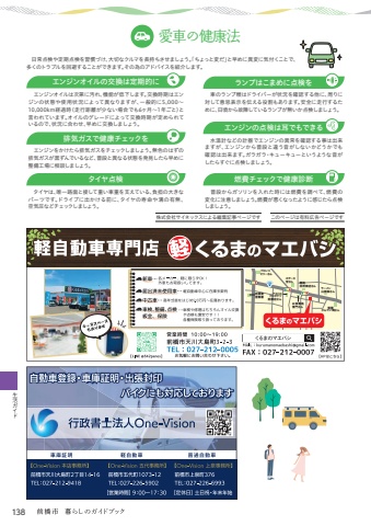 %u3000%u65e5%u5e38%u70b9%u691c%u3084%u5b9a%u671f%u70b9%u691c%u3092%u7fd2%u6163%u3065%u3051%u3001%u5927%u5207%u306a%u30af%u30eb%u30de%u3092%u9577%u6301%u3061%u3055%u305b%u307e%u3057%u3087%u3046%u3002%u300c%u3061%u3087%u3063%u3068%u5909%u3060%u300d%u3068%u65e9%u3081%u306b%u7570%u5909%u306b%u6c17%u4ed8%u304f%u3053%u3068%u3067%u3001%u591a%u304f%u306e%u30c8%u30e9%u30d6%u30eb%u3092%u56de%u907f%u3059%u308b%u3053%u3068%u304c%u3067%u304d%u307e%u3059%u3002%u305d%u306e%u70ba%u306e%u30a2%u30c9%u30d0%u30a4%u30b9%u3092%u7d39%u4ecb%u3057%u307e%u3059%u3002%u3000%u30a8%u30f3%u30b8%u30f3%u30aa%u30a4%u30eb%u306f%u6b21%u7b2c%u306b%u6c5a%u308c%u3001%u6a5f%u80fd%u304c%u4f4e%u4e0b%u3057%u307e%u3059%u3002%u4ea4%u63db%u6642%u671f%u306f%u30a8%u30f3%u30b8%u30f3%u306e%u72b6%u614b%u3084%u4f7f%u7528%u72b6%u6cc1%u306b%u3088%u3063%u3066%u7570%u306a%u308a%u307e%u3059%u304c%u3001%u4e00%u822c%u7684%u306b5,000%uff5e10,000km%u7d4c%u904e%u6642%uff08%u8d70%u884c%u8ddd%u96e2%u304c%u5c11%u306a%u3044%u5834%u5408%u3067%u30826%u30f6%u6708%uff5e1%u5e74%u3054%u3068%uff09%u3068%u8a00%u308f%u308c%u3066%u3044%u307e%u3059%u3002%u30aa%u30a4%u30eb%u306e%u30b0%u30ec%u30fc%u30c9%u306b%u3088%u3063%u3066%u4ea4%u63db%u6642%u671f%u304c%u5b9a%u3081%u3089%u308c%u3066%u3044%u308b%u306e%u3067%u3001%u72b6%u6cc1%u306b%u5408%u308f%u305b%u3001%u65e9%u3081%u306b%u4ea4%u63db%u3057%u307e%u3057%u3087%u3046%u3002%u30a8%u30f3%u30b8%u30f3%u30aa%u30a4%u30eb%u306e%u4ea4%u63db%u306f%u5b9a%u671f%u7684%u306b%u3000%u30a8%u30f3%u30b8%u30f3%u3092%u304b%u3051%u305f%u3089%u6392%u6c17%u30ac%u30b9%u3092%u30c1%u30a7%u30c3%u30af%u3057%u307e%u3057%u3087%u3046%u3002%u7121%u8272%u306e%u306f%u305a%u306e%u6392%u6c17%u30ac%u30b9%u304c%u9ed2%u305a%u3093%u3067%u3044%u308b%u306a%u3069%u3001%u666e%u6bb5%u3068%u7570%u306a%u308b%u72b6%u614b%u3092%u767a%u898b%u3057%u305f%u3089%u65e9%u3081%u306b%u6574%u5099%u5de5%u5834%u306b%u76f8%u8ac7%u3057%u307e%u3057%u3087%u3046%u3002%u6392%u6c17%u30ac%u30b9%u3067%u5065%u5eb7%u30c1%u30a7%u30c3%u30af%u3092%u3000%u30bf%u30a4%u30e4%u306f%u3001%u552f%u4e00%u8def%u9762%u3068%u63a5%u3057%u3066%u91cd%u3044%u8eca%u91cd%u3092%u652f%u3048%u3066%u3044%u308b%u3001%u8ca0%u62c5%u306e%u5927%u304d%u306a%u30d1%u30fc%u30c4%u3067%u3059%u3002%u30c9%u30e9%u30a4%u30d6%u306b%u51fa%u304b%u3051%u308b%u524d%u306b%u3001%u30bf%u30a4%u30e4%u306e%u5bff%u547d%u3084%u6e9d%u306e%u6709%u7121%u3001%u7a7a%u6c17%u5727%u306a%u3069%u30c1%u30a7%u30c3%u30af%u3057%u307e%u3057%u3087%u3046%u3002%u30bf%u30a4%u30e4%u70b9%u691c%u3000%u8eca%u306e%u30e9%u30f3%u30d7%u985e%u306f%u30c9%u30e9%u30a4%u30d0%u30fc%u304c%u72b6%u6cc1%u3092%u78ba%u8a8d%u3059%u308b%u4ed6%u306b%u3001%u5468%u308a%u306b%u5bfe%u3057%u3066%u610f%u601d%u8868%u793a%u3092%u4f1d%u3048%u308b%u5f79%u5272%u3082%u3042%u308a%u307e%u3059%u3002%u5b89%u5168%u306b%u8d70%u884c%u3059%u308b%u305f%u3081%u306b%u3001%u65e5%u9803%u304b%u3089%u6545%u969c%u3057%u3066%u3044%u308b%u30e9%u30f3%u30d7%u304c%u7121%u3044%u304b%u70b9%u691c%u3057%u307e%u3057%u3087%u3046%u3002%u30e9%u30f3%u30d7%u306f%u3053%u307e%u3081%u306b%u70b9%u691c%u3092%u3000%u6c34%u6e29%u8a08%u306a%u3069%u306e%u8a08%u5668%u3067%u30a8%u30f3%u30b8%u30f3%u306e%u7570%u5e38%u3092%u78ba%u8a8d%u3059%u308b%u4e8b%u306f%u51fa%u6765%u307e%u3059%u304c%u3001%u30a8%u30f3%u30b8%u30f3%u304b%u3089%u666e%u6bb5%u3068%u9055%u3046%u97f3%u304c%u3057%u306a%u3044%u304b%u3069%u3046%u304b%u3067%u3082%u78ba%u8a8d%u306f%u51fa%u6765%u307e%u3059%u3002%u30ac%u30e9%u30ac%u30e9%u30fb%u30ad%u30e5%u30fc%u30ad%u30e5%u30fc%u3068%u3044%u3046%u3088%u3046%u306a%u97f3%u304c%u3057%u305f%u3089%u3059%u3050%u306b%u70b9%u691c%u3057%u307e%u3057%u3087%u3046%u3002%u30a8%u30f3%u30b8%u30f3%u306e%u70b9%u691c%u306f%u8033%u3067%u3082%u3067%u304d%u308b%u3000%u666e%u6bb5%u304b%u3089%u30ac%u30bd%u30ea%u30f3%u3092%u5165%u308c%u305f%u6642%u306b%u306f%u71c3%u8cbb%u3092%u8abf%u3079%u3066%u3001%u71c3%u8cbb%u306e%u5909%u5316%u306b%u6ce8%u610f%u3057%u307e%u3057%u3087%u3046%u3002%u71c3%u8cbb%u304c%u60aa%u304f%u306a%u3063%u305f%u3088%u3046%u306b%u611f%u3058%u305f%u3089%u70b9%u691c%u3057%u307e%u3057%u3087%u3046%u3002%u71c3%u8cbb%u30c1%u30a7%u30c3%u30af%u3067%u5065%u5eb7%u8a3a%u65ad%u682a%u5f0f%u4f1a%u793e%u30b5%u30a4%u30cd%u30c3%u30af%u30b9%u306b%u3088%u308b%u7de8%u96c6%u8a18%u4e8b%u30da%u30fc%u30b8%u3067%u3059%u3053%u306e%u30da%u30fc%u30b8%u306f%u6709%u6599%u5e83%u544a%u30da%u30fc%u30b8%u3067%u3059%u611b%u8eca%u306e%u5065%u5eb7%u6cd5138%u30d6%u30ed%u30f3%u30b3%u30d6%u30ed%u30f3%u30b3