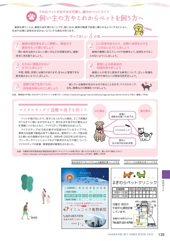 %u3000%u52d5%u7269%u3092%u98fc%u3046%u3053%u3068%u306f%u3001%u52d5%u7269%u306e%u547d%u3092%u9810%u304b%u308b%u3053%u3068%u3067%u3059%u3002%u98fc%u3044%u4e3b%u306f%u3001%u52d5%u7269%u304c%u5065%u5eb7%u3067%u5feb%u9069%u306b%u66ae%u3089%u305b%u308b%u3088%u3046%u306b%u3059%u308b%u3068%u3068%u3082%u306b%u3001%u793e%u4f1a%u3084%u8fd1%u96a3%u306b%u8ff7%u60d1%u3092%u53ca%u307c%u3055%u306a%u3044%u3088%u3046%u306b%u3059%u308b%u8cac%u4efb%u304c%u3042%u308a%u307e%u3059%u3002%u51fa%u5178%u3000%u74b0%u5883%u7701HP%uff62%u98fc%u3044%u4e3b%u306e%u65b9%u3084%u3053%u308c%u304b%u3089%u30da%u30c3%u30c8%u3092%u98fc%u3046%u65b9%u3078%uff63%uff08https://www.env.go.jp/nature/dobutsu/aigo/pickup/owner.html%uff09%u3088%u308a%u52a0%u5de5%u30fb%u7de8%u96c6%u3057%u3066%u4f5c%u6210%u682a%u5f0f%u4f1a%u793e%u30b5%u30a4%u30cd%u30c3%u30af%u30b9%u306b%u3088%u308b%u7de8%u96c6%u8a18%u4e8b%u30da%u30fc%u30b8%u3067%u3059%u3053%u306e%u30da%u30fc%u30b8%u306f%u6709%u6599%u5e83%u544a%u30da%u30fc%u30b8%u3067%u3059%u5b88%u3063%u3066%u307b%u3057%u3044%u3000%u3000%u304b%u6761%u3000%u98fc%u3044%u59cb%u3081%u308b%u524d%u304b%u3089%u6b63%u3057%u3044%u98fc%u3044%u65b9%u306a%u3069%u306e%u77e5%u8b58%u3092%u6301%u3061%u3001%u5065%u5eb7%u30fb%u5b89%u5168%u306b%u6c17%u3092%u914d%u308a%u307e%u3057%u3087%u3046%u3002%u52d5%u7269%u306e%u7fd2%u6027%u7b49%u3092%u6b63%u3057%u304f%u7406%u89e3%u3057%u3001%u6700%u5f8c%u307e%u3067%u8cac%u4efb%u3092%u3082%u3063%u3066%u98fc%u3044%u307e%u3057%u3087%u3046%u3000%u52d5%u7269%u306e%u7a2e%u985e%u306b%u5fdc%u3058%u3066%u3057%u3064%u3051%u3084%u8a13%u7df4%u3092%u3057%u3066%u3001%u8ff7%u60d1%u3092%u304b%u3051%u308b%u3053%u3068%u306e%u306a%u3044%u3088%u3046%u306b%u3057%u307e%u3057%u3087%u3046%u3002%u4eba%u306b%u5371%u5bb3%u3092%u52a0%u3048%u305f%u308a%u3001%u8fd1%u96a3%u306b%u8ff7%u60d1%u3092%u304b%u3051%u308b%u3053%u3068%u306e%u306a%u3044%u3088%u3046%u306b%u3057%u307e%u3057%u3087%u3046%u3000%u98fc%u3063%u3066%u3044%u308b%u52d5%u7269%u304c%u81ea%u5206%u306e%u3082%u306e%u3067%u3042%u308b%u3053%u3068%u3092%u793a%u3059%u3001%u30de%u30a4%u30af%u30ed%u30c1%u30c3%u30d7%u3001%u540d%u672d%u3001%u811a%u74b0%u306a%u3069%u306e%u6a19%u8b58%u3092%u3064%u3051%u307e%u3057%u3087%u3046%u3002%u76d7%u96e3%u3084%u8ff7%u5b50%u3092%u9632%u3050%u305f%u3081%u3001%u6240%u6709%u8005%u3092%u660e%u3089%u304b%u306b%u3057%u307e%u3057%u3087%u3046%u3000%u624b%u9593%u3001%u6642%u9593%u3001%u7a7a%u9593%u306b%u306f%u9650%u308a%u304c%u3042%u308a%u307e%u3059%u3002%u304d%u3061%u3093%u3068%u7ba1%u7406%u3067%u304d%u308b%u6570%u3092%u8d85%u3048%u306a%u3044%u3088%u3046%u306b%u3057%u307e%u3057%u3087%u3046%u3002%u3080%u3084%u307f%u306b%u7e41%u6b96%u3055%u305b%u306a%u3044%u3088%u3046%u306b%u3057%u307e%u3057%u3087%u3046%u3000%u52d5%u7269%u3068%u4eba%u306e%u53cc%u65b9%u306b%u611f%u67d3%u3059%u308b%u75c5%u6c17%u306b%u3064%u3044%u3066%u3001%u6b63%u3057%u3044%u77e5%u8b58%u3092%u6301%u3061%u3001%u81ea%u5206%u3084%u4ed6%u306e%u4eba%u3078%u306e%u611f%u67d3%u3092%u9632%u304e%u307e%u3057%u3087%u3046%u3002%u52d5%u7269%u306b%u3088%u308b%u611f%u67d3%u75c7%u306e%u77e5%u8b58%u3092%u6301%u3061%u307e%u3057%u3087%u3046%u98fc%u3044%u4e3b%u306e%u65b9%u3084%u3053%u308c%u304b%u3089%u30da%u30c3%u30c8%u3092%u98fc%u3046%u65b9%u3078%u51fa%u5178%u3000%u5185%u95a3%u5e9c%u5927%u81e3%u5b98%u623f%u653f%u5e9c%u5e83%u5831%u5ba4%u653f%u5e9c%u5e83%u5831%u30aa%u30f3%u30e9%u30a4%u30f3%u300c%u30da%u30c3%u30c8%u3092%u98fc%u3046%u524d%u3082%u3001%u98fc%u3063%u3066%u304b%u3089%u3082%u8003%u3048%u3088%u3046%u3002%u98fc%u3044%u4e3b%u306e%u300c%u8cac%u4efb%u300d%u3068%u306f%uff1f%u300d%uff08https://www.gov-online.go.jp/useful/article/202009/2.html#firstSection%uff09%u3088%u308a%u52a0%u5de5%u30fb%u7de8%u96c6%u3057%u3066%u4f5c%u6210%u3000%u30da%u30c3%u30c8%u304c%u9003%u3052%u51fa%u3057%u305f%u308a%u3001%u8ff7%u5b50%u306b%u306a%u3063%u305f%u308a%u3057%u305f%u5834%u5408%u3001%u3069%u3053%u3067%u4fdd%u8b77%u3055%u308c%u3066%u3082%u3059%u3050%u306b%u98fc%u3044%u4e3b%u304c%u5206%u304b%u308b%u3088%u3046%u3001%u8eab%u5143%u3092%u793a%u3059%u8ff7%u5b50%u672d%u3084%u9451%u672d%u306a%u3069%u3092%u9996%u8f2a%u306b%u3064%u3051%u308b%u3068%u3068%u3082%u306b%u3001%u30de%u30a4%u30af%u30ed%u30c1%u30c3%u30d7%u3092%u57cb%u3081%u8fbc%u307f%u307e%u3057%u3087%u3046%u3002%u3000%u30de%u30a4%u30af%u30ed%u30c1%u30c3%u30d7%u306f15%u6841%u306e%u6570%u5b57%u304c%u8a18%u9332%u3055%u308c%u3066%u3044%u308b%u30c1%u30c3%u30d7%u3067%u3059%u3002%u5c02%u7528%u306e%u6ce8%u5c04%u5668%u3067%u52d5%u7269%u306e%u76ae%u4e0b%u306b%u57cb%u3081%u8fbc%u307f%u3001%u5c02%u7528%u306e%u30ea%u30fc%u30c0%u30fc%u3067%u8aad%u307f%u53d6%u308b%u3068%u98fc%u3044%u4e3b%u306e%u60c5%u5831%u304c%u5206%u304b%u308a%u307e%u3059%u3002%u4ee4%u548c4%u5e74%uff082022%u5e74%uff096%u67081%u65e5%u304b%u3089%u3001%u30d6%u30ea%u30fc%u30c0%u30fc%u3084%u30da%u30c3%u30c8%u30b7%u30e7%u30c3%u30d7%u306a%u3069%u3067%u8ca9%u58f2%u3055%u308c%u308b%u72ac%u3084%u732b%u306b%u3064%u3044%u3066%u3001%u30de%u30a4%u30af%u30ed%u30c1%u30c3%u30d7%u306e%u88c5%u7740%u30fb%u60c5%u5831%u767b%u9332%u304c%u7fa9%u52d9%u5316%u3055%u308c%u307e%u3057%u305f%u3002%u30de%u30a4%u30af%u30ed%u30c1%u30c3%u30d7%u3067%u76d7%u96e3%u3084%u8ff7%u5b50%u3092%u9632%u3054%u3046%u9451%u672d%u3068%u72c2%u72ac%u75c5%u4e88%u9632%u6ce8%u5c04%u6e08%u7968%u9996%u8f2a%u3068%u9023%u7d61%u5148%u3092%u66f8%u3044%u305f%u8ff7%u5b50%u672d%u72ac%u306e%u5834%u5408