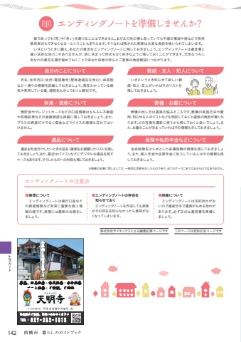 %u682a%u5f0f%u4f1a%u793e%u30b5%u30a4%u30cd%u30c3%u30af%u30b9%u306b%u3088%u308b%u7de8%u96c6%u8a18%u4e8b%u30da%u30fc%u30b8%u3067%u3059%u3053%u306e%u30da%u30fc%u30b8%u306f%u6709%u6599%u5e83%u544a%u30da%u30fc%u30b8%u3067%u3059%u3000%u6c0f%u540d%u30fb%u751f%u5e74%u6708%u65e5%u30fb%u4f4f%u6240%u30fb%u96fb%u8a71%u756a%u53f7%uff08%u7dca%u6025%u9023%u7d61%u5148%u3092%u542b%u3080%uff09%u30fb%u8840%u6db2%u578b%u306a%u3069%u4e00%u901a%u308a%u306e%u60c5%u5831%u3092%u8a18%u8f09%u3057%u3066%u304a%u304d%u307e%u3057%u3087%u3046%u3002%u73fe%u5728%u304b%u304b%u3063%u3066%u3044%u308b%u75c5%u6c17%u3084%u5e38%u7528%u3057%u3066%u3044%u308b%u85ac%u3001%u901a%u9662%u5148%u3082%u793a%u3057%u3066%u304a%u304f%u3068%u89aa%u5207%u3067%u3059%u3002%u81ea%u5206%u306e%u3053%u3068%u306b%u3064%u3044%u3066%u3000%u3044%u3056%u3068%u3044%u3046%u3068%u304d%u77e5%u3089%u305b%u3066%u6b32%u3057%u3044%u89aa%u621a%u30fb%u77e5%u4eba%u30fb%u53cb%u4eba%u304c%u3044%u308c%u3070%u305d%u306e%u30ea%u30b9%u30c8%u3092%u6b8b%u3057%u3066%u304a%u304d%u307e%u3057%u3087%u3046%u3002%u89aa%u621a%u30fb%u53cb%u4eba%u30fb%u77e5%u4eba%u306b%u3064%u3044%u3066%u3000%u9810%u8caf%u91d1%u3084%u30af%u30ec%u30b8%u30c3%u30c8%u30ab%u30fc%u30c9%u306a%u3069%u306e%u53e3%u5ea7%u60c5%u5831%u306f%u3082%u3061%u308d%u3093%u4e0d%u52d5%u7523%u3084%u6709%u4fa1%u8a3c%u5238%u306a%u3069%u306e%u91d1%u878d%u8cc7%u7523%u3082%u8a73%u7d30%u306b%u6b8b%u3057%u3066%u304a%u304d%u307e%u3057%u3087%u3046%u3002%u307e%u305f%u3001%u30d7%u30e9%u30b9%u306e%u8cc7%u7523%u3060%u3051%u3067%u306a%u304f%u501f%u91d1%u306a%u3069%u30de%u30a4%u30ca%u30b9%u306e%u60c5%u5831%u3082%u5fd8%u308c%u3066%u306f%u3044%u3051%u307e%u305b%u3093%u3002%u8ca1%u7523%u30fb%u8cc7%u7523%u306b%u3064%u3044%u3066%u3000%u846c%u5100%u306e%u51fa%u3057%u65b9%u306f%u907a%u65cf%u306e%u60a9%u307f%u3069%u3053%u308d%u3067%u3059%u3002%u846c%u5100%u306e%u5b9f%u65bd%u65b9%u6cd5%u3084%u8cbb%u7528%u3001%u77e5%u3089%u305b%u308b%u4eba%u306e%u30ea%u30b9%u30c8%u306a%u3069%u3092%u660e%u8a18%u3057%u3066%u304a%u304f%u3068%u907a%u65cf%u306e%u8ca0%u62c5%u304c%u8efd%u304f%u306a%u308a%u307e%u3059%u3002%u3069%u306e%u5199%u771f%u3092%u907a%u5f71%u306b%u4f7f%u3046%u304b%u3082%u6b8b%u3057%u3066%u304a%u304f%u3068%u826f%u3044%u3067%u3057%u3087%u3046%u3002%u307e%u305f%u3001%u304a%u5893%u306e%u3053%u3068%u304c%u6c7a%u307e%u3063%u3066%u3044%u308c%u3070%u305d%u306e%u60c5%u5831%u3082%u793a%u3057%u3066%u304a%u304d%u307e%u3057%u3087%u3046%u3002%u846c%u5100%u30fb%u304a%u5893%u306b%u3064%u3044%u3066%u3000%u907a%u54c1%u3092%u5f62%u898b%u5206%u3051%u3057%u305f%u3044%u3068%u304d%u306f%u54c1%u540d%u30fb%u8b72%u6e21%u5148%u3092%u7db2%u7f85%u3057%u305f%u30ea%u30b9%u30c8%u3092%u6b8b%u3057%u3066%u304a%u304d%u307e%u3057%u3087%u3046%u3002%u307e%u305f%u3001%u6700%u8fd1%u306f%u30d1%u30bd%u30b3%u30f3%u306a%u3069%u306b%u30c7%u30b8%u30bf%u30eb%u306a%u907a%u54c1%u3092%u6b8b%u3059%u30b1%u30fc%u30b9%u3082%u3042%u308a%u307e%u3059%u3002%u305d%u3046%u3057%u305f%u3082%u306e%u3078%u306e%u5bfe%u51e6%u3082%u6b8b%u3057%u3066%u304a%u304d%u307e%u3057%u3087%u3046%u3002%u907a%u54c1%u306b%u3064%u3044%u3066%u3000%u751f%u547d%u4fdd%u967a%u3092%u306f%u3058%u3081%u3068%u3057%u305f%u5404%u7a2e%u4fdd%u967a%u306e%u60c5%u5831%u3092%u6b8b%u3057%u3066%u304a%u304d%u307e%u3057%u3087%u3046%u3002%u307e%u305f%u3001%u500b%u4eba%u5e74%u91d1%u3084%u4f01%u696d%u5e74%u91d1%u306b%u52a0%u5165%u3057%u3066%u3044%u308b%u4eba%u306f%u305d%u306e%u60c5%u5831%u3082%u6b8b%u3057%u3066%u304a%u304d%u307e%u3057%u3087%u3046%u3002%u4fdd%u967a%u3084%u79c1%u7684%u5e74%u91d1%u306a%u3069%u306b%u3064%u3044%u3066%u30a8%u30f3%u30c7%u30a3%u30f3%u30b0%u30ce%u30fc%u30c8%u3092%u6e96%u5099%u3057%u307e%u305b%u3093%u304b%uff1f%u203b%u63b2%u8f09%u306e%u8a18%u4e8b%u306b%u95a2%u3057%u307e%u3057%u3066%u306f%u3001%u4e00%u822c%u7684%u306a%u898b%u89e3%u3092%u793a%u3057%u305f%u3082%u306e%u3067%u3042%u308a%u3001%u5168%u3066%u306e%u30b1%u30fc%u30b9%u306b%u3042%u3066%u306f%u307e%u308b%u3082%u306e%u3067%u306f%u3042%u308a%u307e%u305b%u3093%u3002%u3000%u8ab0%u3067%u3042%u3063%u3066%u3082%uff62%u6b7b%uff63%u3084%uff62%u8001%u3044%uff63%u3092%u907f%u3051%u308b%u3053%u3068%u306f%u3067%u304d%u307e%u305b%u3093%u3002%u307e%u3060%u307e%u3060%u5148%u306e%u4e8b%u3068%u601d%u3063%u3066%u3044%u3066%u3082%u4e0d%u616e%u306e%u4e8b%u6545%u3084%u75c5%u306a%u3069%u3067%u7a81%u7136%u610f%u601d%u8868%u793a%u3082%u3067%u304d%u306a%u304f%u306a%u308b%u2026%u3068%u3044%u3046%u3053%u3068%u3082%u3042%u308a%u3048%u307e%u3059%u3002%u305d%u3046%u306a%u308c%u3070%u6b8b%u3055%u308c%u305f%u5bb6%u65cf%u306f%u5927%u5909%u306a%u8ca0%u62c5%u3092%u5f37%u3044%u3089%u308c%u3066%u3057%u307e%u3044%u307e%u3059%u3002%u3000%u3044%u3056%u3068%u3044%u3046%u3068%u304d%u306b%u5099%u3048%u3001%u3042%u306a%u305f%u306e%u610f%u5fd7%u3092%u30a8%u30f3%u30c7%u30a3%u30f3%u30b0%u30ce%u30fc%u30c8%u306b%u6b8b%u3057%u3066%u304a%u304d%u307e%u3057%u3087%u3046%u3002%u30a8%u30f3%u30c7%u30a3%u30f3%u30b0%u30ce%u30fc%u30c8%u306f%u907a%u8a00%u66f8%u3068%u9055%u3044%u6cd5%u7684%u306a%u52b9%u529b%u3053%u305d%u3042%u308a%u307e%u305b%u3093%u304c%u3001%u9006%u306b%u6c7a%u307e%u3063%u305f%u5f62%u5f0f%u3082%u306a%u304f%u597d%u304d%u306a%u3088%u3046%u306b%u6b8b%u3057%u3066%u304a%u304f%u3053%u3068%u304c%u3067%u304d%u307e%u3059%u3002%u5143%u6c17%u306a%u3046%u3061%u306b%u3042%u306a%u305f%u306e%u610f%u5fd7%u3092%u66f8%u304d%u7559%u3081%u3066%u304a%u304f%u3053%u3068%u3067%u3042%u306a%u305f%u81ea%u8eab%u306e%u5b89%u5fc3%u3068%u3054%u5bb6%u65cf%u306e%u8ca0%u62c5%u8efd%u6e1b%u306b%u3064%u306a%u304c%u308a%u307e%u3059%u3002%u30a8%u30f3%u30c7%u30a3%u30f3%u30b0%u30ce%u30fc%u30c8%u306e%u6ce8%u610f%u70b9%u25cf%u8ca1%u7523%u306b%u3064%u3044%u3066%u3000%u30a8%u30f3%u30c7%u30a3%u30f3%u30b0%u30ce%u30fc%u30c8%u306f%u6cd5%u7684%u52b9%u529b%u304c%u306a%u3044%u306e%u3067%u907a%u7523%u5206%u4e0e%u3067%u907a%u65cf%u304c%u3082%u3081%u308b%u6050%u308c%u304c%u3042%u308a%u307e%u3059%u3002%u5fc5%u305a%u6b63%u5f0f%u306a%u907a%u8a00%u66f8%u3092%u6e96%u5099%u3057%u307e%u3057%u3087%u3046%u3002%u25cf%u30a8%u30f3%u30c7%u30a3%u30f3%u30b0%u30ce%u30fc%u30c8%u306e%u5b58