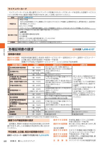 %u62c5%u5f53%u5e02%u6c11%u8ab2 %u260e898-6101%u7533%u8acb%u65b9%u6cd5%u2460%u90f5%u9001%u3067%u7533%u8acb%u5730%u65b9%u516c%u5171%u56e3%u4f53%u60c5%u5831%u30b7%u30b9%u30c6%u30e0%u6a5f%u69cb%u306a%u3069%u304b%u3089%u9001%u4ed8%u3055%u308c%u305fID%u5165%u308a%u7533%u8acb%u66f8%u306b%u5fc5%u8981%u4e8b%u9805%u3092%u8a18%u5165%u3001%u9854%u5199%u771f%u3092%u8cbc%u308a%u3001%u8fd4%u4fe1%u7528%u5c01%u7b52%u3067%u90f5%u9001%u3057%u3066%u304f%u3060%u3055%u3044%u2461%u30aa%u30f3%u30e9%u30a4%u30f3%u3067%u7533%u8acb%u3000%u30b9%u30de%u30fc%u30c8%u30d5%u30a9%u30f3%u3067%u9854%u5199%u771f%u3092%u64ae%u5f71%u3057%u3001ID%u5165%u308a%u7533%u8acb%u66f8%u306e%u4e8c%u6b21%u5143%u30b3%u30fc%u30c9%u304b%u3089%u30aa%u30f3%u30e9%u30a4%u30f3%u3067%u7533%u8acb%u3057%u3066%u304f%u3060%u3055%u3044%u53d7%u3051%u53d6%u308a%u65b9%u6cd5%u5fc5%u305a%u672c%u4eba%u304c%u6307%u5b9a%u3055%u308c%u305f%u53d7%u3051%u53d6%u308a%u5834%u6240%u3067%u53d7%u3051%u53d6%u3063%u3066%u304f%u3060%u3055%u3044%u25cb%u5fc5%u8981%u306a%u7269%u30fb%u672c%u4eba%u78ba%u8a8d%u66f8%u985e%uff08%u904b%u8ee2%u514d%u8a31%u8a3c%u7b49%uff09%u30fb%u4ea4%u4ed8%u901a%u77e5%u66f8%u30fb%u901a%u77e5%u30ab%u30fc%u30c9%u53c8%u306f%u500b%u4eba%u756a%u53f7%u901a%u77e5%u66f8%uff08%u6301%u3063%u3066%u3044%u308b%u4eba%u306e%u307f%uff09%u30fb%u30de%u30a4%u30ca%u30f3%u30d0%u30fc%u30ab%u30fc%u30c9%uff08%u6301%u3063%u3066%u3044%u308b%u4eba%u306e%u307f%uff09%u624b%u6570%u6599%u7121%u6599%uff08%u518d%u767a%u884c%u306b%u306f%u4e8b%u7531%u306b%u3088%u308a%u30011,000%u5186%u304b%u304b%u308b%u5834%u5408%u304c%u3042%u308a%u307e%u3059%u3002%uff09%u30de%u30a4%u30ca%u30f3%u30d0%u30fc%u30ab%u30fc%u30c9%u3000%u30de%u30a4%u30ca%u30f3%u30d0%u30fc%u30ab%u30fc%u30c9%u3068%u306f%u3001%u500b%u4eba%u756a%u53f7%uff08%u30de%u30a4%u30ca%u30f3%u30d0%u30fc%uff09%u304c%u8a18%u8f09%u3055%u308c%u305f%u30ab%u30fc%u30c9%u3067%u3059%u3002%u30ab%u30fc%u30c9%u3092%u6d3b%u7528%u3057%u305f%u5404%u7a2e%u30b5%u30fc%u30d3%u30b9%uff08%u30b3%u30f3%u30d3%u30cb%u4ea4%u4ed8%u7b49%uff09%u3084%u672c%u4eba%u78ba%u8a8d%u306e%u5834%u9762%u3067%u5229%u7528%u3067%u304d%u307e%u3059%u3002%u8a73%u3057%u304f%u306f%u554f%u3044%u5408%u308f%u305b%u3066%u304f%u3060%u3055%u3044%u3002%u8a3c%u660e%u66f8%u306e%u8acb%u6c42%u8acb%u6c42%u3067%u304d%u308b%u5834%u6240%u3000%u5e02%u5f79%u6240%u5e02%u6c11%u8ab22%u756a%u7a93%u53e3%u3001%u5404%u652f%u6240%u30fb%u5e02%u6c11%u30b5%u30fc%u30d3%u30b9%u30bb%u30f3%u30bf%u30fc%u30fb%u8a3c%u660e%u4ea4%u4ed8%u30b3%u30fc%u30ca%u30fc%u3001%u8a3c%u660e%u30b5%u30fc%u30d3%u30b9%u30b3%u30fc%u30ca%u30fc%u8acb%u6c42%u3067%u304d%u308b%u6642%u9593%u3000%u571f%u65e5%u66dc%u3001%u795d%u65e5%u3001%u5e74%u672b%u5e74%u59cb%u3092%u9664%u304f%u5348%u524d9%u6642%u301c%u5348%u5f8c5%u6642%uff08%u524d%u6a4b%u30d7%u30e9%u30b6%u5143%u6c1721%u5185%u8a3c%u660e%u30b5%u30fc%u30d3%u30b9%u30b3%u30fc%u30ca%u30fc%u30fb%u30b3%u30f3%u30d3%u30cb%u4ea4%u4ed8%u306f%u4e0b%u8a18%u3092%u53c2%u7167%uff09%u4f4f%u6c11%u7968%u306e%u8a3c%u660e%u8a3c%u660e%u66f8%u306e%u7a2e%u985e%u624b%u6570%u6599%u8acb%u6c42%u3067%u304d%u308b%u4eba%u5fc5%u8981%u306a%u7269%u4f4f%u6c11%u7968%u8a18%u8f09%u4e8b%u9805%u8a3c%u660e%u66f81%u901a%u3000350%u5186%u30fb%u672c%u4eba%u304b%u672c%u4eba%u3068%u540c%u4e00%u4e16%u5e2f%u306b%u5c5e%u3059%u308b%u4eba%u30fb%u5b98%u516c%u7f72%u306b%u63d0%u51fa%u3059%u308b%u306a%u3069%u3001%u6b63%u5f53%u306a%u7406%u7531%u304c%u3042%u308b%u3068%u8a8d%u3081%u3089%u308c%u308b%u4eba%u30fb%u4ee3%u7406%u4eba%u30fb%u7a93%u53e3%u306b%u6765%u308b%u4eba%u306e%u904b%u8ee2%u514d%u8a31%u8a3c%u3084%u30de%u304d%u306e%u5b98%u516c%u7f72%u767a%u884c%u306e%u672c%u4eba%u78ba%u8a8d%u3067%u304d%u308b%u66f8%u985e%uff09%u30fb%u4ee3%u7406%u4eba%u304b%u3089%u306e%u8acb%u6c42%u306e%u5834%u5408%u306f%u3001%u4efb%u8005%u304c%u81ea%u7f72%u3057%u305f%u59d4%u4efb%u72b6%uff08%u5e83%u57df%u6238%u7c4d%u306b%u3064%u3044%u3066%u306f%u59d4%u4efb%u72b6%u3084%u90f5%u9001%u306b%u3088%u308b%u8acb%u6c42%u306f%u3067%u304d%u307e%u305b%u3093%u3002%u30fb%u305d%u306e%u4ed6%u3001%u5fc5%u8981%u66f8%u985e%u306f%u554f%u3044%u5408%u308f%u305b%u3066%u304f%u3060%u3055%u3044%u4f4f%u6c11%u7968%u306e%u5199%u30571%u901a%u3000350%u5186%uff08%u30b3%u30f3%u30d3%u30cb%u4ea4%u4ed8%u306f1%u901a%u3000100%u5186%uff09%u9664%u79681%u901a%u3000350%u5186 %u554f%u3044%u5408%u308f%u305b%u3066%u304f%u3060%u3055%u3044%u6238%u7c4d%u8a3c%u660e%u66f8%u6238%u7c4d%u5168%u90e8%u30fb%u500b%u4eba%u4e8b%u9805%u8a3c%u660e%uff08%u6238%u7c4d%u8b04%u672c%u30fb%u6284%u672c%uff091%u901a%u3000450%u5186%u30fb%u6238%u7c4d%u3084%u9664%u304b%u308c%u305f%u6238%u7c4d%u306b%u8a18%u8f09%u3055%u308c%u3066%u3044%u30fb%u5b98%u516c%u7f72%u306b%u63d0%u51fa%u3059%u308b%u306a%u3069%u3001%u6b63%u5f53%u306a%u7406%u7531%u304c%u3042%u308b%u3068%u8a8d%u3081%u3089%u308c%u308b%u4eba%u30fb%u4ee3%u7406%u4eba%u9664%u7c4d%uff0f%u6539%u88fd%u539f%u6238%u7c4d%u8b04%u672c%u30fb%u6284%u672c1%u901a%u3000750%u5186%u6238%u7c4d%u306e%u9644%u7968%u306e%u5199%u30571%u901a%u3000350%u5186%u53d7%u7406%u8a3c%u660e%u66f8%uff08%u203b%uff091%u901a%u3000350%u5186%uff08%u4e0a%u8cea%u7d19%u306f1%u901a1,400%u5186%uff09%u30fb%u53d7%u7406%u8a3c%u660e%u66f8%u306f%u5c4a%u51fa%u3092%u3057%u305f%u5e02%u533a%u753a%u6751%u306b%u8acb%u6c42%u3057%u3066%u304f%u3060%u3055%u3044%u30fb%u5c4a%u51fa%u4eba%u3001%u4ee3%u7406%u4eba%u5c4a%u66f8%u8a18%u8f09%u4e8b%u9805%u8a3c%u660e%u66f8%uff08%u203b%uff091%u901a%u3000350%u5186 %u30fb%u554f%u3044%u5408%u308f%u305b%u3066%u304f%u3060%u3055%u3044%u8eab%u5206%u8a3c%u660e%u66f81%u901a%u3000350%u5186%u672c%u4eba%uff08%u4ee3%u7406%u4eba%u306e%u8acb%u6c42%u306f%u672a%u6210%u5e74%u8005%u306e%u89aa%u6a29%u8005%u4ee5%u5916%u306f%u627f%u8afe%u66f8%u304b%u59d4%u4efb%u72b6%u304c%u5fc5%u8981%uff09%u5e83%u57df%u6238%u7c4d%u5168%u90e8%u4e8b%u9805%u8a3c%u660e%uff08%u6238%u7c4d%u8b04%u672c%uff09%uff08%u203b%uff091%u901a%u3000450%u5186%u30fb%u6238%u7c4d%u3084%u9664%u304b%u308c%u305f%u6238%u7c4d%u306b%u8a18%u8f09%u3055%u308c%u3066%u3044%u308b%u4eba%u304b%u305d%u306e%u914d%u5076%u8005%u3002%u76f4%u7cfb%u306e%u89aa%u65cf%uff08%u7236%u6bcd%u30fb%u5b50%u30fb%u7