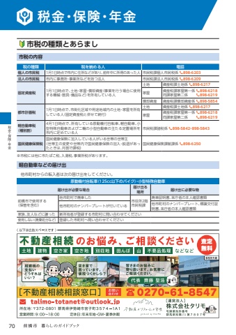%u7a0e%u306e%u7a2e%u985e%u7a0e%u3092%u7d0d%u3081%u308b%u4eba%u96fb%u8a71%u500b%u4eba%u306e%u5e02%u6c11%u7a0e1%u67081%u65e5%u6642%u70b9%u3067%u5e02%u5185%u306b%u4f4f%u6240%u306a%u3069%u304c%u3042%u308a%u3001%u524d%u5e74%u4e2d%u306b%u6240%u5f97%u306e%u3042%u3063%u305f%u4eba%u5e02%u6c11%u7a0e%u8ab2%u500b%u4eba%u5e02%u6c11%u7a0e%u4fc2 %u260e898-6203%u6cd5%u4eba%u306e%u5e02%u6c11%u7a0e%u5e02%u5185%u306b%u4e8b%u52d9%u6240%u30fb%u4e8b%u696d%u6240%u306a%u3069%u3092%u6301%u3064%u6cd5%u4eba%u5e02%u6c11%u7a0e%u8ab2%u6cd5%u4eba%u5e02%u6c11%u7a0e%u4fc2 %u260e898-6209%u56fa%u5b9a%u8cc7%u7523%u7a0e1%u67081%u65e5%u6642%u70b9%u3067%u3001%u571f%u5730%u30fb%u5bb6%u5c4b%u30fb%u511f%u5374%u8cc7%u7523%uff08%u4e8b%u696d%u3092%u884c%u3046%u5834%u5408%u306b%u4f7f%u7528%u3059%u308b%u6a5f%u68b0%u30fb%u5668%u5177%u30fb%u5099%u54c1%u306a%u3069%uff09%u3092%u6240%u6709%u3057%u3066%u3044%u308b%u4eba%u571f%u5730 %u8cc7%u7523%u7a0e%u8ab2%u571f%u5730%u4fc2 %u260e898-6217%u5bb6%u5c4b%u8cc7%u7523%u7a0e%u8ab2%u5bb6%u5c4b%u7b2c%u4e00%u4fc2 %u260e898-6218%u540c%u8ab2%u5bb6%u5c4b%u7b2c%u4e8c%u4fc2%u3000%u3000 %u260e898-6219%u511f%u5374%u8cc7%u7523 %u8cc7%u7523%u7a0e%u8ab2%u511f%u5374%u8cc7%u7523%u4fc2 %u260e898-5854%u90fd%u5e02%u8a08%u753b%u7a0e1%u67081%u65e5%u6642%u70b9%u3067%u3001%u5e02%u8857%u5316%u533a%u57df%u3084%u7528%u9014%u5730%u57df%u5185%u306e%u571f%u5730%u30fb%u5bb6%u5c4b%u3092%u6240%u6709%u3057%u3066%u3044%u308b%u4eba%uff08%u56fa%u5b9a%u8cc7%u7523%u7a0e%u3068%u4f75%u305b%u3066%u7d0d%u4ed8%uff09%u571f%u5730 %u8cc7%u7523%u7a0e%u8ab2%u571f%u5730%u4fc2 %u260e898-6217%u5bb6%u5c4b%u8cc7%u7523%u7a0e%u8ab2%u5bb6%u5c4b%u7b2c%u4e00%u4fc2 %u260e898-6218%u540c%u8ab2%u5bb6%u5c4b%u7b2c%u4e8c%u4fc2 %u3000%u3000%u260e898-6219%u8efd%u81ea%u52d5%u8eca%u7a0e%uff08%u7a2e%u5225%u5272%uff094%u67081%u65e5%u6642%u70b9%u3067%u3001%u6240%u6709%u3057%u3066%u3044%u308b%u539f%u52d5%u6a5f%u4ed8%u81ea%u8ee2%u8eca%u3001%u8efd%u81ea%u52d5%u8eca%u3001%u5c0f%u578b%u7279%u6b8a%u81ea%u52d5%u8eca%u304a%u3088%u3073%u4e8c%u8f2a%u306e%u5c0f%u578b%u81ea%u52d5%u8eca%u306e%u4e3b%u305f%u308b%u5b9a%u7f6e%u5834%u6240%u3092%u5e02%u5185%u306b%u5b9a%u3081%u3066%u3044%u308b%u4eba%u5e02%u6c11%u7a0e%u8ab2%u8af8%u7a0e%u4fc2 %u260e898-5842%u30fb898-5843%u56fd%u6c11%u5065%u5eb7%u4fdd%u967a%u7a0e%u56fd%u6c11%u5065%u5eb7%u4fdd%u967a%u306b%u52a0%u5165%u3057%u3066%u3044%u308b%u4eba%u304c%u3044%u308b%u4e16%u5e2f%u306e%u4e16%u5e2f%u4e3b%uff08%u4e16%u5e2f%u4e3b%u306e%u5909%u66f4%u3084%u4e16%u5e2f%u5185%u3067%u56fd%u6c11%u5065%u5eb7%u4fdd%u967a%u306e%u52a0%u5165%u30fb%u8131%u9000%u304c%u3042%u3063%u305f%u3068%u304d%u306f%u3001%u6708%u5272%u3067%u8ab2%u7a0e%uff09%u56fd%u6c11%u5065%u5eb7%u4fdd%u967a%u8ab2%u8ce6%u8ab2%u4fc2 %u260e898-6250%u5e02%u7a0e%u306e%u5185%u5bb9%u203b%u5e02%u7a0e%u306b%u306f%u4ed6%u306b%u5e02%u305f%u3070%u3053%u7a0e%u3001%u5165%u6e6f%u7a0e%u3001%u4e8b%u696d%u6240%u7a0e%u304c%u3042%u308a%u307e%u3059%u3002%u5c4a%u3051%u51fa%u304c%u5fc5%u8981%u306a%u5834%u5408%u524d%u6a4b%u5e02%u3067%u4f7f%u7528%u3059%u308b%uff08%u4fdd%u7ba1%u3092%u542b%u3080%uff09%u4ed6%u5e02%u753a%u6751%u3067%u5ec3%u8eca%u3057%u305f%u5e02%u5f79%u62402%u968e%u5e02%u6c11%u7a0e%u8ab2%u4ed6%u5e02%u753a%u6751%u306e%u30ca%u30f3%u30d0%u30fc%u30d7%u30ec%u30fc%u30c8%u304c%u4ed8%u3044%u3066%u3044%u308b%u660e%u66f8%u3001%u6765%u5e81%u8005%u306e%u672c%u4eba%u78ba%u8a8d%u66f8%u985e%u5bb6%u65cf%u3001%u53cb%u4eba%u306a%u3069%u306b%u8b72%u3063%u305f %u65b0%u6240%u6709%u8005%u304c%u767b%u9332%u3059%u308b%u5e02%u753a%u6751%u306b%u554f%u3044%u5408%u308f%u305b%u3066%u304f%u3060%u3055%u3044%u4f7f%u7528%u3057%u306a%u3044%uff08%u5ec3%u68c4%u51e6%u5206%u306a%u3069%uff09%u767b%u9332%u3057%u305f%u5e02%u753a%u6751%u3078%u554f%u3044%u5408%u308f%u305b%u3066%u304f%u3060%u3055%u3044%u8efd%u81ea%u52d5%u8eca%u306a%u3069%u306e%u5c4a%u3051%u51fa%u4ed6%u5e02%u753a%u6751%u304b%u3089%u306e%u8ee2%u5165%u8005%u306f%u6b21%u306e%u5c4a%u3051%u51fa%u3092%u3057%u3066%u304f%u3060%u3055%u3044%u3002%u5e02%u7a0e%u306e%u7a2e%u985e%u3068%u3042%u3089%u307e%u305770