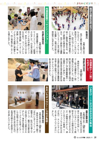 %u301c (%u571f %uff08%u9752%u8c37%u753a%u9752%u8c37%u5730%u5185%uff19%u6708%uff16%u65e5%u7528%u702c%u753a%u7528%u702c%u5730%u5185%uff19%u6708%u300d%u30b5%u30a4%u30a8%u30f3%u30b9%u30b7%u30e7%u30fc %u300c%u7528%u702c%u56f3%u66f8%u9928%u3067%uff01%u3042%u304a%u3044%u3061%u30ae%u30e3%u30e9%u30ea%u30fc%u306b%u529b%u4f5c%u304c%u96c6%u7d50%u304c%u300d%u3042%u304a%u3044%u3061%u30ae%u30e3%u30e9%u30ea%u30fc%u300c%u753a%u5185%u5916%u306e%u500b%u4eba%u3084%u3001%u958b%u50ac%u3055%u308c%u5712%u5150%u3084%u5150%u7ae5%u751f%u5f92%u3001%u30b0%u30eb%u30fc%u30d7%u306e%u4f5c%u54c1%u304c%uff12%uff16%uff14%u70b9%u5c55%u793a%u3055%u308c%u6d77%u5cb8%u306e%u6f02%u7740%u30ac%u30e9%u30b9%u3002%u307e%u3057%u305f%u3092%u4f7f%u3063%u305f%u30a2%u30fc%u300d %u30b7%u30fc%u30b0%u30e9%u30b9%u300c%u30c8%u3084%u548c%u7d19%u3067%u4f5c%u3089%u308c%u305f%u3061%u304e%u308a%u3001%u7d75%u306a%u3069%u591a%u5f69%u306a%u4f5c%u54c1%u304c%u4e26%u3073%u6765%u5834%u8005%u306f%u7d30%u3084%u304b%u306a%u8868%u73fe%u3084%u5de5%u3002%u592b%u3092%u697d%u3057%u3093%u3067%u3044%u307e%u3057%u305f%u9ce5%u53d6%u5e02%u3042%u304a%u3084%u90f7%u571f%u9928%u3067%uff09%u65e5 %uff0828%u65e5%u304c%u958b%u50ac%u300d%u30b5%u30a4%u30a8%u30f3%u30b9%u30b7%u30e7%u30fc%u767d%u8863%u59ff%u306e%u9ce5%u53d6%u3002%u3055%u308c%u307e%u3057%u305f%u5e02%u3053%u3069%u3082%u79d1%u5b66%u9928%u30b9%u30bf%u30c3%u30d5%u53c2%u52a0%u3057%u305f%u7d04%u3001%u304c%u308f%u304f%u308f%u304f %u300c%u7528%u702c%u56f3%u66f8%u9928%u3067%uff09%u65e5 %uff0821%u65e520%u4eba%u306e%u5c0f%u5b66%u8c9d%u3001%u7d9a%u3005%u3068%u89b3%u5ba2%u304c%u96c6%u307e%u308b%u4e2d%u304c%u3089%u7bc0%u8e0a%u308a%u3092%u7d99%u627f%u3059%u308b%u6b63%u8abf%u8c9d%u304c%u3089%u7bc0%u796d%u308a%u3067%u512a%u52dd%u3001%u4f1a%u3084%u3057%u305f%u30b3%u30df%u30cd%u30c3%u30c8%u5b9d%u6728%u304c%u8e0a%u308a%u4f1a%u5834%u306f%u304a%u796d%u308a%u306e%u3001%u3092%u62ab%u9732%u3057%u3002%u96f0%u56f2%u6c17%u306b%u5305%u307e%u308c%u307e%u3057%u305f%u3057%u3085%u3046%u592a%u9f13%u9023%u306e%u6f14%u594f%u3067%u304a%u3046%u9df2%u9022%u30a4%u30aa%u30f3%u30e2%u30fc%u30eb%u3001%u3082%u3089%u304a%u3046%u3068%u9ce5%u53d6%u5317%u3067%u30a4%u30d9%u30f3%u30c8%u3092%u884c%u3044%u307e%u5730%u5143%u306e%u30d6%u30eb%u30fc%u30b9%u30d0%u30f3%u3002%u3057%u305f%u30c9%u3084%u8c9d%u304c%u3089%u7bc0%u306e%u9b45%u529b%u3092%u77e5%u3063%u3066%uff09%u571f %uff08%u6669%u7a32%u5730%u5185%uff19%u6708%uff16%u65e5%u30da%u30c3%u30c8%u30dc%u30c8%u30eb%u3001 %u300c%u751f%u306e%u524d%u3067%u30aa%u30fc%u30ed%u30e9 %u300c%u3084%u300d%u96f2%u767a%u751f%u5b9f%u9a13%u5b50%u3001%u306a%u3069%u3092%u884c%u3063%u305f%u5f8c%u300d%u5b9f%u9a13%u3069%u3082%u305f%u3061%u3082%u5b9f%u969b%u306b%u5b9f%u9a13%u3092%u3057%u540c%u3058%u73fe%u8c61%u304c%u8d77%u3053%u308b%u3053%u3068%u3001%u3066%u3002%u3092%u78ba%u304b%u3081%u307e%u3057%u305f!%u8c9d%u304c%u3089%u7bc0%u3092%u5e83%u3081%u3088%u3046%uff19%u6708%uff09%u68a8 %uff08%u4ea4%u901a%u4e8b%u6545%u30ca%u30b7%u3092%u3081%u3056%u3057%u3066%u798f%u90e8%u753a%u6e6f%u5c71%u5730%u5185%u5ca1%u304a%u304b%u672c%u3082%u3068%uff09%u68a8 %uff08%u30bf%u30fc%u524d%u3067%u4ea4%u901a%u4e8b%u6545%u30ca%u30b7%u9ce5%u53d6%u3002%u904b%u52d5%u304c%u884c%u308f%u308c%u307e%u3057%u305f%u770c%u51fa%u8eab%u306e%u5143%u99c5%u4f1d%u9078%u624b%u306e%u9ce5%u53d6%u7802%u4e18%u30d3%u30b8%u30bf%u30fc%u30bb%u30f3%uff09%u6c34 %uff0824%u65e5%u9ce5%u53d6%u3001%u65e5%u7f72%u9577%u3068%u3057%u3066%u53c2%u52a0%u3057%u770c%u4ea4%u901a%u5b89%u5168%u5354%u4f1a%u9ce5%u53d6%u5730%u533a%u5354%u4f1a%u798f%u90e8%u652f%u90e8%u306e%u4f1a%u54e1%u3084%u8b66%u5bdf%u95a2%u4fc2%u8005%u3068%u68a8%u3084%u5553%u767a%u30b0%u30c3%u30ba%u3092%u624b%u6e21%u3057%u3066%u30c9%u30e9%u30a4%u30d0%u30fc%u306b%u5b89%u5168%u904b%u3002%u8ee2%u3092%u547c%u3073%u304b%u3051%u307e%u3057%u305f%u76f4%u306a%u304a%u5df1%u304d%u3055%u3093%u304c%u9ce5%u53d6%u8b66%u5bdf%u7f72%u306e%u4e00%u9e7f%u91ce%u753a%u9e7f%u91ce%u5730%u5185%uff19%u6708%u30fb (%u571f %uff0827%u65e5%u3053%u3053%u3060%u3051%u306e%u304a%u307f%u305b%u304c%u5927%u96c6%u5408%u30fb%u3044%u307e%u3060%u3051%u3001%u5bb6%u3084%u53e4%u6c11%u5bb6%u3092%u5229%u7528%u3057%u3066%uff2e%uff30%uff2f%u6cd5%u4eba%u3044%u3093%u3057%u3085%u3046%u9e7f%u91ce%u307e%u3061%u3065%u304f%u308a%u5354%u8b70%u4f1a%u306e%u4e3b%u9031%u672b%u3060%u3051%u306e%u307e%u3061%u306e%u307f %u300c%u50ac%u3067%u901a%u3002%u304c%u958b%u50ac%u3055%u308c%u307e%u3057%u305f%u300d%u305b%u30ef%u30fc%u3001 %u308a%u306b%u306f%u30ab%u30d5%u30a7%u3084%u96d1%u8ca8%u30af%u30b7%u30e7%u30c3%u30d7%u306a%u3069%u591a%u5f69%u306a%u5e97%u5927%u4eba%u304b%u3089%u5b50%u3069%u3082%u3001%u304c%u4e26%u3073%u307e%u3067%u591a%u304f%u306e%u4eba%u3067%u306b%u304e%u308f%u3044%u3002%u307e%u3057%u305f%u9e7f%u91ce%u57ce%u4e0b%u753a%u5468%u8fba%u306e%u7a7a%u304d%uff09%u65e5 %uff0828%u65e52811.2025 %u3068%u3063%u3068%u308a%u5e02%u5831