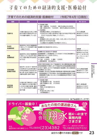%u7a2e%u985e%u5bfe%u8c61%u5185%u5bb9%u554f%u3044%u5408%u308f%u305b%u5150%u7ae5%u624b%u5f5318%u6b73%u306e%u8a95%u751f%u65e5%u306e%u3042%u3068%u306e%u6700%u521d%u306e%u5e74%u5ea6%u672b%uff08%u9ad8%u6821%u751f%u5e74%u4ee3%uff09%u307e%u3067%u306e%u5150%u7ae5%u3092%u990a%u80b2%u3057%u3066%u3044%u308b%u65b9%u25cf %u652f%u7d66%u984d%uff08%u6708%u984d%uff09 0%u6b73%uff5e3%u6b73%u672a%u6e80%u300015,000%u5186%u3000%uff08%u7b2c3%u5b50%u4ee5%u964d%u306f30,000%u5186%uff09 3%u6b73%uff5e%u9ad8%u6821%u751f%u5e74%u4ee3%u300010,000%u5186%u3000%uff08%u7b2c3%u5b50%u4ee5%u964d%u306f30,000%u5186%uff09%u25cf %u652f%u7d66%u958b%u59cb %u652f%u7d66%u4e8b%u7531%u306e%u767a%u751f%u3057%u305f%u6708%u306e%u7fcc%u6708%u304b%u3089 %u203b %u51fa%u751f%u65e5%u307e%u305f%u306f%u8ee2%u5165%u524d%u5e02%u753a%u6751%u3067%u5c4a%u3051%u51fa%u305f%u8ee2%u51fa%u4e88%u5b9a%u65e5%u306e%u7fcc%u65e5%u304b%u308915%u65e5%u4ee5%u5185%u306b%u7533%u8acb%u3057%u3066%u304f%u3060%u3055%u3044%u3002%u25cf %u652f%u7d66%u6708 %u5404%u5076%u6570%u6708%uff084%u6708%u30016%u6708%u30018%u6708%u300110%u6708%u300112%u6708%u30012%u6708%uff09%u306b%u305d%u308c%u305e%u308c%u306e%u524d%u6708%u5206%u307e%u3067%u306e%u624b%u5f53%u3092%u652f%u7d66 %u203b %u516c%u52d9%u54e1%u306e%u65b9%u306f%u52e4%u52d9%u5148%u3067%u304a%u624b%u7d9a%u304d%u304f%u3060%u3055%u3044%u3002%u5b50%u3069%u3082%u798f%u7949%u8ab2%u260e0856-31-0243%u2073 0856-22-8833%u4e73%u5e7c%u5150%u533b%u7642%u8cbb%u52a9%u6210%u76ca%u7530%u5e02%u5185%u306b%u5728%u4f4f%u306e%u5065%u5eb7%u4fdd%u967a%u306b%u52a0%u5165%u3057%u3066%u3044%u308b%u672a%u5c31%u5b66%uff080%u6b73%uff5e6%u6b73%u307e%u3067%uff09%u306e%u65b9%u533b%u7642%u8cbb%u306e%u81ea%u5df1%u8ca0%u62c5%u304c%u3042%u308a%u307e%u305b%u3093%u3002%u4fdd%u967a%u8ab2%u260e0856-31-0215%u2073 0856-24-0180%u8a73%u3057%u304f%u306f%u5e02%u516c%u5f0f%u30a6%u30a7%u30d6%u30b5%u30a4%u30c8%u3092%u3054%u89a7%u304f%u3060%u3055%u3044%u3002%u533b%u7642%u8cbb%u52a9%u6210%u76ca%u7530%u5e02%u5185%u306b%u5728%u4f4f%u306e%u5065%u5eb7%u4fdd%u967a%u306b%u52a0%u5165%u3057%u3066%u3044%u308b%u5c0f%u5b661%u5e74%u751f%u304b%u308918%u6b73%uff08%u9ad8%u68213%u5e74%u751f%u76f8%u5f53%uff09%u307e%u3067%u306e%u65b9%u533b%u7642%u8cbb%u306e%u81ea%u5df1%u8ca0%u62c5%u5206%u304c1%u5272%u8ca0%u62c5%u533b%u7642%u6a5f%u95a2%u7b49%u3078%u5165%u9662%u901a%u9662%u6bce%u306b%u3072%u3068%u6708%u5f53%u305f%u308a%u306e%u81ea%u5df1%u8ca0%u62c5%u984d%u306e%u4e0a%u9650%u984d%u3092%u8d85%u3048%u308b%u3053%u3068%u306f%u3042%u308a%u307e%u305b%u3093%u3002%u81ea%u5df1%u8ca0%u62c5%u306e%u4e0a%u9650%u984d%u25cf %u5165%u9662%u30002,000%u5186%u3000%u25cf %u901a%u9662%u30001,000%u5186%u25cf %u8abf%u5264%u85ac%u5c40%u7b49%u3000%u81ea%u5df1%u8ca0%u62c5%u306a%u3057%u672a%u719f%u5150%u990a%u80b2%u533b%u7642%u7d66%u4ed8%u5236%u5ea6%u76ca%u7530%u5e02%u306b%u5728%u4f4f%u306e1%u6b73%u672a%u6e80%u306e%u672a%u719f%u5150%u3067%u51fa%u751f%u6642%u4f53%u91cd%u304c2000g%u672a%u6e80%u307e%u305f%u306f%u751f%u6d3b%u529b%u304c%u7279%u306b%u5f31%u3044%u4e73%u5150%u3067%u533b%u5e2b%u304c%u5165%u9662%u6cbb%u7642%u306f%u5fc5%u8981%u3068%u8a8d%u3081%u305f%u5834%u5408%u4e16%u5e2f%u306e%u5e02%u753a%u6751%u6c11%u7a0e%u306b%u5fdc%u3058%u3066%u533b%u7642%u7d66%u4ed8%u306b%u4fc2%u308b%u8cbb%u7528%u5fb4%u53ce%u984d%uff08%u4fdd%u8b77%u8005%u8ca0%u62c5%u9650%u5ea6%u984d%uff09%u3092%u7b97%u5b9a%u3057%u307e%u3059%u304c%u76ca%u7530%u5e02%u4e73%u5e7c%u5150%u533b%u7642%u8cbb%u52a9%u6210%u5236%u5ea6%u3092%u4f75%u305b%u3066%u9069%u7528%u3057%u307e%u3059%u306e%u3067%u4fdd%u967a%u9069%u7528%u306e%u533b%u7642%u8cbb%u306b%u4fc2%u308b%u4fdd%u8b77%u8005%u8ca0%u62c5%u306f%u7121%u6599%u306b%u306a%u308a%u307e%u3059%u3002%u203b %u533b%u7642%u8cbb%u306b%u4fc2%u308b%u81ea%u5df1%u8ca0%u62c5%u984d%u304c%u990a%u80b2%u533b%u7642%u306e%u8cbb%u7528%u5fb4%u53ce%u984d%uff08%u4fdd%u8b77%u8005%u8ca0%u62c5%u9650%u5ea6%u984d%uff09%u3092%u4e0b%u56de%u308b%u5834%u5408%u3001%u4e73%u5e7c%u5150%u533b%u7642%u8cbb%u52a9%u6210%u5236%u5ea6%u3067%u306f%u98df%u4e8b%u7642%u990a%u8cbb%u304c%u5bfe%u8c61%u3068%u306a%u3089%u306a%u3044%u305f%u3081%u4fdd%u8b77%u8005%u8ca0%u62c5%u304c%u767a%u751f%u3059%u308b%u5834%u5408%u304c%u3042%u308a%u307e%u3059%u5b50%u3069%u3082%u5bb6%u5ead%u652f%u63f4%u8ab2%u260e0856-31-1381%u2073 0856-23-7134%u7279%u5225%u5150%u7ae5%u6276%u990a%u624b%u5f5320%u6b73%u672a%u6e80%u3067%u7cbe%u795e%u307e%u305f%u306f%u8eab%u4f53%u306b%u91cd%u5ea6%u307e%u305f%u306f%u4e2d%u5ea6%u306e%u969c%u304c%u3044%u306e%u3042%u308b%u5150%u7ae5%u3092%u76e3%u8b77%u30fb%u990a%u80b2%u3057%u3066%u3044%u308b%u7236%u304b%u6bcd%u307e%u305f%u306f%u990a%u80b2%u8005%u304c%u5bfe%u8c61%u25cf %u652f%u7d66%u984d%uff08%u6708%u984d%uff09 1%u7d1a%uff08%u91cd%u5ea6%u969c%u304c%u3044%u5150%uff09%u300056,800%u5186 2%u7d1a%uff08%u4e2d%u5ea6%u969c%u304c%u3044%u5150%uff09%u300037,830%u5186%u25cf %u652f%u7d66%u958b%u59cb %u7533%u8acb%u3057%u305f%u6708%u306e%u7fcc%u6708%u5206%u304b%u3089%u25cf %u652f%u7d66%u6708 %u5e743%u56de%uff084%u6708%u30018%u6708%u300111%u6708%uff09 %u203b%u6240%u5f97%u5236%u9650%u3042%u308a%u969c%u304c%u3044%u8005%u798f%u7949%u8ab2%u260e0856-31-0251%u2073 0856-31-8120%u5b50%u80b2%u3066%u306e%u305f%u3081%u306e%u7d4c%u6e08%u7684%u652f%u63f4%u30fb%u533b%u7642%u7d66%u4ed8 %uff08%u4ee4%u548c7%u5e744%u67081%u65e5%u73fe%u5728%uff09