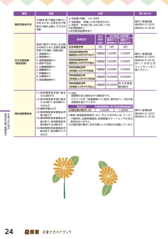 %u969c%u5bb3%u5150%u798f%u7949%u624b%u5f5320%u6b73%u672a%u6e80%u3067%u91cd%u5ea6%u306e%u969c%u304c%u3044%u304c%u3042%u308b%u305f%u3081%u3001%u65e5%u5e38%u751f%u6d3b%u3067%u5e38%u6642%u306e%u4ecb%u8b77%u3092%u5fc5%u8981%u3068%u3059%u308b%u65b9%u304c%u5bfe%u8c61%u25cf %u652f%u7d66%u984d%uff08%u6708%u984d%uff09%u300016,100%u5186%u25cf %u652f%u7d66%u958b%u59cb%u3000%u7533%u8acb%u3057%u305f%u6708%u306e%u7fcc%u6708%u5206%u304b%u3089%u25cf %u652f%u7d66%u6708%u3000%u5e744%u56de%uff082%u6708%u30015%u6708%u30018%u6708%u300111%u6708%uff09%u203b%u6240%u5f97%u5236%u9650%u3042%u308a%u203b%u5728%u5b85%u7b49%u652f%u7d66%u8981%u4ef6%u3042%u308a%u969c%u304c%u3044%u8005%u798f%u7949%u8ab2%u260e0856-31-0251%u2073 0856-31-8120%u81ea%u7acb%u652f%u63f4%u533b%u7642%uff08%u80b2%u6210%u533b%u7642%uff09%u8eab%u4f53%u306b%u969c%u304c%u3044%u3092%u6709%u3057%u751f%u6d3b%u80fd%u529b%u3092%u5f97%u308b%u305f%u3081%u306b%u5fc5%u8981%u306a%u533b%u7642%u3092%u53d7%u3051%u308b%u5150%u7ae5%uff0818%u6b73%u672a%u6e80%uff091%uff0e%u8996%u899a%u969c%u304c%u30442%uff0e%u8074%u899a%u969c%u304c%u30443%uff0e%u8a00%u8a9e%u6a5f%u80fd%u969c%u304c%u30444%uff0e%u80a2%u4f53%u4e0d%u81ea%u75315%uff0e%u5fc3%u81d3%u6a5f%u80fd%u969c%u304c%u30446%uff0e%u814e%u81d3%u969c%u304c%u30447%uff0e%u809d%u81d3%u969c%u304c%u30448%uff0e%u5c0f%u8178%u969c%u304c%u30449%uff0e%u514d%u75ab%u6a5f%u80fd%u969c%u304c%u3044%u6240%u5f97%u533a%u5206%u81ea%u5df1%u8ca0%u62c5%u5272%u5408%u81ea%u5df1%u8ca0%u62c5%u4e0a%u9650%u6708%u984d%u91cd%u5ea6%u304b%u3064%u7d99%u7d9a%u8a72%u5f53%u91cd%u5ea6%u304b%u3064%u7d99%u7d9a%u975e%u8a72%u5f53%u751f%u6d3b%u4fdd%u8b77%u4e16%u5e2f0%u51860%u51860%u5186%u5e02%u6c11%u7a0e%u975e%u8ab2%u7a0e%u4e16%u5e2f%u4fdd%u8b77%u8005%u53ce%u516580%u4e079%u5343%u5186%u4ee5%u4e0b1%u5272%u8ca0%u62c52,500%u51862,500%u5186%u5e02%u6c11%u7a0e%u975e%u8ab2%u7a0e%u4e16%u5e2f%u4fdd%u8b77%u8005%u53ce%u516580%u4e079%u5343%u5186%u8d85%u30481%u5272%u8ca0%u62c55,000%u51865,000%u5186%u5e02%u6c11%u7a0e%u8ab2%u7a0e%u4e16%u5e2f%uff08%u6240%u5f97%u5272%uff093%u4e073%u5343%u5186%u672a%u6e801%u5272%u8ca0%u62c55,000%u51865,000%u5186%u5e02%u6c11%u7a0e%u8ab2%u7a0e%u4e16%u5e2f%uff08%u6240%u5f97%u5272%uff0923%u4e075%u5343%u5186%u672a%u6e801%u5272%u8ca0%u62c510,000%u518610,000%u5186%u5e02%u6c11%u7a0e%u8ab2%u7a0e%u4e16%u5e2f%uff08%u6240%u5f97%u5272%uff0923%u4e075%u5343%u5186%u4ee5%u4e0a1%u5272%u8ca0%u62c520,000%u5186%u81ea%u7acb%u652f%u63f4%u533b%u7642%u5bfe%u8c61%u5916%u969c%u304c%u3044%u8005%u798f%u7949%u8ab2%u260e0856-31-0251%u2073 0856-31-8120%u8a73%u3057%u304f%u306f%u5e02%u516c%u5f0f%u30a6%u30a7%u30d6%u30b5%u30a4%u30c8%u3092%u3054%u89a7%u304f%u3060%u3055%u3044%u3002%u798f%u7949%u533b%u7642%u8cbb%u52a9%u6210%uff081%uff09 %u8eab%u4f53%u969c%u5bb3%u8005%u624b%u5e331%u7d1a%u307e%u305f%u306f2%u7d1a%u306e%u65b9%uff082%uff09 %u8eab%u4f53%u969c%u5bb3%u8005%u624b%u5e333%u7d1a%u307e%u305f%u306f4%u7d1a%u3067%u3001%u77e5%u7684%u969c%u304c%u3044%u306e%u3042%u308b%u65b9%uff083%uff09 %u7642%u80b2%u624b%u5e33A%u306e%u65b9%uff084%uff09 %u7cbe%u795e%u969c%u5bb3%u8005%u4fdd%u5065%u798f%u7949%u624b%u5e331%u7d1a%u306e%u65b9%uff085%uff09 %u7cbe%u795e%u969c%u5bb3%u8005%u4fdd%u5065%u798f%u7949%u624b%u5e332%u7d1a%u3067%u3001%u8eab%u4f53%u969c%u5bb3%u8005%u624b%u5e333%u7d1a%u307e%u305f%u306f4%u7d1a%u306e%u65b9%uff086%uff09 %u7cbe%u795e%u969c%u5bb3%u8005%u4fdd%u5065%u798f%u7949%u624b%u5e332%u7d1a%u3067%u3001%u77e5%u7684%u969c%u304c%u3044%u306e%u3042%u308b%u65b9%u25cf %u5185%u5bb9 %u533b%u7642%u8cbb%u306e%u81ea%u5df1%u8ca0%u62c5%u5206%u304c1%u5272%u8ca0%u62c5%u3067%u3059%u3002 %u305f%u3060%u30571%u304b%u6708%u30fb1%u533b%u7642%u6a5f%u95a2%u3054%u3068%uff08%u533b%u79d1%u3001%u6b6f%u79d1%u5225%uff09%u306b%u3001%u4e0b%u8a18%u306e%u8ca0%u62c5%u9650%u5ea6%u3092%u8a2d%u3051%u3066%u3044%u307e%u3059%u3002%u8ca0%u62c5%u533a%u5206%u8ca0%u62c5%u9650%u5ea6%u984d%u5165%u9662%u8ca0%u62c5%u9650%u5ea6%u984d%u901a%u966220%u6b73%u672a%u6e80%u306e%u969c%u304c%u3044%u51502,000%u51861,000%u5186%u203b %u85ac%u5c40%u3001%u67d4%u9053%u6574%u5fa9%u65bd%u8853%u6240%u3001%u306f%u308a%u30fb%u304d%u3085%u3046%u53ca%u3073%u3042%u3093%u307e%u30fb%u30de%u30c3%u30b5%u30fc%u30b8%u65bd%u8853%u6240%u3001%u6cbb%u7642%u7528%u88dc%u88c5%u5177%u3001%u8a2a%u554f%u770b%u8b77%u30b9%u30c6%u30fc%u30b7%u30e7%u30f3%u3067%u306e%u81ea%u5df1%u8ca0%u62c5%u306f%u3042%u308a%u307e%u305b%u3093%u3002%u203b20%u6b73%u672a%u6e80%u306e%u969c%u304c%u3044%u5150%u3092%u5bfe%u8c61%u3068%u3057%u305f%u5185%u5bb9%u306e%u307f%u8a18%u8f09%u3057%u3066%u3044%u307e%u3059%u969c%u304c%u3044%u8005%u798f%u7949%u8ab2%u260e0856-31-0251%u2073 0856-31-812024
