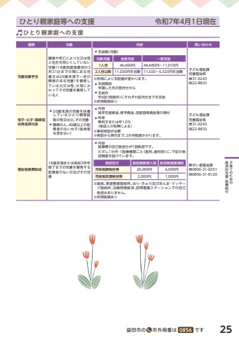 %u7a2e%u985e%u5bfe%u8c61%u5185%u5bb9%u554f%u3044%u5408%u308f%u305b%u5150%u7ae5%u6276%u990a%u624b%u5f53%u96e2%u5a5a%u3084%u6b7b%u4ea1%u306b%u3088%u308a%u7236%u53c8%u306f%u6bcd%u3068%u751f%u8a08%u3092%u540c%u3058%u304f%u3057%u3066%u3044%u306a%u3044%u5150%u7ae5%uff0818%u6b73%u5230%u9054%u5f8c%u6700%u521d%u306e3%u670831%u65e5%u307e%u3067%u306e%u9593%u306b%u3042%u308b%u5150%u7ae5%u53c8%u306f20%u6b73%u672a%u6e80%u3067%u4e00%u5b9a%u306e%u969c%u5bb3%u306e%u3042%u308b%u5150%u7ae5%uff09%u3092%u990a%u80b2%u3057%u3066%u3044%u308b%u7236%u53c8%u306f%u6bcd%u3001%u7236%u6bcd%u306b%u304b%u308f%u3063%u3066%u305d%u306e%u5150%u7ae5%u3092%u990a%u80b2%u3057%u3066%u3044%u308b%u4eba%u25cf%u652f%u7d66%u984d%uff08%u6708%u984d%uff09%u5bfe%u8c61%u5150%u7ae5%u5168%u90e8%u652f%u7d66%u4e00%u90e8%u652f%u7d661%u4eba%u76ee46,690%u518646,680%u5186%uff5e11,010%u51862%u4eba%u76ee%u4ee5%u964d11,030%u5186%u3092%u52a0%u7b9711,020%uff5e5,520%u5186%u3092%u52a0%u7b97%u203b%u6240%u5f97%u306b%u3088%u308a%u652f%u7d66%u984d%u304c%u5909%u308f%u308a%u307e%u3059%u3002%u25cf %u652f%u7d66%u958b%u59cb %u7533%u8acb%u3057%u305f%u6708%u306e%u7fcc%u6708%u5206%u304b%u3089%u25cf %u652f%u7d66%u6708 %u5e746%u56de%uff08%u5947%u6570%u6708%uff09%u306b%u305d%u308c%u305e%u308c%u524d%u6708%u5206%u307e%u3067%u3092%u652f%u7d66%u203b%u6240%u5f97%u5236%u9650%u3042%u308a%u5b50%u3069%u3082%u798f%u7949%u8ab2%u5150%u7ae5%u798f%u7949%u4fc2%u260e31-0243%u2073 22-8833%u6bcd%u5b50%u30fb%u7236%u5b50%u30fb%u5be1%u5a66%u798f%u7949%u8cc7%u91d1%u8cb8%u4ed8%u91d1%u25cf 20%u6b73%u672a%u6e80%u306e%u5150%u7ae5%u3092%u6276%u990a%u3057%u3066%u3044%u308b%u3072%u3068%u308a%u89aa%u5bb6%u5ead%u7b49%u306e%u6bcd%u53c8%u306f%u7236%u3001%u305d%u306e%u5150%u7ae5%u25cf %u5be1%u5a66%u306e%u4eba%u300140%u6b73%u4ee5%u4e0a%u306e%u914d%u5076%u8005%u306e%u306a%u3044%u5973%u5b50%uff08%u72ec%u8eab%u8005%u306f%u542b%u307e%u306a%u3044%uff09%u25cf %u5185%u5bb9 %u5c31%u5b66%u652f%u5ea6%u8cc7%u91d1%u3001%u4fee%u5b66%u8cc7%u91d1%u3001%u6280%u80fd%u7fd2%u5f97%u8cc7%u91d1%u7b49%u306e%u8cb8%u4ed8%u25cf %u5229%u7387 %u7121%u5229%u5b50%u307e%u305f%u306f%u5e741.0%uff05 %uff08%u4fdd%u8a3c%u4eba%u306e%u6709%u7121%u306b%u3088%u308b%uff09%u203b%u4e8b%u524d%u76f8%u8ac7%u304c%u5fc5%u8981%u203b%u76f8%u8ac7%u304b%u3089%u8cb8%u4ed8%u307e%u3067%u30012%u304b%u6708%u7a0b%u5ea6%u304b%u304b%u308a%u307e%u3059%u3002%u5b50%u3069%u3082%u798f%u7949%u8ab2%u5150%u7ae5%u798f%u7949%u4fc2%u260e31-0243%u2073 22-8833%u798f%u7949%u533b%u7642%u8cbb%u52a9%u621018%u6b73%u672a%u6e80%u307e%u305f%u306f%u9ad8%u68213%u5b66%u5e74%u4fee%u4e86%u307e%u3067%u306e%u5150%u7ae5%u3092%u990a%u80b2%u3059%u308b%u914d%u5076%u8005%u306e%u306a%u3044%u65b9%u53ca%u3073%u305d%u306e%u5150%u7ae5%u25cf %u5185%u5bb9 %u533b%u7642%u8cbb%u306e%u81ea%u5df1%u8ca0%u62c5%u5206%u304c1%u5272%u8ca0%u62c5%u3067%u3059%u3002 %u305f%u3060%u30571%u304b%u6708%u30fb1%u533b%u7642%u6a5f%u95a2%u3054%u3068%uff08%u533b%u79d1%u3001%u6b6f%u79d1%u5225%uff09%u306b%u3001%u4e0b%u8a18%u306e%u8ca0%u62c5%u9650%u5ea6%u3092%u8a2d%u3051%u3066%u3044%u307e%u3059%u3002%u8ca0%u62c5%u533a%u5206%u8ca0%u62c5%u9650%u5ea6%u984d%u5165%u9662%u8ca0%u62c5%u9650%u5ea6%u984d%u901a%u9662%u5e02%u6c11%u7a0e%u8ab2%u7a0e%u4e16%u5e2f20,000%u51866,000%u5186%u5e02%u6c11%u7a0e%u975e%u8ab2%u7a0e%u4e16%u5e2f2,000%u51861,000%u5186%u203b %u85ac%u5c40%u3001%u67d4%u9053%u6574%u5fa9%u65bd%u8853%u6240%u3001%u306f%u308a%u30fb%u304d%u3085%u3046%u53ca%u3073%u3042%u3093%u307e%u30fb%u30de%u30c3%u30b5%u30fc%u30b8%u65bd%u8853%u6240%u3001%u6cbb%u7642%u7528%u88dc%u88c5%u5177%u3001%u8a2a%u554f%u770b%u8b77%u30b9%u30c6%u30fc%u30b7%u30e7%u30f3%u3067%u306e%u81ea%u5df1%u8ca0%u62c5%u306f%u3042%u308a%u307e%u305b%u3093%u3002%u203b%u6240%u5f97%u5236%u9650%u3042%u308a%u969c%u304c%u3044%u8005%u798f%u7949%u8ab2%u260e0856-31-0251%u2073 0856-31-8120 %u3072%u3068%u308a%u89aa%u5bb6%u5ead%u3078%u306e%u652f%u63f4