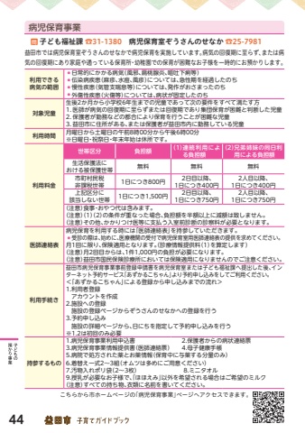 %u3053%u3061%u3089%u304b%u3089%u5e02%u30db%u30fc%u30e0%u30da%u30fc%u30b8%u306e%u300c%u75c5%u5150%u4fdd%u80b2%u4e8b%u696d%u300d%u30da%u30fc%u30b8%u3078%u30a2%u30af%u30bb%u30b9%u3067%u304d%u307e%u3059%u3002%u5229%u7528%u3067%u304d%u308b%u75c5%u6c17%u306e%u7bc4%u56f2%u25cf%u65e5%u5e38%u7684%u306b%u304b%u304b%u308b%u75c5%u6c17%uff08%u98a8%u90aa%u3001%u6241%u6843%u817a%u708e%u3001%u5614%u5410%u4e0b%u75e2%u7b49%uff09%u25cf%u4f1d%u67d3%u75c5%u75be%u60a3%uff08%u9ebb%u75b9%u3001%u6c34%u75d8%u3001%u98a8%u75b9%uff09%u306b%u3064%u3044%u3066%u306f%u3001%u6025%u6027%u671f%u3092%u7d4c%u904e%u3057%u305f%u306e%u3061%u25cf%u6162%u6027%u75be%u60a3%uff08%u6c17%u7ba1%u652f%u5598%u606f%u7b49%uff09%u306b%u3064%u3044%u3066%u306f%u3001%u767a%u4f5c%u304c%u304a%u3055%u307e%u3063%u305f%u306e%u3061%u25cf%u5916%u50b7%u6027%u75be%u60a3%uff08%u706b%u50b7%u7b49%uff09%u306b%u3064%u3044%u3066%u306f%u3001%u75c5%u72b6%u304c%u56fa%u5b9a%u3057%u305f%u306e%u3061%u5bfe%u8c61%u5150%u7ae5%u751f%u5f8c2%u304b%u6708%u304b%u3089%u5c0f%u5b66%u68216%u5e74%u751f%u307e%u3067%u306e%u5150%u7ae5%u3067%u3042%u3063%u3066%u6b21%u306e%u8981%u4ef6%u3092%u3059%u3079%u3066%u6e80%u305f%u3059%u65b91%uff0e%u533b%u5e2b%u304c%u75c5%u6c17%u306e%u56de%u5fa9%u671f%u306b%u81f3%u3089%u305a%u307e%u305f%u306f%u56de%u5fa9%u671f%u3067%u3042%u308a%u96c6%u56e3%u4fdd%u80b2%u304c%u56f0%u96e3%u3068%u5224%u65ad%u3057%u305f%u5150%u7ae52%uff0e%u4fdd%u8b77%u8005%u304c%u52e4%u52d9%u306a%u3069%u306e%u90fd%u5408%u306b%u3088%u308a%u4fdd%u80b2%u3092%u884c%u3046%u3053%u3068%u304c%u56f0%u96e3%u306a%u5150%u7ae53%uff0e%u76ca%u7530%u5e02%u306b%u4f4f%u6240%u304c%u3042%u308b%u3001%u307e%u305f%u306f%u4fdd%u8b77%u8005%u304c%u76ca%u7530%u5e02%u5185%u306b%u52e4%u52d9%u3057%u3066%u3044%u308b%u5150%u7ae5%u5229%u7528%u6642%u9593%u6708%u66dc%u65e5%u304b%u3089%u571f%u66dc%u65e5%u306e%u5348%u524d8%u664200%u5206%u304b%u3089%u5348%u5f8c6%u664200%u5206%u203b%u65e5%u66dc%u65e5%u30fb%u795d%u796d%u65e5%u30fb%u5e74%u672b%u5e74%u59cb%u306f%u4f11%u6240%u3067%u3059%u3002%u5229%u7528%u6599%u91d1%u4e16%u5e2f%u533a%u5206%u8ca0%u62c5%u984d%uff081%uff09 %u9023%u7d9a%u5229%u7528%u306b%u3088%u308b%u8ca0%u62c5%u984d%uff082%uff09 %u5144%u5f1f%u59c9%u59b9%u306e%u540c%u65e5%u5229%u7528%u306b%u3088%u308b%u8ca0%u62c5%u984d%u751f%u6d3b%u4fdd%u8b77%u6cd5%u306b%u304a%u3051%u308b%u88ab%u4fdd%u8b77%u4e16%u5e2f%u7121%u6599%u7121%u6599%u7121%u6599%u5e02%u753a%u6751%u6c11%u7a0e%u975e%u8ab2%u7a0e%u4e16%u5e2f1%u65e5%u306b%u3064%u304d800%u51862%u65e5%u76ee%u4ee5%u964d%u30011%u65e5%u306b%u3064%u304d400%u51862%u4eba%u76ee%u4ee5%u964d%u30011%u65e5%u306b%u3064%u304d400%u5186%u4e0a%u8a18%u533a%u5206%u306b%u8a72%u5f53%u3057%u306a%u3044%u4e16%u5e2f1%u65e5%u306b%u3064%u304d1,500%u51862%u65e5%u76ee%u4ee5%u964d%u30011%u65e5%u306b%u3064%u304d750%u51862%u4eba%u76ee%u4ee5%u964d%u30011%u65e5%u306b%u3064%u304d750%u5186%uff08%u6ce8%u610f%uff09%u98df%u4e8b%u30fb%u304a%u3084%u3064%u4ee3%u306f%u542b%u307f%u307e%u3059%u3002%uff08%u6ce8%u610f%uff09%uff081%uff09%uff082%uff09%u306e%u6761%u4ef6%u304c%u91cd%u306a%u3063%u305f%u5834%u5408%u3001%u8ca0%u62c5%u984d%u3092%u534a%u984d%u4ee5%u4e0a%u306b%u6e1b%u984d%u306f%u81f4%u3057%u307e%u305b%u3093%u3002%uff08%u6ce8%u610f%uff09%u305d%u306e%u4ed6%u3001%u304b%u304b%u308a%u3064%u3051%u533b%u7b49%u306b%u652f%u6255%u3046%u5165%u5ba4%u524d%u8a3a%u65ad%u306e%u8a3a%u5bdf%u6599%u304c%u5fc5%u8981%u3068%u306a%u308a%u307e%u3059%u3002%u533b%u5e2b%u9023%u7d61%u8868%u75c5%u5150%u4fdd%u80b2%u3092%u5229%u7528%u3059%u308b%u6642%u306b%u306f%u300c%u533b%u5e2b%u9023%u7d61%u8868%u300d%u3092%u6301%u53c2%u3057%u3066%u3044%u305f%u3060%u304d%u307e%u3059%u3002%u25cf %u53d7%u8a3a%u306e%u969b%u306f%u3001%u59cb%u3081%u306b%u3001%u533b%u7642%u6a5f%u95a2%u306e%u53d7%u4ed8%u3067%u75c5%u5150%u4fdd%u80b2%u5ba4%u7528%u533b%u5e2b%u9023%u7d61%u8868%u306e%u63d0%u4f9b%u3092%u6c42%u3081%u3066%u304f%u3060%u3055%u3044%u3002%u67081%u56de%u306b%u9650%u308a%u3001%u4fdd%u967a%u9069%u7528%u3068%u306a%u308a%u307e%u3059%u3002%uff08%u8a3a%u7642%u60c5%u5831%u63d0%u4f9b%u6599%uff081%uff09%u3092%u7b97%u5b9a%u3057%u307e%u3059%uff09%uff08%u6ce8%u610f%uff09 %u67082%u56de%u76ee%u304b%u3089%u306f%u30011%u4ef61,000%u5186%u306e%u8ca0%u62c5%u304c%u5fc5%u8981%u306b%u306a%u308a%u307e%u3059%u3002%uff08%u6ce8%u610f%uff09 %u76ca%u7530%u5e02%u56fd%u6c11%u4fdd%u967a%u8a3a%u7642%u6240%u306b%u304a%u3044%u3066%u306f%u4fdd%u967a%u9069%u7528%u306b%u306a%u308a%u307e%u305b%u3093%u306e%u3067%u3054%u6ce8%u610f%u304f%u3060%u3055%u3044%u3002%u5229%u7528%u624b%u7d9a%u304d%u76ca%u7530%u5e02%u75c5%u5150%u4fdd%u80b2%u4e8b%u696d%u4e8b%u524d%u767b%u9332%u7533%u8acb%u66f8%u3092%u75c5%u5150%u4fdd%u80b2%u5ba4%u307e%u305f%u306f%u5b50%u3069%u3082%u798f%u7949%u8ab2%u3078%u63d0%u51fa%u3057%u305f%u5f8c%u3001%u30a4%u30f3%u30bf%u30fc%u30cd%u30c3%u30c8%u4e88%u7d04%u30b5%u30fc%u30d3%u30b9%u300c%u3042%u305a%u304b%u308b%u3053%u3061%u3083%u3093%u300d%u3088%u308a%u4e88%u7d04%u7533%u3057%u8fbc%u307f%u3092%u3057%u3066%u3054%u5229%u7528%u304f%u3060%u3055%u3044%u3002%uff1c%u300c%u3042%u305a%u304b%u308b%u3053%u3061%u3083%u3093%u300d%u306b%u3088%u308b%u767b%u9332%u304b%u3089%u7533%u3057%u8fbc%u307f%u307e%u3067%u306e%u6d41%u308c%uff1e1. %u5229%u7528%u8005%u767b%u9332 %u30a2%u30ab%u30a6%u30f3%u30c8%u3092%u4f5c%u62102. %u65bd%u8a2d%u3078%u306e%u767b%u9332 %u65bd%u8a2d%u306e%u767b%u9332%u30da%u30fc%u30b8%u304b%u3089%u305e%u3046%u3055%u3093%u306e%u305b%u306a%u304b%u3078%u306e%u767b%u9332%u3092%u884c%u30463. %u4e88%u7d04%u7533%u3057%u8fbc%u307f %u65bd%u8a2d%u306e%u8a73%u7d30%u30da%u30fc%u30b8%u304b%u3089%u3001%u65e5%u306b%u3061%u3092%u6307%u5b9a%u3057%u3066%u4e88%u7d04%u7533%u3057%u8fbc%u307f%u3092%u884c%u3046%u203b1.2%u306f%u521d%u56de%u306e%u307f%u5fc5%u8981%u6301%u53c2%u3059%u308b%u3082%u306e1.%u75c5%u5150%u4fdd%u80b2%u4e8b%u696d%u5229%u7528%u7533%u8fbc%u66f8%u3000%u3000%u3000%u3000%u3000%u3000%u3000%u30002.%u4fdd%u8b77%u8005%u304b%u3089%u306e%u75c5%u72b6%u9023%u7d61%u79683.%u75c5%u5150%u4fdd%u80b2%u4e8b%u696d%u60c5%u5831%u63d0%u4f9b%u66f8%uff08%u533b%u5e2b%u9023%u7d61%u7968%uff09%u3000%u30004.%u6bcd%u5b50%u5065%u
