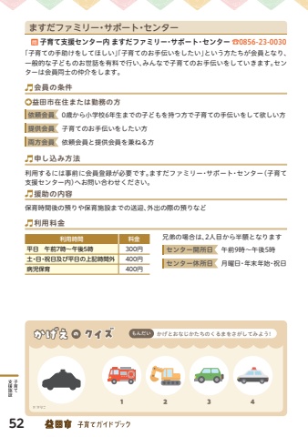 %u4fdd%u80b2%u6642%u9593%u5f8c%u306e%u9810%u308a%u3084%u4fdd%u80b2%u65bd%u8a2d%u307e%u3067%u306e%u9001%u8fce%u3001%u5916%u51fa%u306e%u969b%u306e%u9810%u308a%u306a%u3069 %u63f4%u52a9%u306e%u5185%u5bb9%u5229%u7528%u3059%u308b%u306b%u306f%u4e8b%u524d%u306b%u4f1a%u54e1%u767b%u9332%u304c%u5fc5%u8981%u3067%u3059%u3002%u307e%u3059%u3060%u30d5%u30a1%u30df%u30ea%u30fc%u30fb%u30b5%u30dd%u30fc%u30c8%u30fb%u30bb%u30f3%u30bf%u30fc%uff08%u5b50%u80b2%u3066%u652f%u63f4%u30bb%u30f3%u30bf%u30fc%u5185%uff09%u3078%u304a%u554f%u3044%u5408%u308f%u305b%u304f%u3060%u3055%u3044%u3002 %u7533%u3057%u8fbc%u307f%u65b9%u6cd5 %u76ca%u7530%u5e02%u5728%u4f4f%u307e%u305f%u306f%u52e4%u52d9%u306e%u65b9 %u4f1a%u54e1%u306e%u6761%u4ef6%u4f9d%u983c%u4f1a%u54e10%u6b73%u304b%u3089%u5c0f%u5b66%u68216%u5e74%u751f%u307e%u3067%u306e%u5b50%u3069%u3082%u3092%u6301%u3064%u65b9%u3067%u5b50%u80b2%u3066%u306e%u624b%u4f1d%u3044%u3092%u3057%u3066%u6b32%u3057%u3044%u65b9%u63d0%u4f9b%u4f1a%u54e1%u5b50%u80b2%u3066%u306e%u304a%u624b%u4f1d%u3044%u3092%u3057%u305f%u3044%u65b9%u4e21%u65b9%u4f1a%u54e1%u4f9d%u983c%u4f1a%u54e1%u3068%u63d0%u4f9b%u4f1a%u54e1%u3092%u517c%u306d%u308b%u65b9%u554f%u5b50%u80b2%u3066%u652f%u63f4%u30bb%u30f3%u30bf%u30fc%u5185 %u307e%u3059%u3060%u30d5%u30a1%u30df%u30ea%u30fc%u30fb%u30b5%u30dd%u30fc%u30c8%u30fb%u30bb%u30f3%u30bf%u30fc %u260e0856-23-0030%u300c%u5b50%u80b2%u3066%u306e%u624b%u52a9%u3051%u3092%u3057%u3066%u307b%u3057%u3044%u300d%u300c%u5b50%u80b2%u3066%u306e%u304a%u624b%u4f1d%u3044%u3092%u3057%u305f%u3044%u300d%u3068%u3044%u3046%u65b9%u305f%u3061%u304c%u4f1a%u54e1%u3068%u306a%u308a%u3001%u4e00%u822c%u7684%u306a%u5b50%u3069%u3082%u306e%u304a%u4e16%u8a71%u3092%u6709%u6599%u3067%u884c%u3044%u3001%u307f%u3093%u306a%u3067%u5b50%u80b2%u3066%u306e%u304a%u624b%u4f1d%u3044%u3092%u3057%u3066%u3044%u304d%u307e%u3059%u3002%u30bb%u30f3%u30bf%u30fc%u306f%u4f1a%u54e1%u540c%u58eb%u306e%u4ef2%u4ecb%u3092%u3057%u307e%u3059%u3002%u5229%u7528%u6642%u9593%u6599%u91d1%u5e73%u65e5%u3000%u5348%u524d7%u6642%uff5e%u5348%u5f8c5%u6642%u571f%u30fb%u65e5%u30fb%u795d%u65e5%u53ca%u3073%u5e73%u65e5%u306e%u4e0a%u8a18%u6642%u9593%u5916400%u5186%u75c5%u5150%u4fdd%u80b2400%u5186 %u5229%u7528%u6599%u91d1%u30bb%u30f3%u30bf%u30fc%u4f11%u6240%u65e5%u5144%u5f1f%u306e%u5834%u5408%u306f%u30012%u4eba%u76ee%u304b%u3089%u534a%u984d%u3068%u306a%u308a%u307e%u30591234%u304b%u3052%u3048%u306e%u30af%u30a4%u30ba%u3082%u3093%u3060%u3044%u304b%u3052%u3068%u304a%u306a%u3058%u304b%u305f%u3061%u306e%u304f%u308b%u307e%u3092%u3055%u304c%u3057%u3066%u307f%u3088%u3046%u3053%u305f%u3048%uff1a452